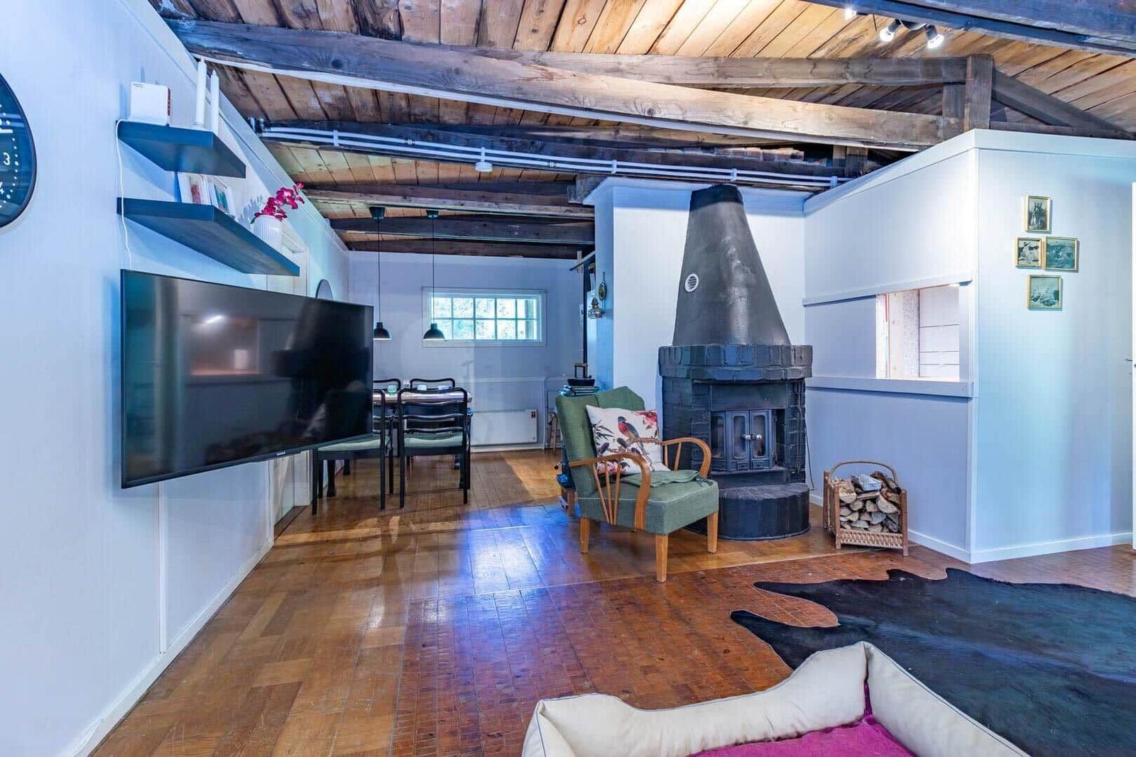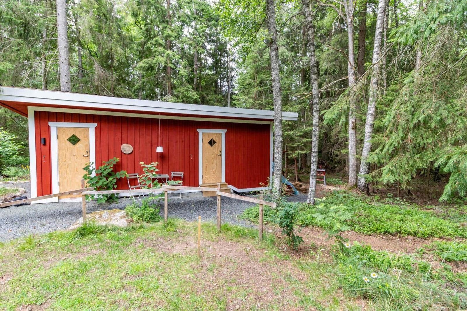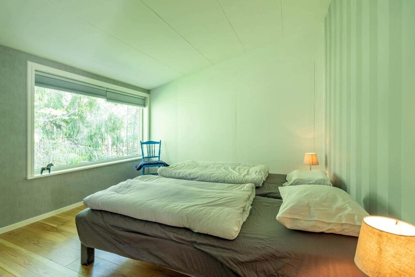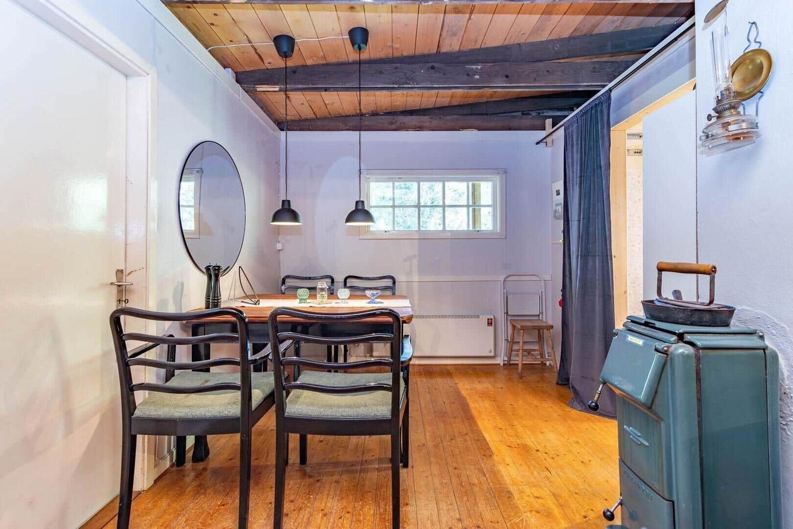 Das Ferienhaus Hvilan bietet auf etwa 60 m² Wohnfläche eine gemütliche Unterkunft für einen entspannten Aufenthalt. Es verfügt über ein Schlafzimmer mit Doppelbett sowie ein zusätzliches Schlafzimmer im Gästehaus mit einem Einzelbett und einer Matratze. Im Haupthaus gibt es ein einladendes Wohnzimmer mit Kamin, Schlafsofa, Fernseher und Internetzugang. Die vollständig eingerichtete Küche ist mit einem 2-Platten-Kocher, Kühl-/Gefrierkombination, Spülmaschine, Mikrowelle und Kaffeemaschine ausgestattet. Das moderne Badezimmer beinhaltet Dusche, WC, Badewanne und Waschmaschine. Eine Luftwärmepumpe sorgt für angenehme Temperaturen. Gemeinschaftlich nutzbare Einrichtungen umfassen die Sauna, die sich seitlich des Hauses befindet. Zudem steht ein Ruderboot zur Verfügung, um den See zu erkunden. Parkplatzmöglichkeiten sind auf dem Grundstück vorhanden.