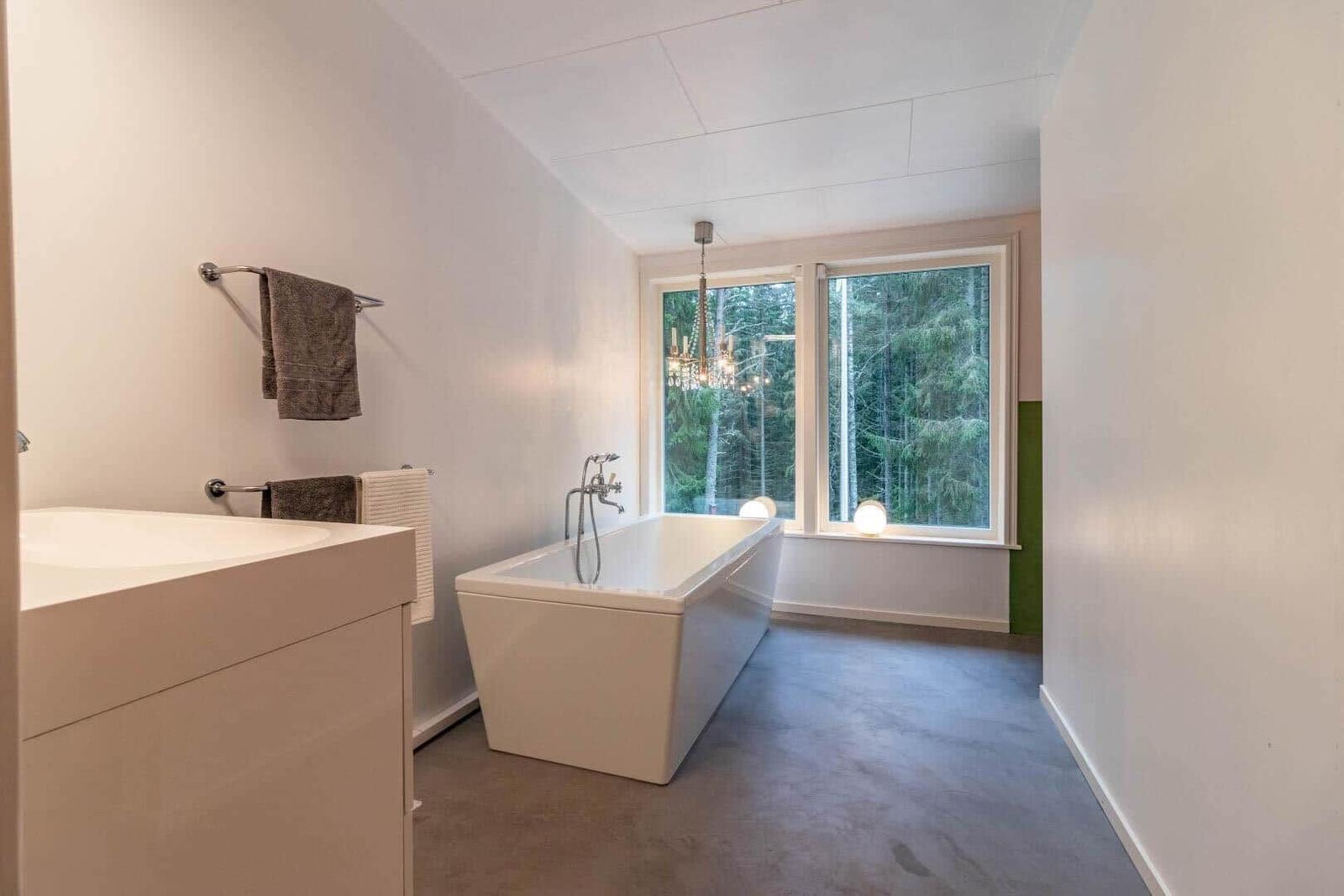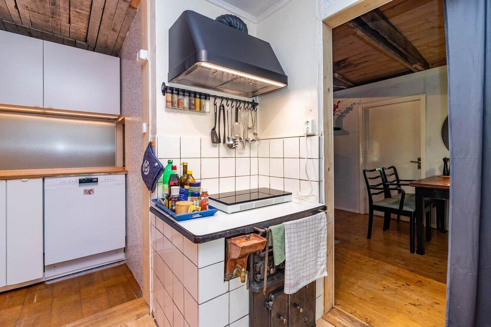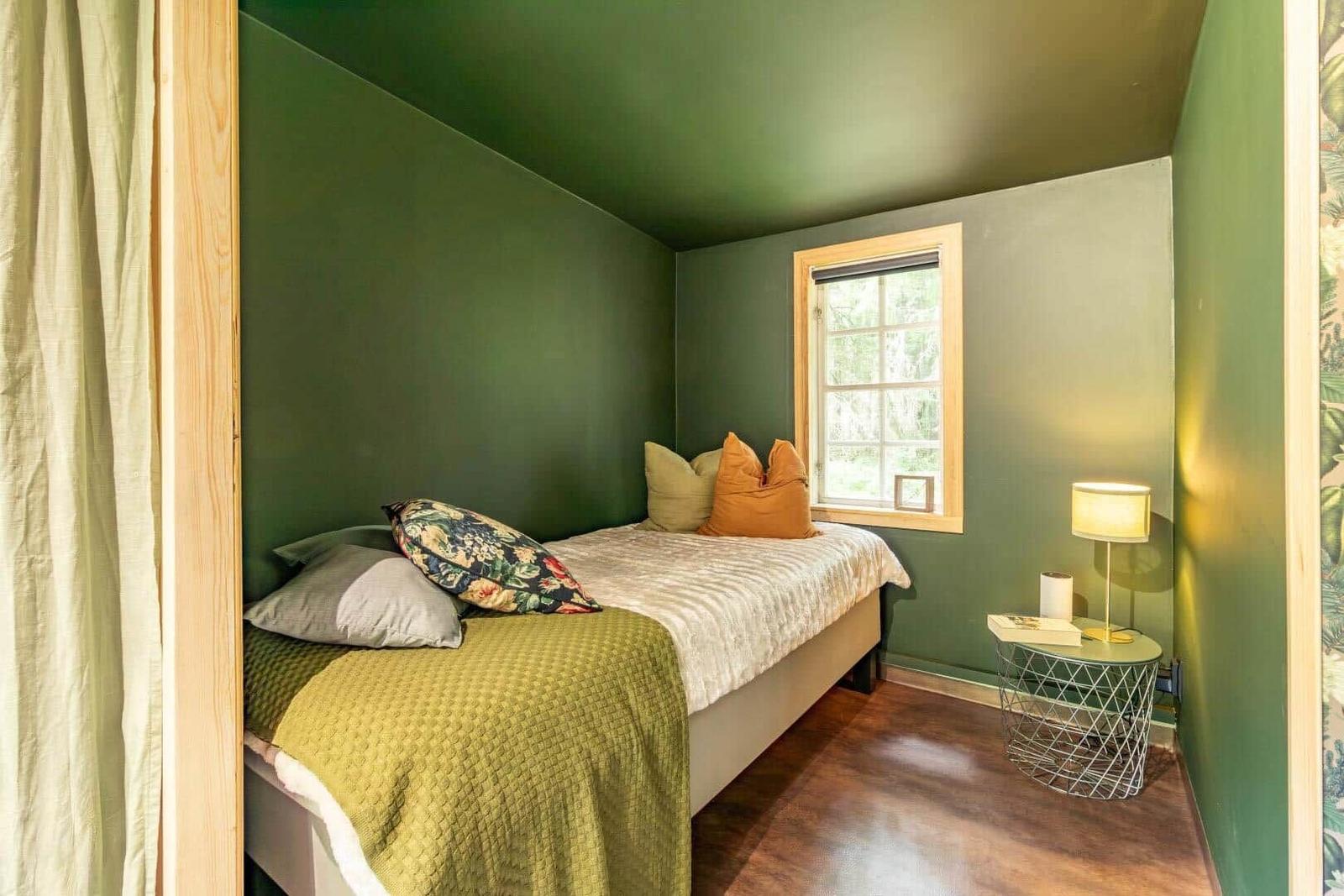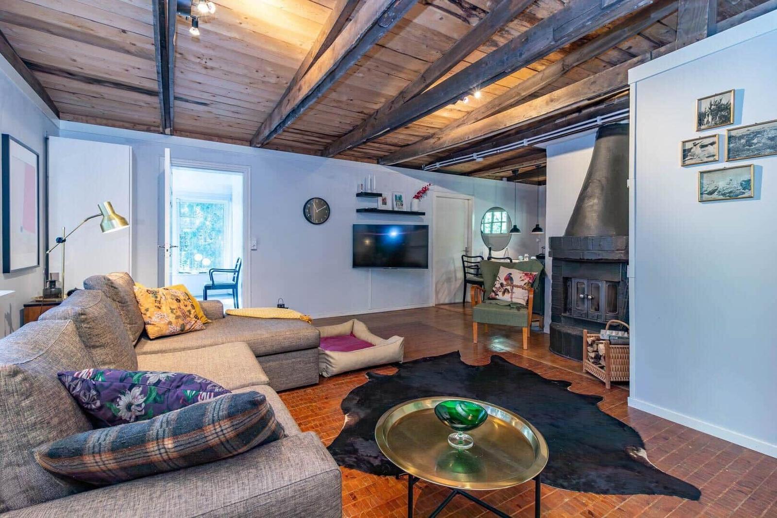 Das Ferienhaus Hvilan bietet auf etwa 60 m² Wohnfläche eine gemütliche Unterkunft für einen entspannten Aufenthalt. Es verfügt über ein Schlafzimmer mit Doppelbett sowie ein zusätzliches Schlafzimmer im Gästehaus mit einem Einzelbett und einer Matratze. Im Haupthaus gibt es ein einladendes Wohnzimmer mit Kamin, Schlafsofa, Fernseher und Internetzugang. Die vollständig eingerichtete Küche ist mit einem 2-Platten-Kocher, Kühl-/Gefrierkombination, Spülmaschine, Mikrowelle und Kaffeemaschine ausgestattet. Das moderne Badezimmer beinhaltet Dusche, WC, Badewanne und Waschmaschine. Eine Luftwärmepumpe sorgt für angenehme Temperaturen. Gemeinschaftlich nutzbare Einrichtungen umfassen die Sauna, die sich seitlich des Hauses befindet. Zudem steht ein Ruderboot zur Verfügung, um den See zu erkunden. Parkplatzmöglichkeiten sind auf dem Grundstück vorhanden.
