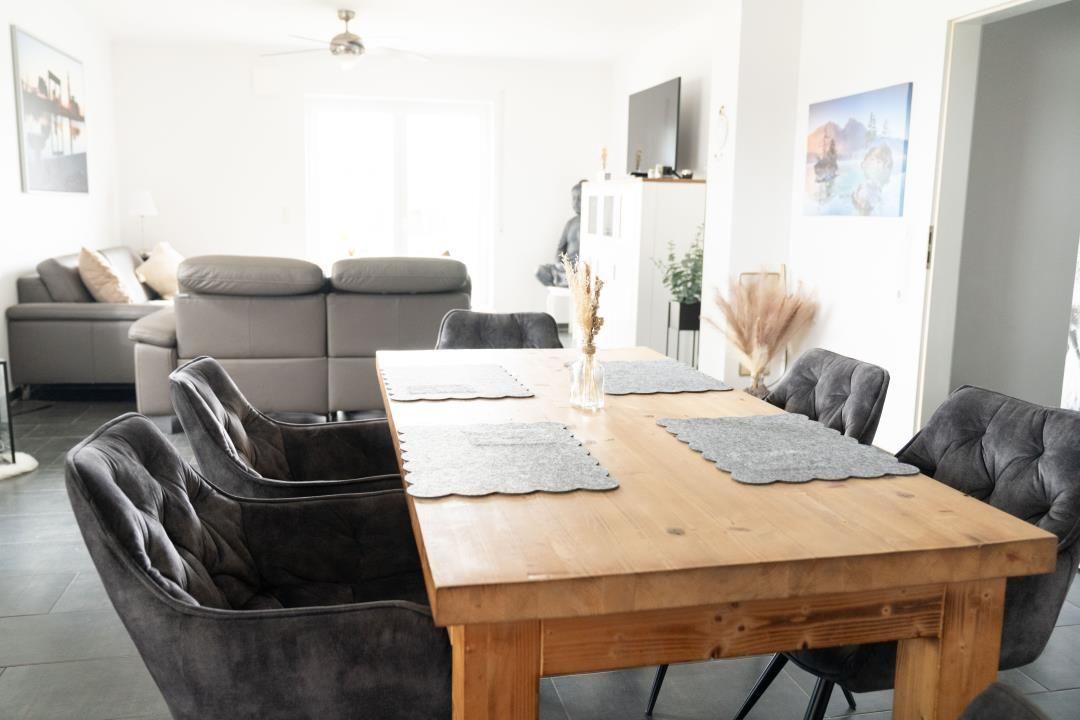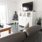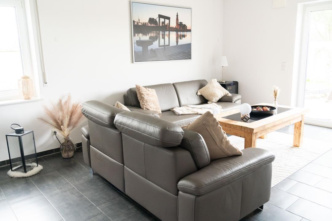 Modernes Ferienhaus mit Panoramablick – Erholung für die ganze Familie . Willkommen in Ihrem stilvollen Ferienhaus aus dem Jahr 2018 – modern, ebenerdig und mit allem Komfort ausgestattet, was das Urlaubsherz begehrt. Auf großzügigen 120 m² Wohnfläche bietet das Haus Platz für bis zu 6 Personen und ist somit ideal für Familien oder Freunde, die gemeinsam entspannen möchten. Die Unterkunft verfügt über drei gemütliche Schlafzimmer, ein modernes Badezimmer mit Dusche und Badewanne, sowie ein separates WC. Der großzügige Wohn- und Essbereich mit bodentiefen, 3-fach verglasten Fenstern lässt viel Tageslicht herein und eröffnet einen weiten Panoramablick über die umliegenden Felder. Die offene Küche ist voll ausgestattet und lässt keine Wünsche offen – ob gemeinsames Frühstück oder ein ausgiebiges Abendessen am großen Esstisch, hier findet jeder seinen Platz. Zur Ausstattung gehören außerdem Waschmaschine und Trockner, damit es auch bei längeren Aufenthalten an nichts fehlt. Das Nichtraucherhaus liegt in einer ruhigen Straße mit nur fünf weiteren Häusern, eingebettet in eine idyllische Landschaft. Der großzügige Garten mit möblierter Terrasse lädt zum Verweilen ein – ob bei einem Glas Wein am Abend oder beim Grillen mit der Familie. Haustiere sind herzlich willkommen, sodass auch Ihr Vierbeiner nicht zu Hause bleiben muss. Wir berechnen pro Hund und Nacht 8 Euro. Besonders attraktiv ist die Nähe zum Wasser – nur 500 Meter entfernt erreichen Sie das Ufer, ideal für Spaziergänge, Radtouren oder entspannte Stunden am See. Genießen Sie Ihre Auszeit in einem Haus, das durch seine moderne Ausstattung, die ruhige Lage und den hohen Wohnkomfort überzeugt.