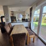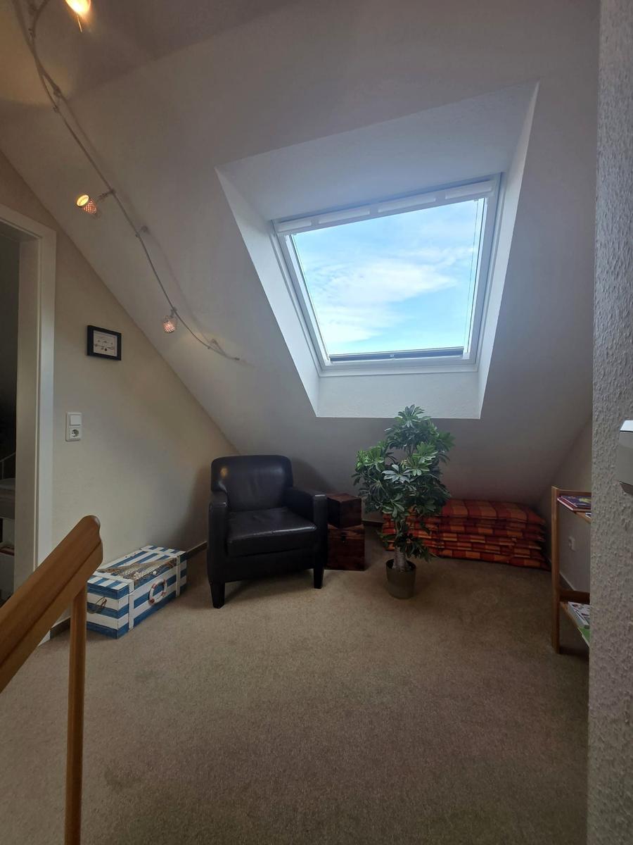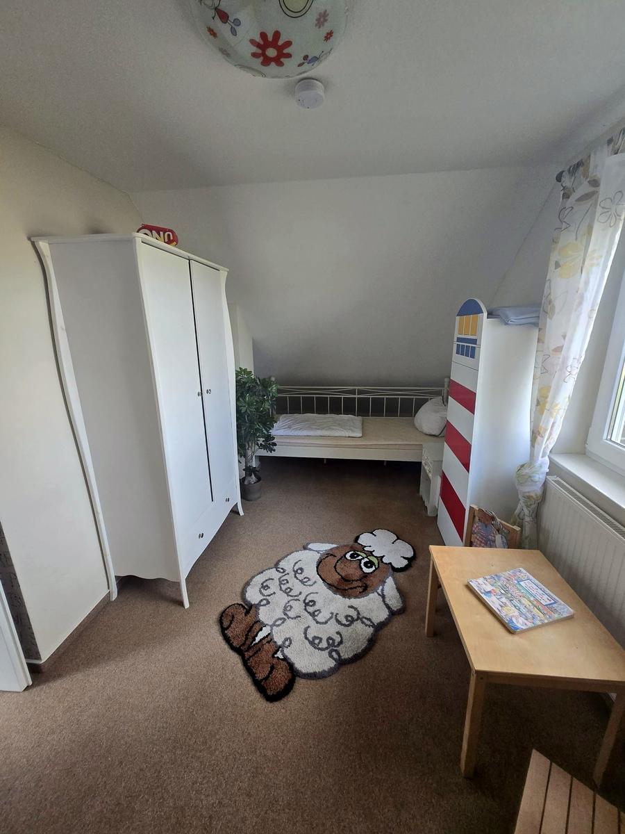 Das Ferienhaus mit einer Fläche von 100 qm bietet Platz für bis zu 6 Personen und ein Kleinkind. Im Erdgeschoss befindet sich ein großzügiger Wohn-/Essraum, ausgestattet mit einem LCD-TV, DVD-Player und einer Musikanlage. Die integrierte Küche verfügt über moderne Geräte, darunter Ceran-Herd, Geschirrspüler und Mikrowelle. Drei Schlafzimmer, darunter eines im Erdgeschoss, bieten komfortable Schlafmöglichkeiten mit hochwertigen Betten und Außenjalousien. Ein behindertengerechtes Duschbad sowie eine Fußbodenheizung im Erdgeschoss sorgen für zusätzlichen Komfort. Im Obergeschoss ist Teppich verlegt und es stehen Hochstuhl und Kinderbett kostenlos zur Verfügung. Gemeinschaftlich nutzbar sind die Sauna und der Kaminofen, die zur Entspannung einladen. WLAN ist ebenfalls verfügbar. Haustiere sind auf Anfrage erlaubt. Ein PKW-Abstellplatz steht am Haus zur Verfügung.