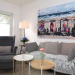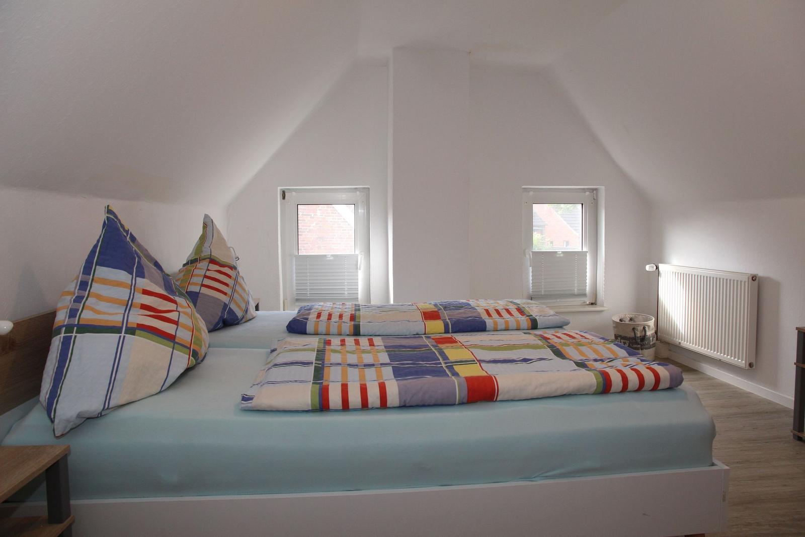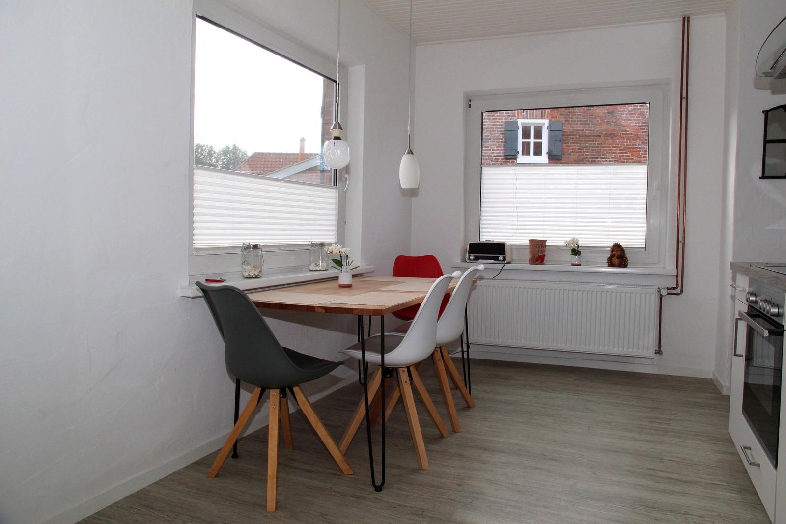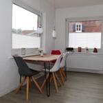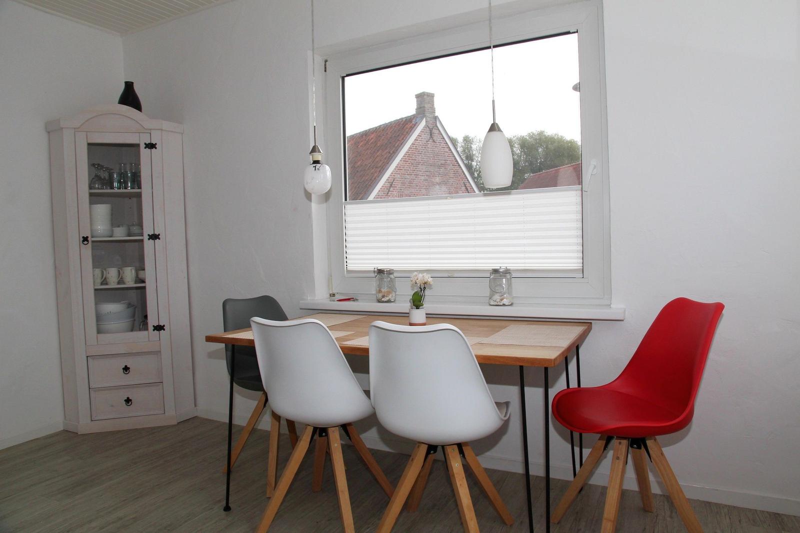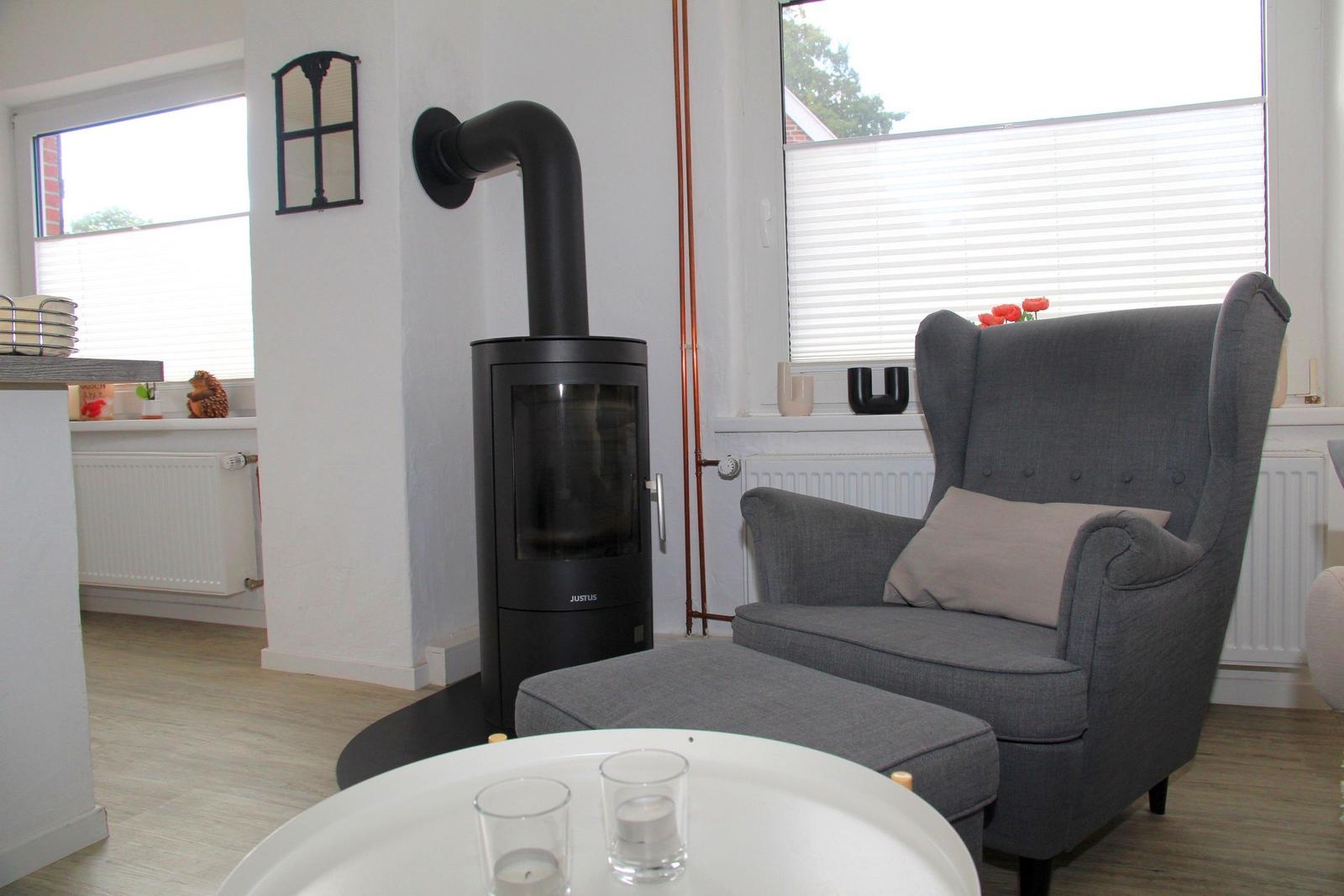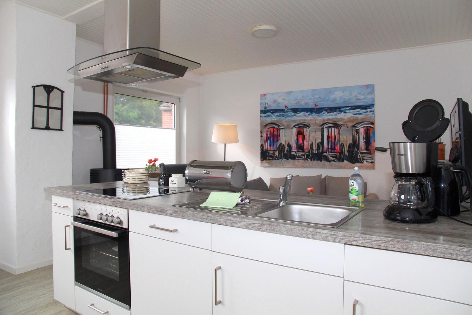 Das Ferienhaus „Kiek In“ besticht durch seinen liebevoll sanierten Charme und moderne Ausstattung. Im Erdgeschoss befindet sich ein offener Wohn- und Essbereich mit gemütlichen Sitzgelegenheiten, TV und Kaminofen, der für eine behagliche Atmosphäre sorgt. Die hochwertig ausgestattete Küche umfasst eine Spülmaschine, Mikrowelle, Toaster, Wasserkocher, Kaffeemaschine, Nespressomaschine, Herd, Backofen sowie einen Kühlschrank mit Gefrierfach. Ein modernes Badezimmer mit begehbarer Dusche und Föhn sowie ein separates WC runden das Erdgeschoss ab. Über eine Holztreppe gelangen die Gäste in das Obergeschoss mit zwei Schlafzimmern, ausgestattet mit eigenem TV – eines mit Doppelbett und das andere mit zwei Einzelbetten. WLAN ist kostenlos verfügbar. Das Haus bietet Platz für bis zu vier Personen und heißt auch Hunde willkommen. Das harmonische Zusammenspiel von Tradition und modernem Komfort macht das „Kiek In“ zu einem idealen Rückzugsort.