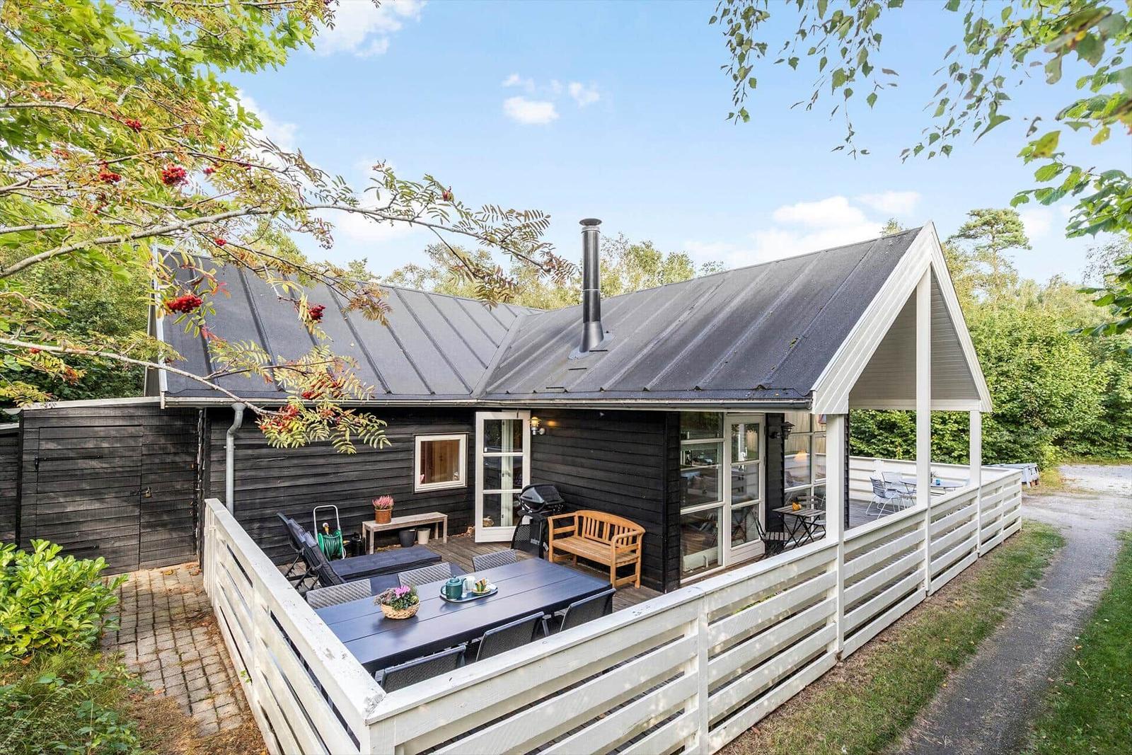 Das Ferienhaus in Grenå Strand, Ostjütland, bietet einen einladenden Außenbereich, der zu erholsamen Stunden einlädt. Die Unterkunft ist auf einem 144 m² großen Grundstück gelegen, nur 200 Meter vom nächsten Strand entfernt, wodurch sofortiger Zugang zu Strandaktivitäten gewährleistet ist.