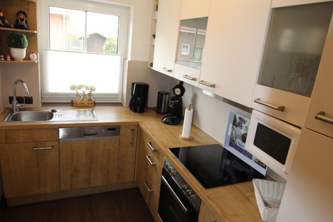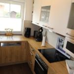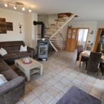 Im Erdgeschoß sind Fliesen- und in den Obergeschoßen ist ein Vinylboden verlegt. Gepflegte, freundlich-helle Einrichtung und in Teilbereichen neue Möblierung. Im EG ist ein Flur, großer Wohnraum mit Sitzgruppe, Kaminofen (1 Korb Kaminholz/Aufenthalt inklusive), Essecke für 6 Personen und ein direkter Ausgang auf die Terrasse. Die Küche (4 Flächen-Ceranfeld, Backofen, Mikrowelle, Geschirrspüler, Kaffee- und Kaffeepadmaschine, Wasserkocher, Eierkocher, Toaster, Mixer, etc.) ist vollausgestattet. Besteck, (Wein-) Gläser und Teller für über 12 Personen vorhanden. Im EG ein separates WC. Vom Flur geht eine Treppe ins 1. Obergeschoß. Dort ist ein kleiner Flur, ein Doppelzimmer, ein Zweibettzimmer mit kleiner Rattan-Sitzgruppe und ein Bad mit Dusche/WC und Waschmaschine mit integriertem Trockner. Vom Flur geht dann eine Treppe ins Dachgeschoß. Dies ist ein ausgebauter Spitzboden mit 2 Einzelbetten und einem kleinen Schrank. Das Haus ist gepflegt und geschmackvoll eingerichtet. Gute Ausstattung mit 55“ 4K UHD smart-TV mit Internetanschluss, „Netflix und amazon prime„ Zugang und Sat-Receiver im Wohnzimmer, Kompakt-Stereoanlage mit USB-Anschluss, freiem Internetzugang mit WLAN im ganzen Haus und auf der Terrasse, Waschmaschine/Trockner, Kleinkinderbett, Wickeltisch mit Badewanne, Hochstuhl und einer Auswahl an Bücher und Spiele für kleine und große Gäste. Über eine Gas-Zentralheizung wird auch das Warmwasser bereitgestellt.