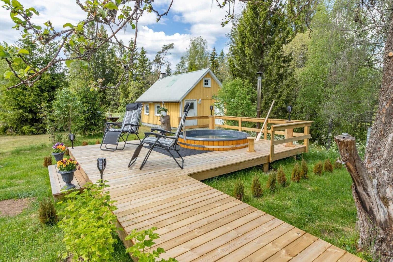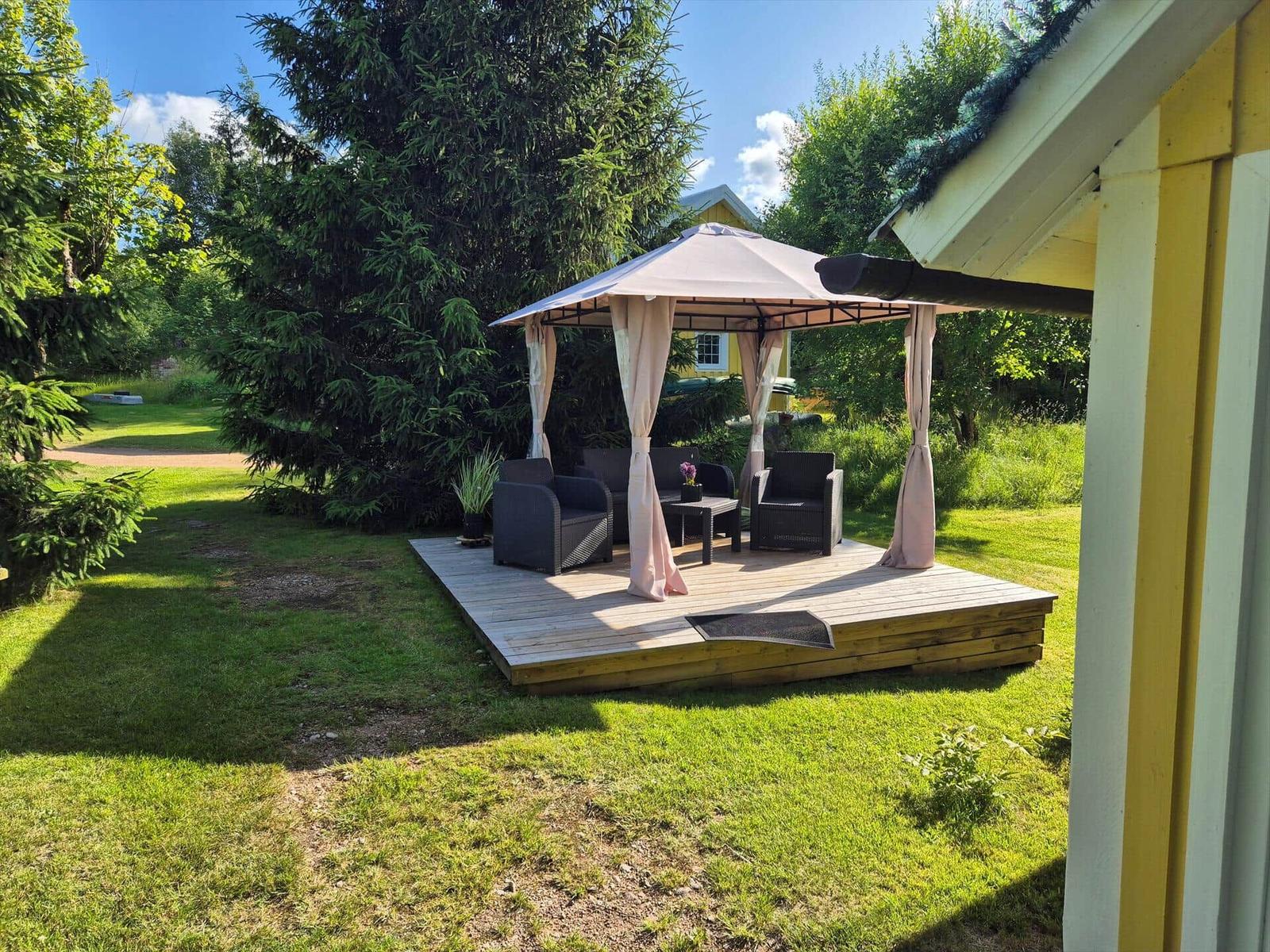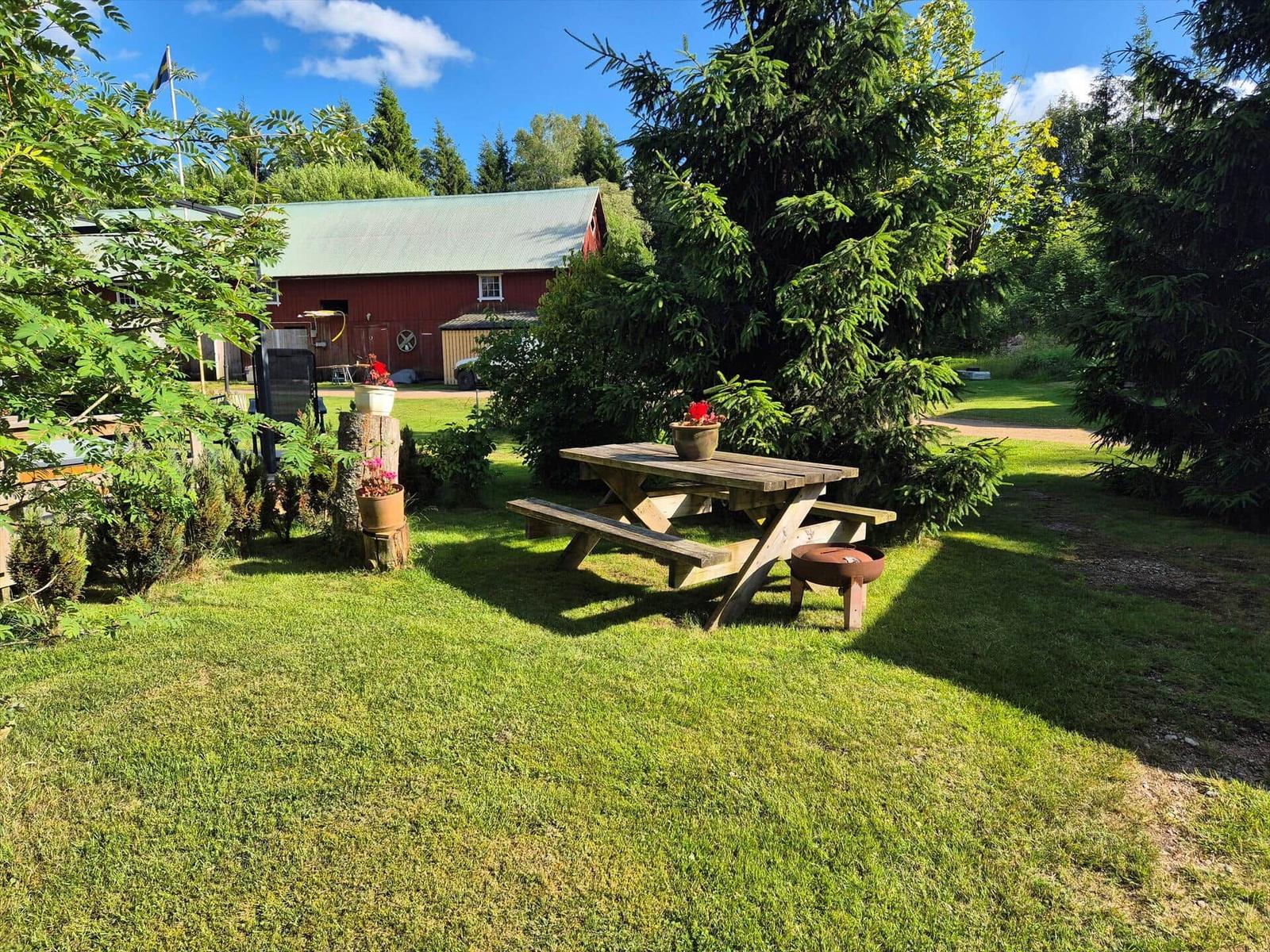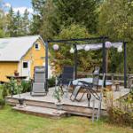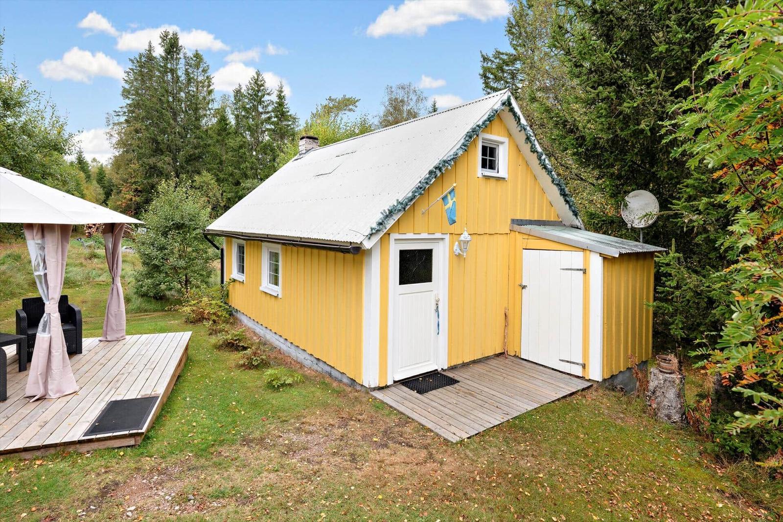 Das Ferienhaus Pigahuset in Västergötland bietet auf 45 m² Platz für bis zu 4 Personen und ist ideal für einen entspannenden Urlaub. Der Eingangsbereich führt zum Badezimmer mit WC und Duschkabine. Der Wohnbereich besticht durch seine hohen Decken und ist mit einem komfortablen Ecksofa, einem Flachbildfernseher mit deutschen Programmen sowie einem Kaminofen ausgestattet. Die offene Küche verfügt über einen großen Kühlschrank mit Gefrierfach, Ofen, Herd, Filterkaffeemaschine und Wasserkocher. Das Schlafzimmer bietet ein Doppelbett, während ein gemütliches Schlafloft mit zwei Einzelbetten über eine Leiter erreichbar ist. Gemeinschaftlich nutzbare Einrichtungen wie eine Grillhütte und eine holzbeheizte Badetonne stehen in 20 m Entfernung zur Verfügung. Ein Internetzugang über einen mobilen Router ist vorhanden, eignet sich jedoch nicht für hohe Datentransfers.