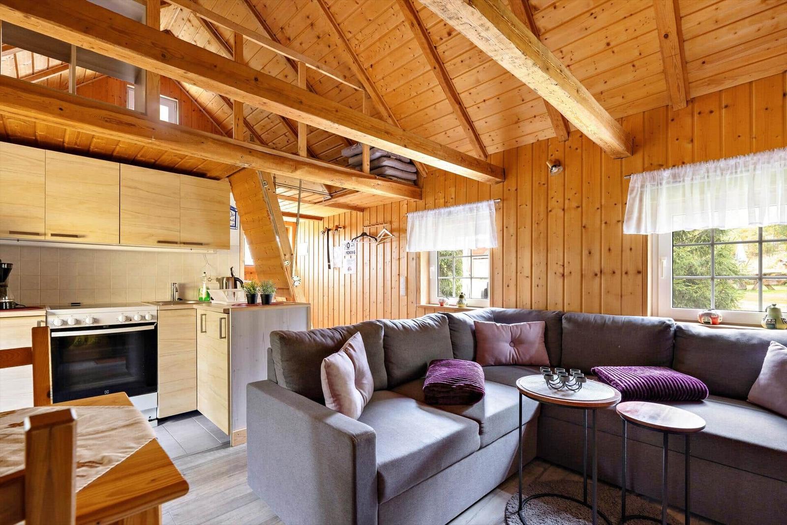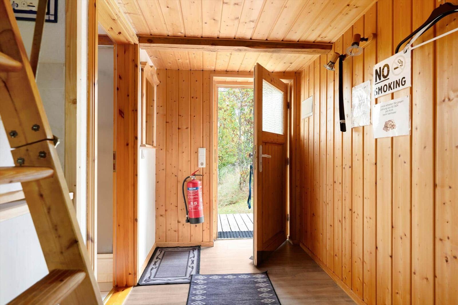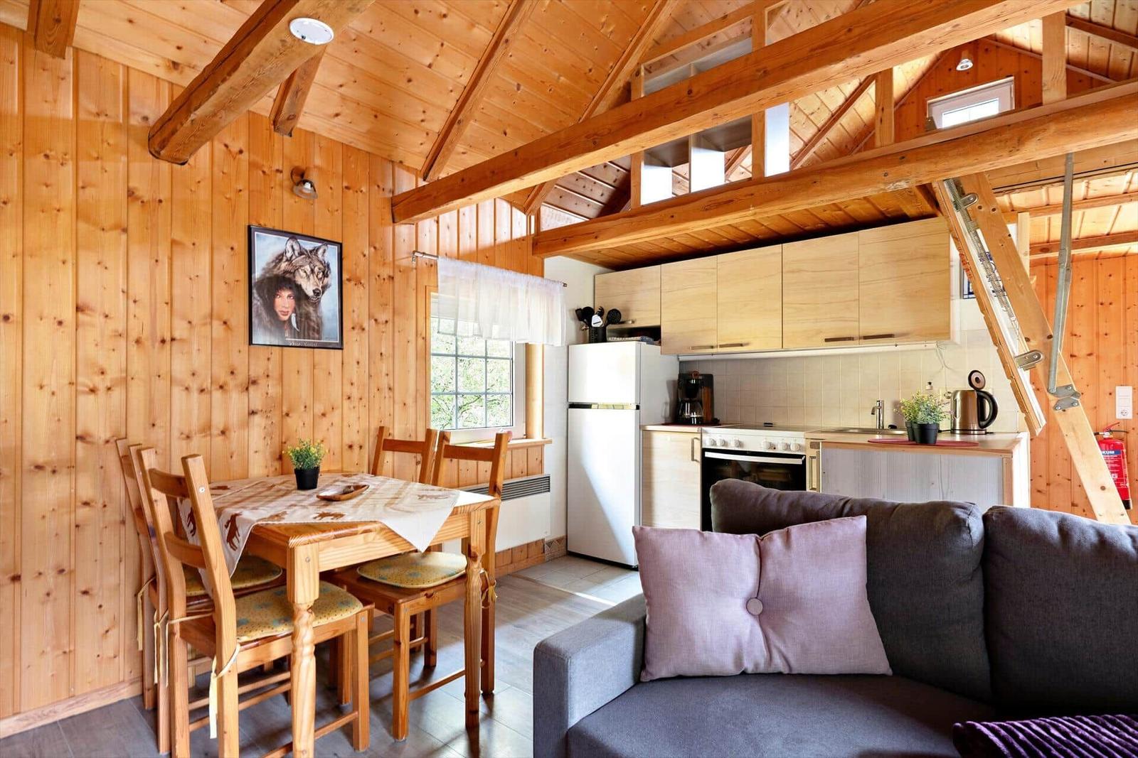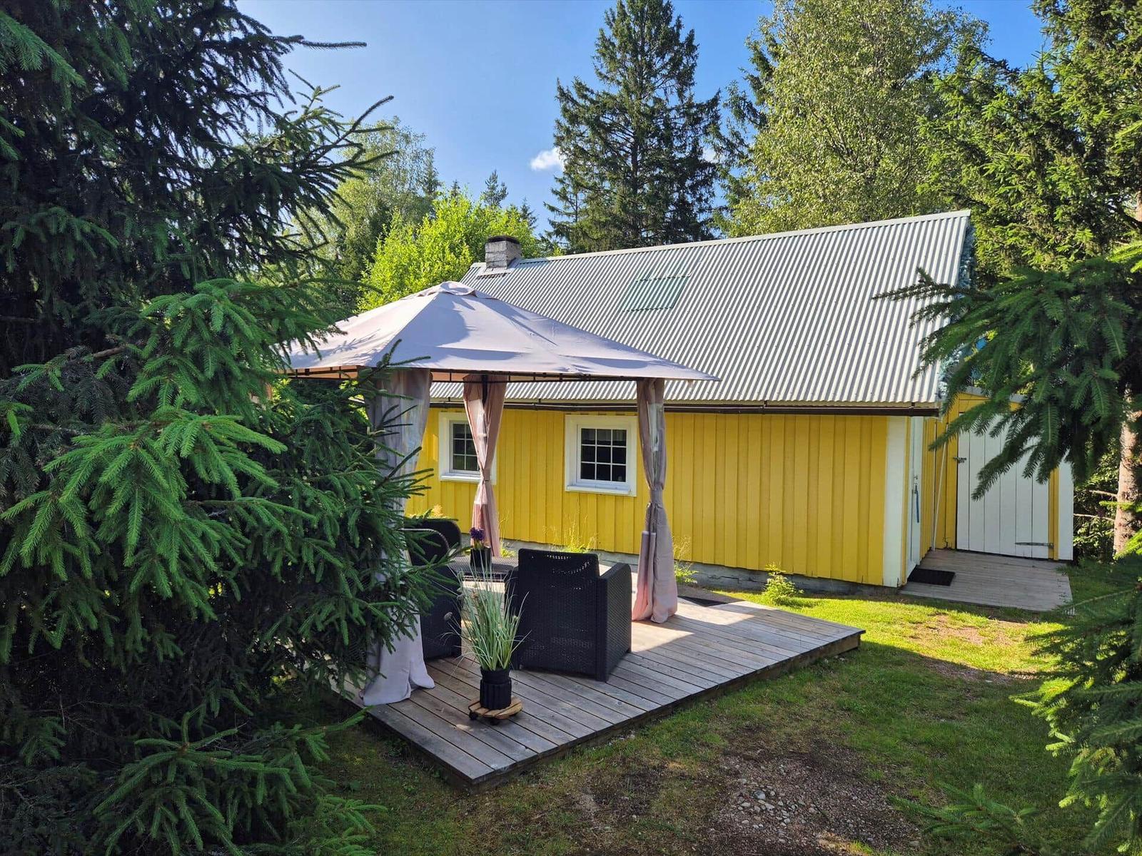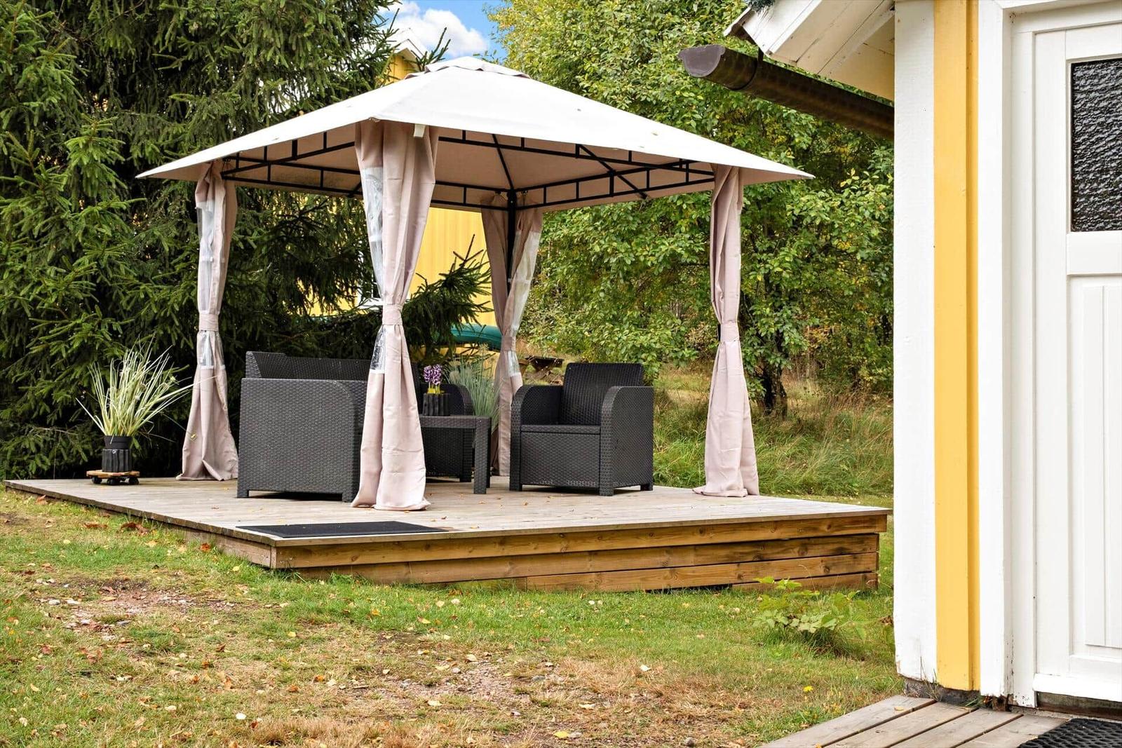 Das Ferienhaus Pigahuset in Västergötland bietet auf 45 m² Platz für bis zu 4 Personen und ist ideal für einen entspannenden Urlaub. Der Eingangsbereich führt zum Badezimmer mit WC und Duschkabine. Der Wohnbereich besticht durch seine hohen Decken und ist mit einem komfortablen Ecksofa, einem Flachbildfernseher mit deutschen Programmen sowie einem Kaminofen ausgestattet. Die offene Küche verfügt über einen großen Kühlschrank mit Gefrierfach, Ofen, Herd, Filterkaffeemaschine und Wasserkocher. Das Schlafzimmer bietet ein Doppelbett, während ein gemütliches Schlafloft mit zwei Einzelbetten über eine Leiter erreichbar ist. Gemeinschaftlich nutzbare Einrichtungen wie eine Grillhütte und eine holzbeheizte Badetonne stehen in 20 m Entfernung zur Verfügung. Ein Internetzugang über einen mobilen Router ist vorhanden, eignet sich jedoch nicht für hohe Datentransfers.