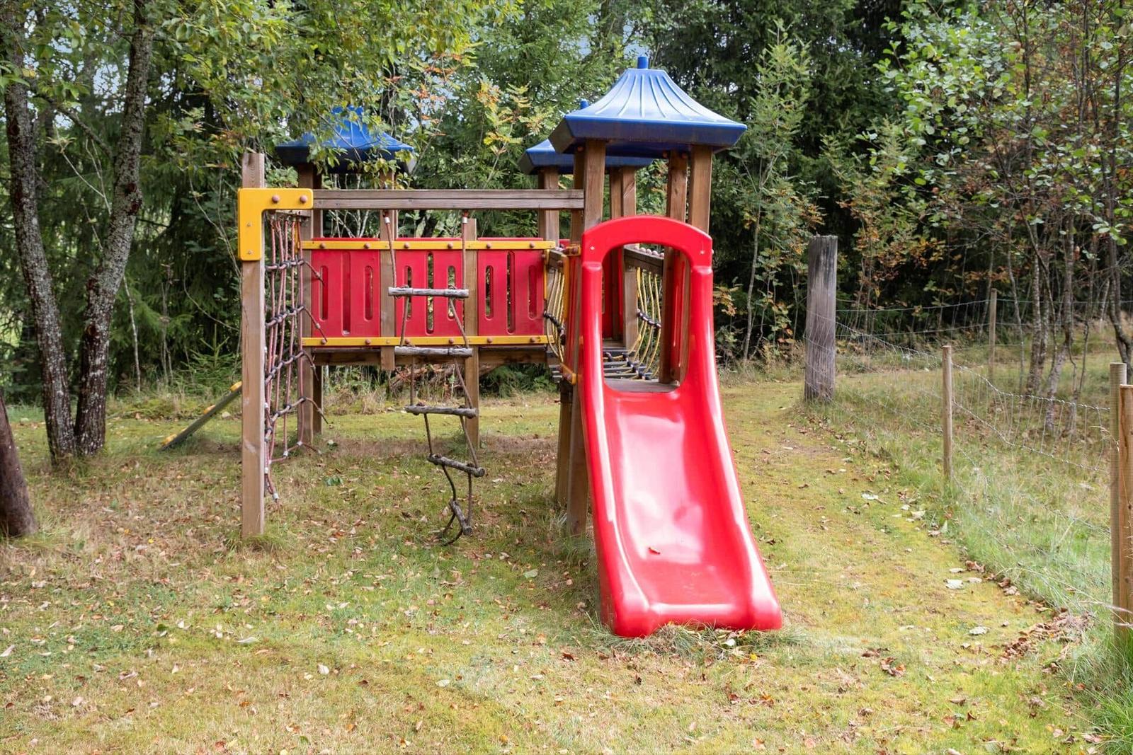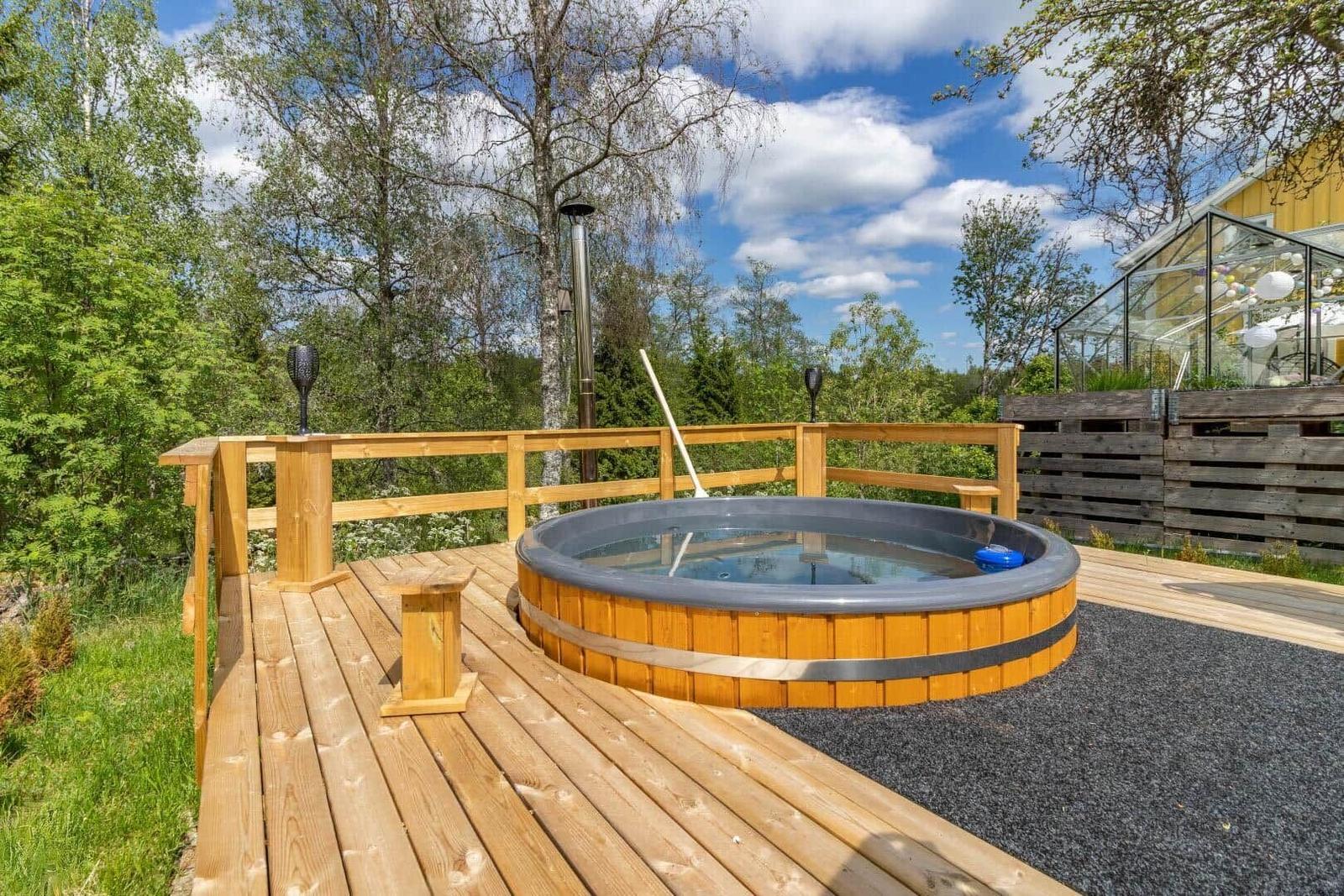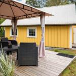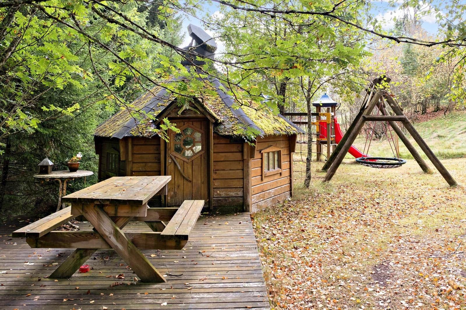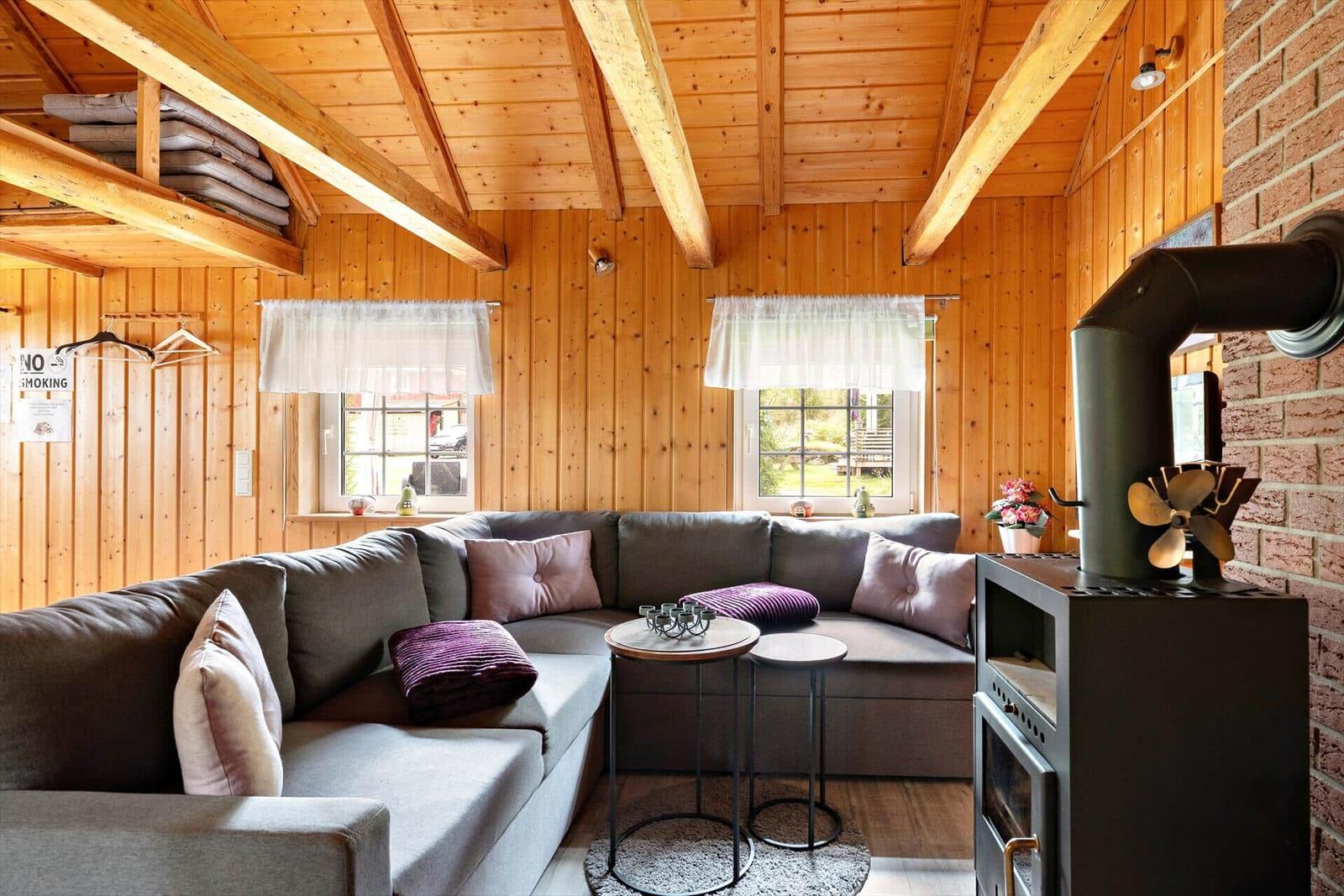 Das Ferienhaus Pigahuset in Västergötland bietet auf 45 m² Platz für bis zu 4 Personen und ist ideal für einen entspannenden Urlaub. Der Eingangsbereich führt zum Badezimmer mit WC und Duschkabine. Der Wohnbereich besticht durch seine hohen Decken und ist mit einem komfortablen Ecksofa, einem Flachbildfernseher mit deutschen Programmen sowie einem Kaminofen ausgestattet. Die offene Küche verfügt über einen großen Kühlschrank mit Gefrierfach, Ofen, Herd, Filterkaffeemaschine und Wasserkocher. Das Schlafzimmer bietet ein Doppelbett, während ein gemütliches Schlafloft mit zwei Einzelbetten über eine Leiter erreichbar ist. Gemeinschaftlich nutzbare Einrichtungen wie eine Grillhütte und eine holzbeheizte Badetonne stehen in 20 m Entfernung zur Verfügung. Ein Internetzugang über einen mobilen Router ist vorhanden, eignet sich jedoch nicht für hohe Datentransfers.