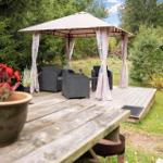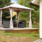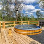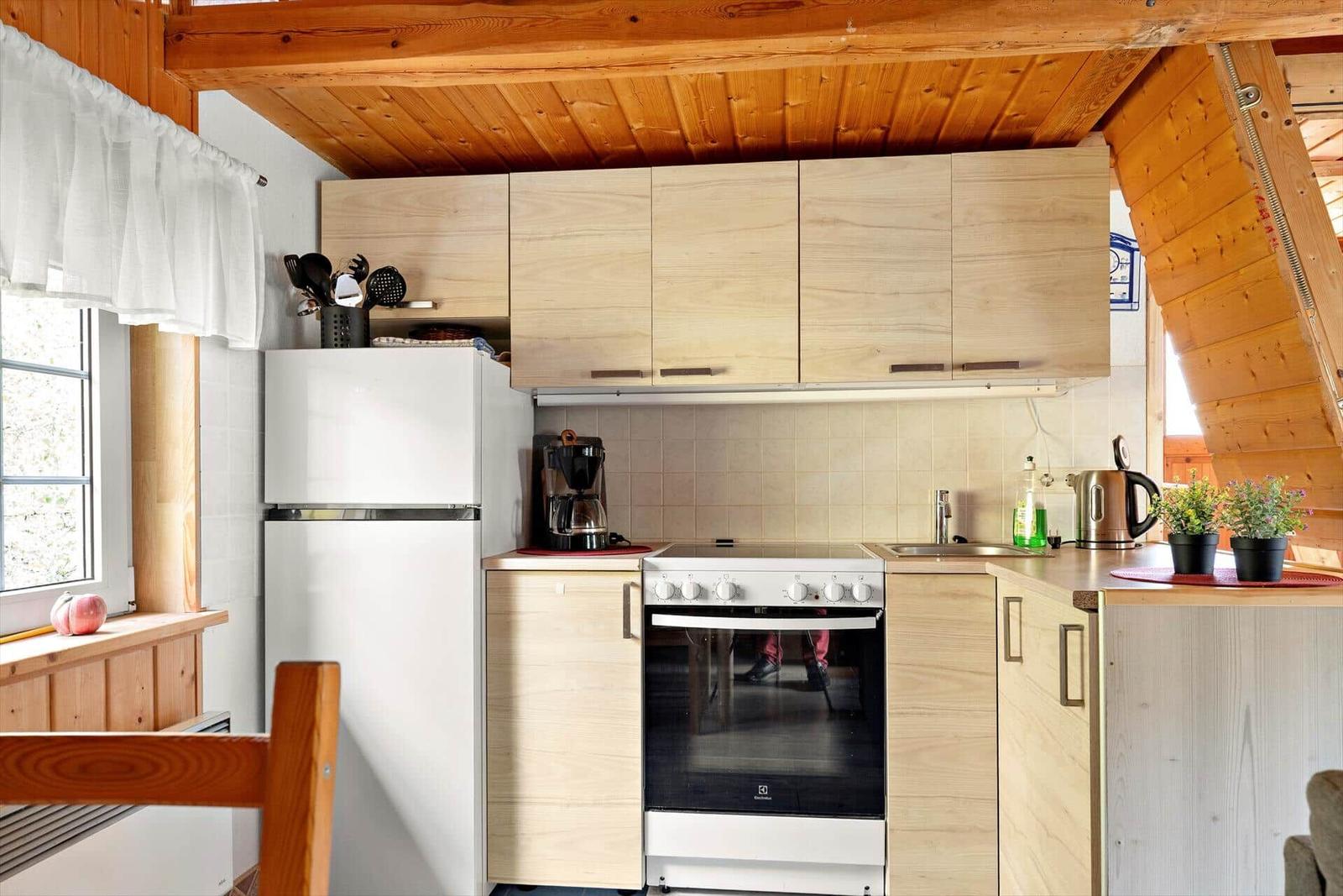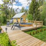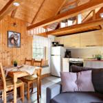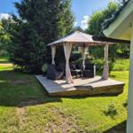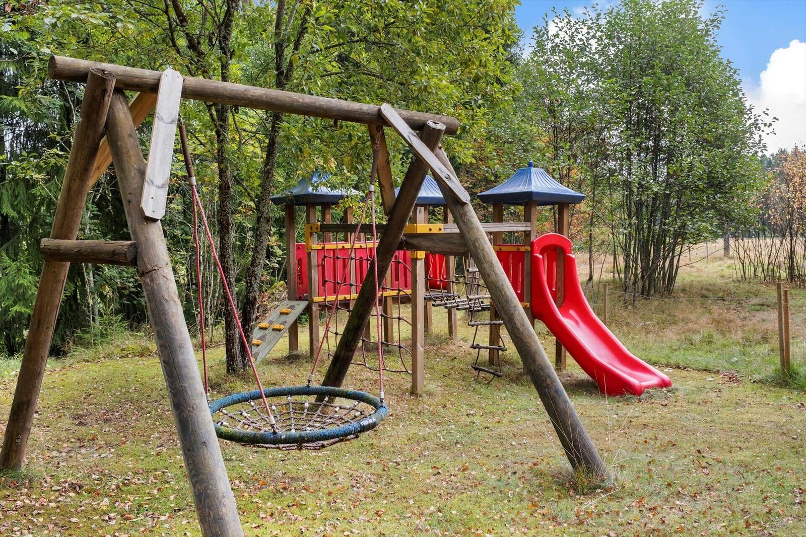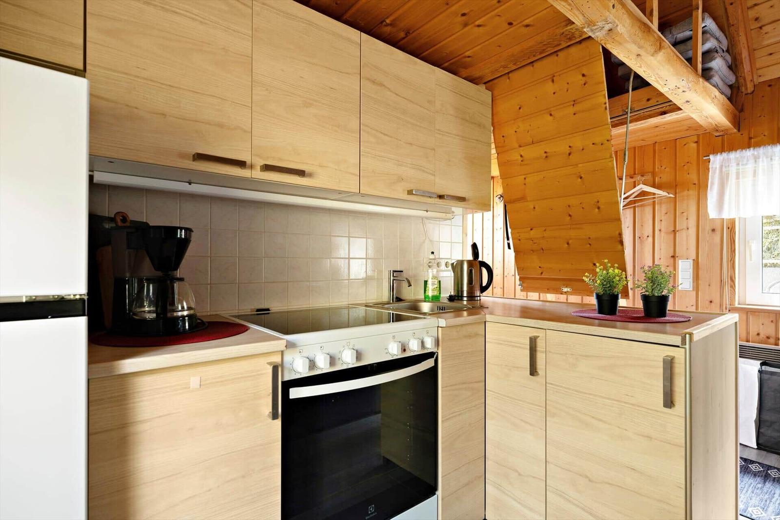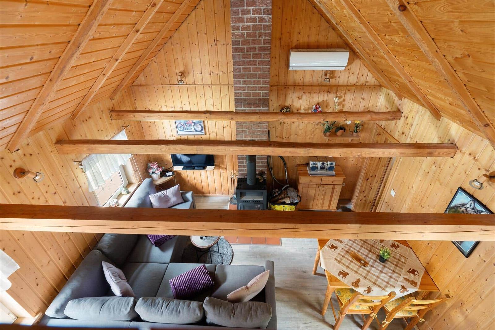 Das Ferienhaus Pigahuset in Västergötland bietet auf 45 m² Platz für bis zu 4 Personen und ist ideal für einen entspannenden Urlaub. Der Eingangsbereich führt zum Badezimmer mit WC und Duschkabine. Der Wohnbereich besticht durch seine hohen Decken und ist mit einem komfortablen Ecksofa, einem Flachbildfernseher mit deutschen Programmen sowie einem Kaminofen ausgestattet. Die offene Küche verfügt über einen großen Kühlschrank mit Gefrierfach, Ofen, Herd, Filterkaffeemaschine und Wasserkocher. Das Schlafzimmer bietet ein Doppelbett, während ein gemütliches Schlafloft mit zwei Einzelbetten über eine Leiter erreichbar ist. Gemeinschaftlich nutzbare Einrichtungen wie eine Grillhütte und eine holzbeheizte Badetonne stehen in 20 m Entfernung zur Verfügung. Ein Internetzugang über einen mobilen Router ist vorhanden, eignet sich jedoch nicht für hohe Datentransfers.