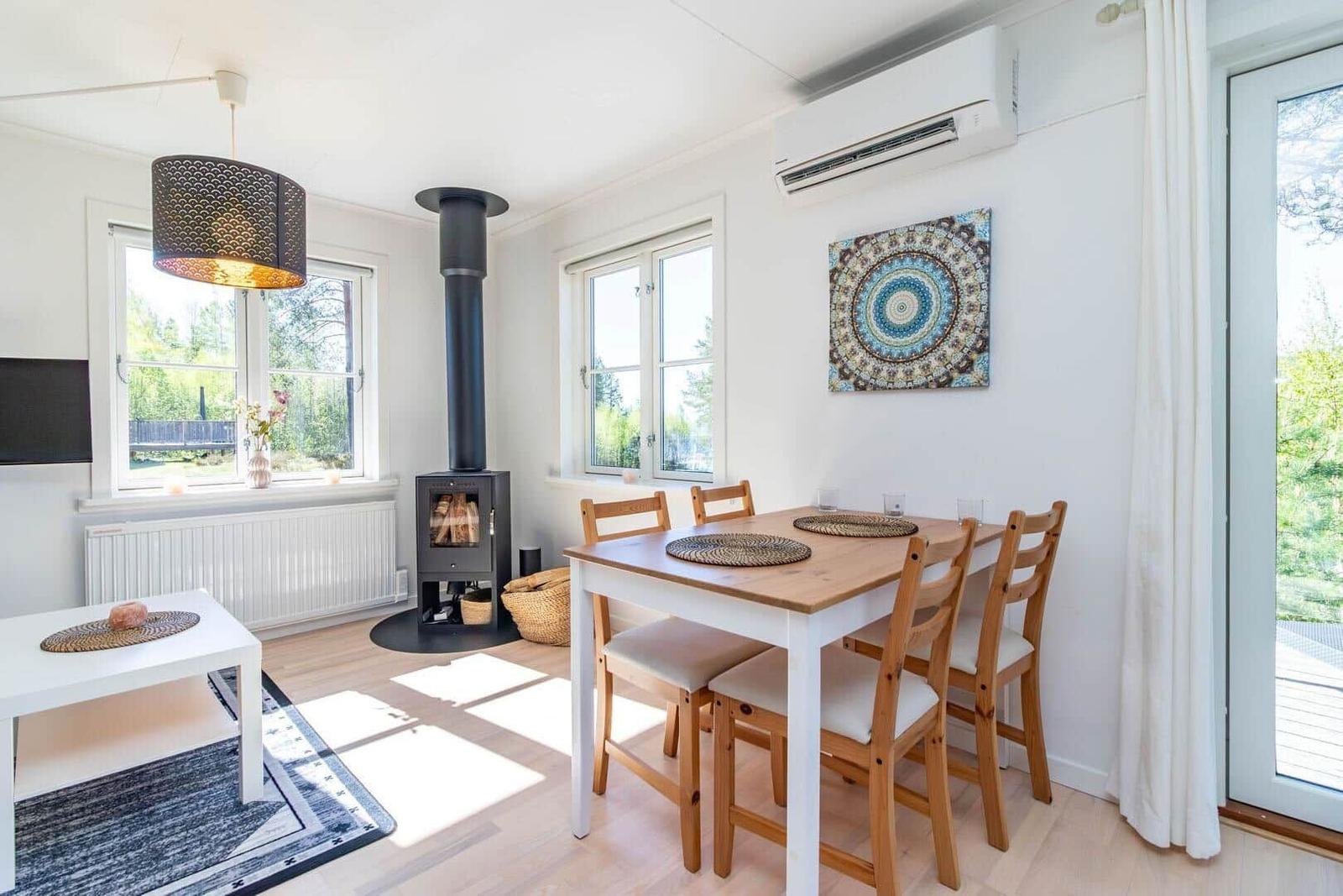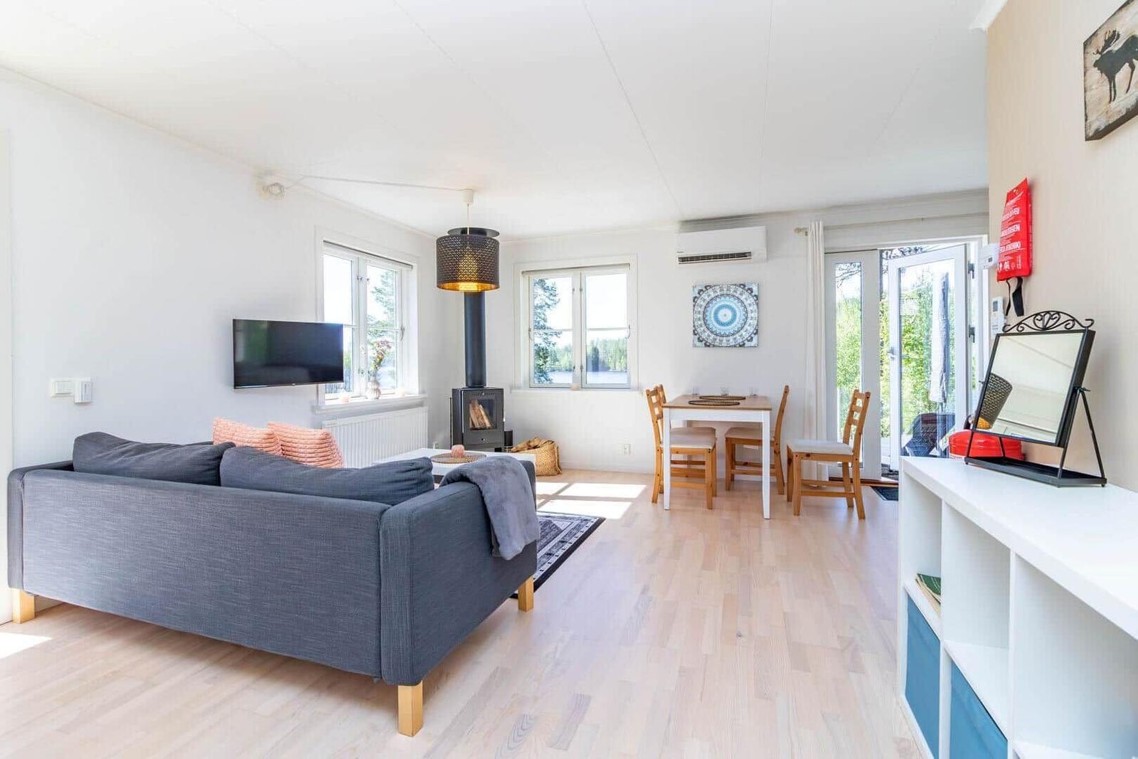Das Ferienhaus in Värmland, Mittel-Schweden, bietet einen einladenden Außenbereich, der ideal für erholsame Stunden in der Natur ist. Umgeben von einem großzügigen Grundstück mit einer Fläche von 40.000 m² können die Gäste den Frieden und die Ruhe der Umgebung genießen. Der nächstgelegene Strand, nur 35 Meter entfernt, lädt zu einem erfrischenden Bad oder entspannenden Spaziergängen am Wasser ein. Für Aktivitäten im Freien steht ein gemeinschaftlicher Bereich zur Verfügung, der das Zusammensein mit anderen Gästen ermöglicht. Die Umgebung ist perfekt für Naturliebhaber, die die Schönheit Schwedens entdecken möchten. Für Einkäufe ist die nächste Möglichkeit in 16.000 Metern erreichbar. Genießen Sie die Kombination aus gemütlicher Unterkunft und der Faszination der Natur.