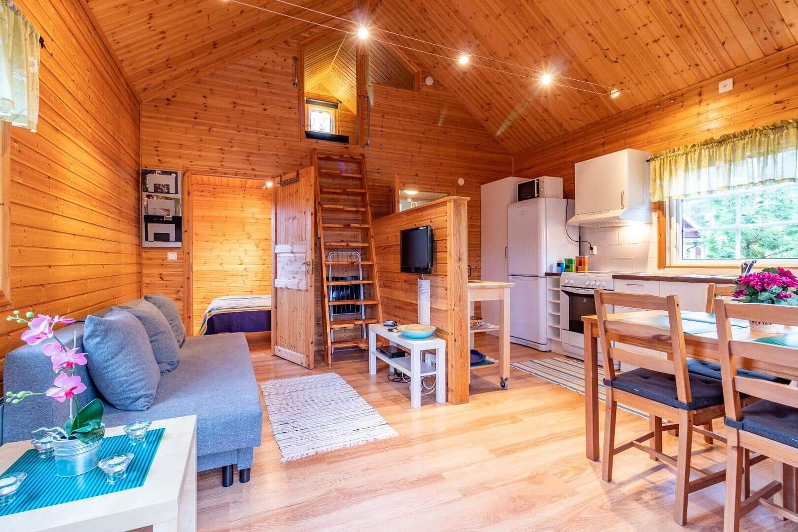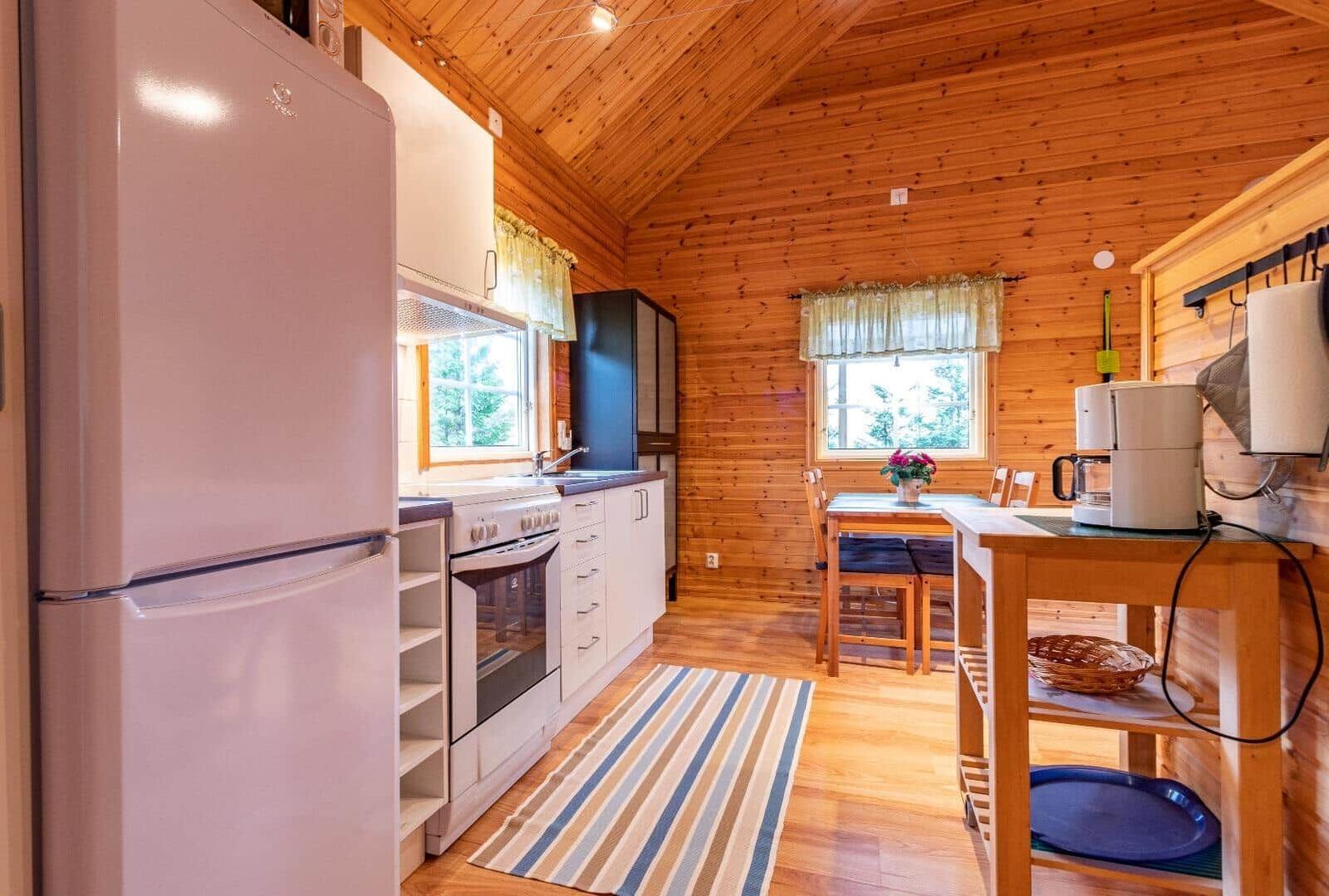 Das Ferienhaus Sjön bietet auf etwa 45 m² Wohnfläche Platz für bis zu vier Personen. Der offene Wohn- und Küchenbereich ist durch eine kleine Wand unterteilt und verfügt über ein gemütliches Sofa, einen TV mit deutschen Programmen sowie Highspeed-Internet. Die Küche ist komplett ausgestattet mit Herd, Ofen, Dunstabzug, Kühl- und Gefrierkombination, Mikrowelle und Kaffeemaschine. Ein Esstisch für vier Personen ermöglicht geselliges Beisammensein. Das erste Schlafzimmer ist mit einem Doppelbett eingerichtet, während ein Schlafloft mit zwei Einzelbetten über eine Leiter zugänglich ist. Das Badezimmer ist mit Dusche und WC ausgestattet. Das Haus wird elektrisch beheizt und bietet eine Terrasse mit Möbeln und Grill. Ein Ruderboot ist im Mietpreis enthalten. Die An- und Abreise erfolgt samstags, Haustiere sind nicht erlaubt. Brennholz und verschiedene Extras sind vor Ort erhältlich.