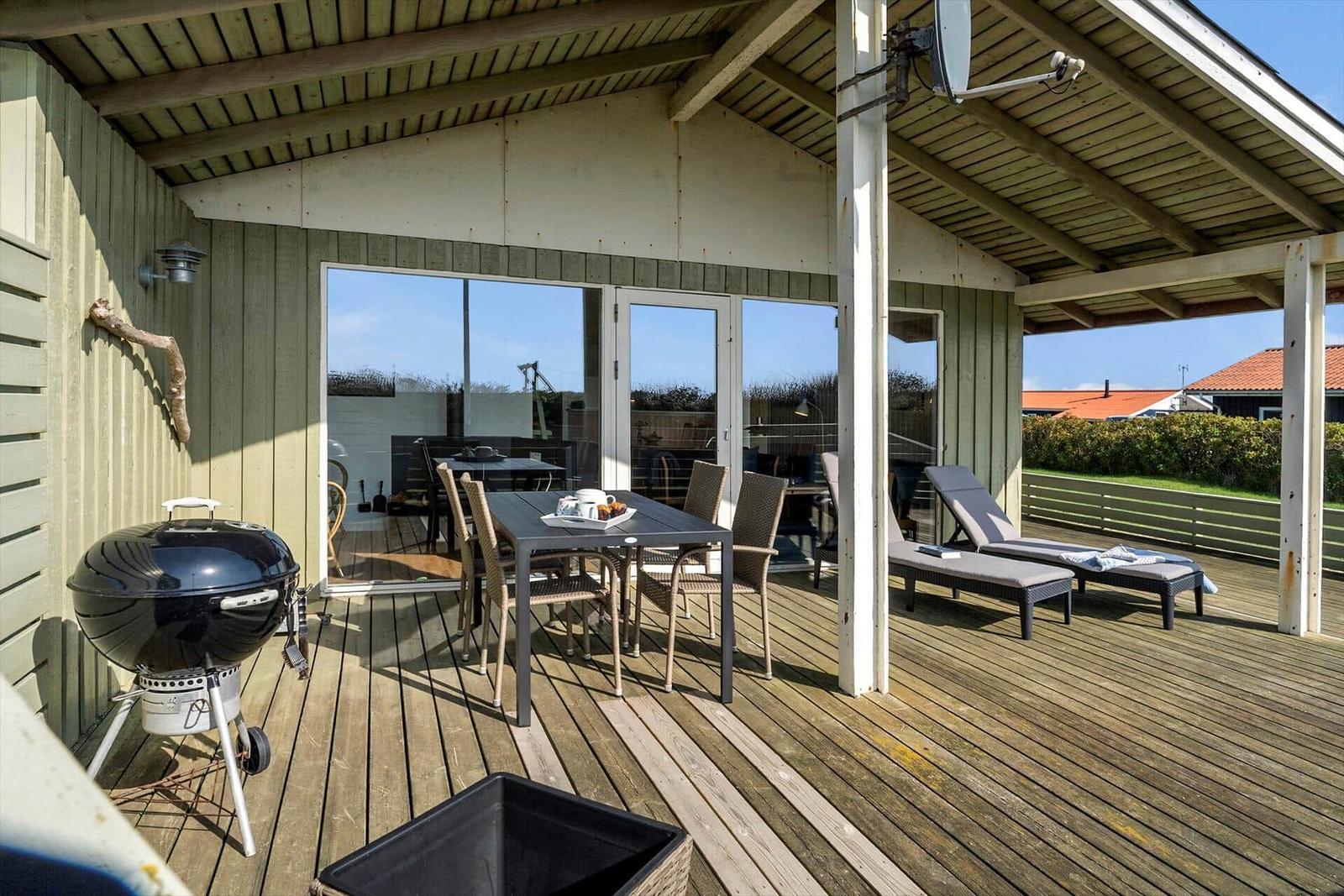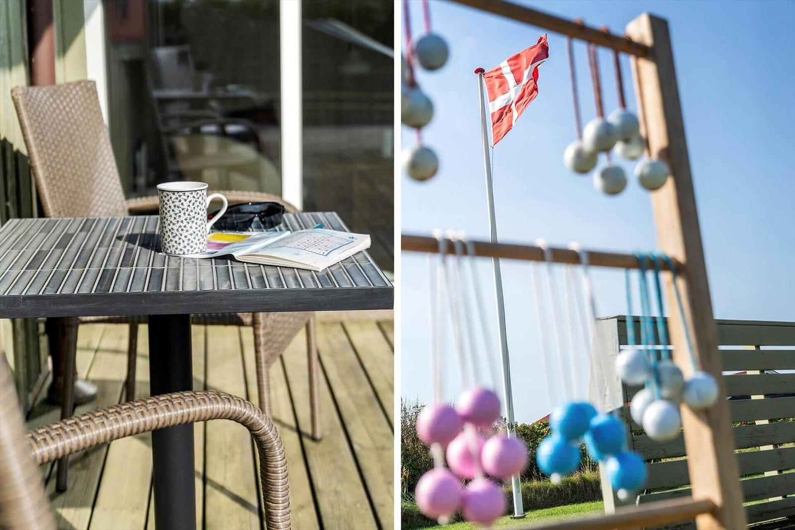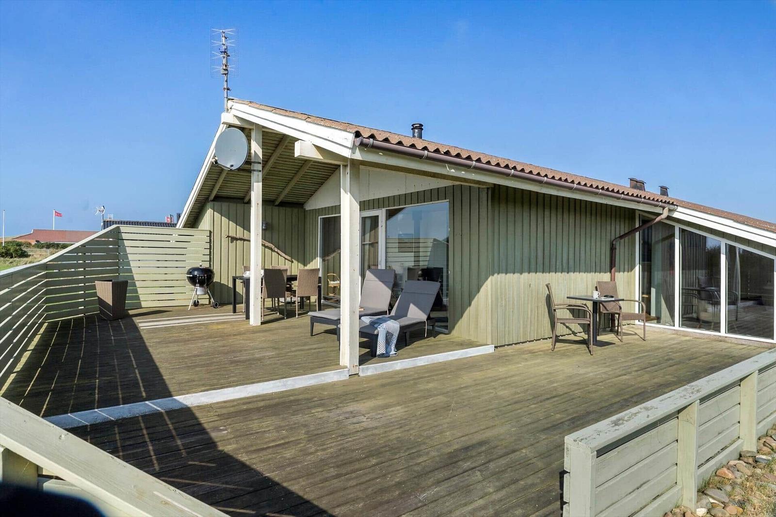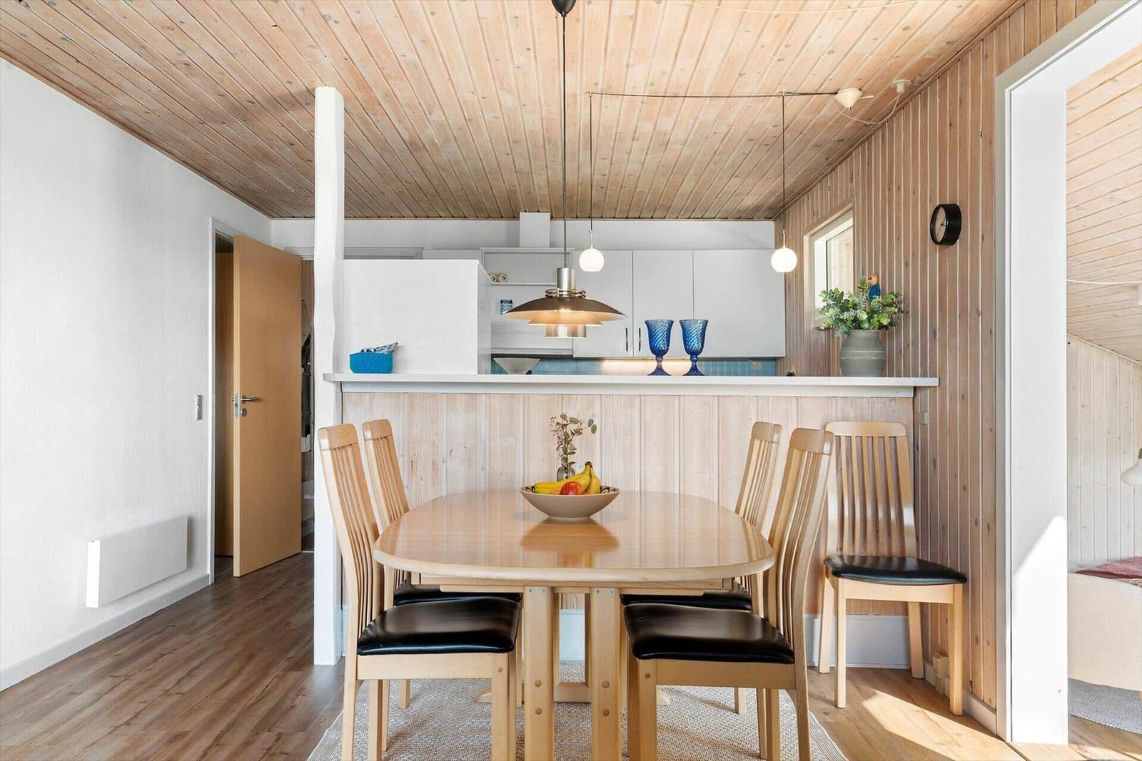 In der Ferienwohnung Vejlby Klit 127 erwartet der Gast ein Rückzugsort der besonderen Art. Die lichtdurchfluteten Räume mit offener Küche, Essplatz und Wohnzimmer schaffen eine einladende Atmosphäre. Die voll ausgestattete Küche beinhaltet einen Geschirrspüler, Elektro-/Gasherd, Mikrowelle, Kühlschrank, Kaffeemaschine, Wasserkocher und eine Gefriermöglichkeit. Das komfortable Wohnschlafzimmer mit Kaminofen und TV bietet Raum für gemütliche Abende. In den drei Schlafzimmern, ausgestattet mit zwei Doppel- und zwei Einzelbetten, finden bis zu sechs Personen Platz. Das Duschbad und die praktische Waschmaschine mit Wäschetrockner runden den Komfort ab. Fußbodenheizung sorgt für wohlige Wärme, während WLAN für Internetverbindung sorgt. Die teilweise überdachte Terrasse lädt zum Entspannen im Freien ein und harmoniert perfekt mit der idyllischen Umgebung.