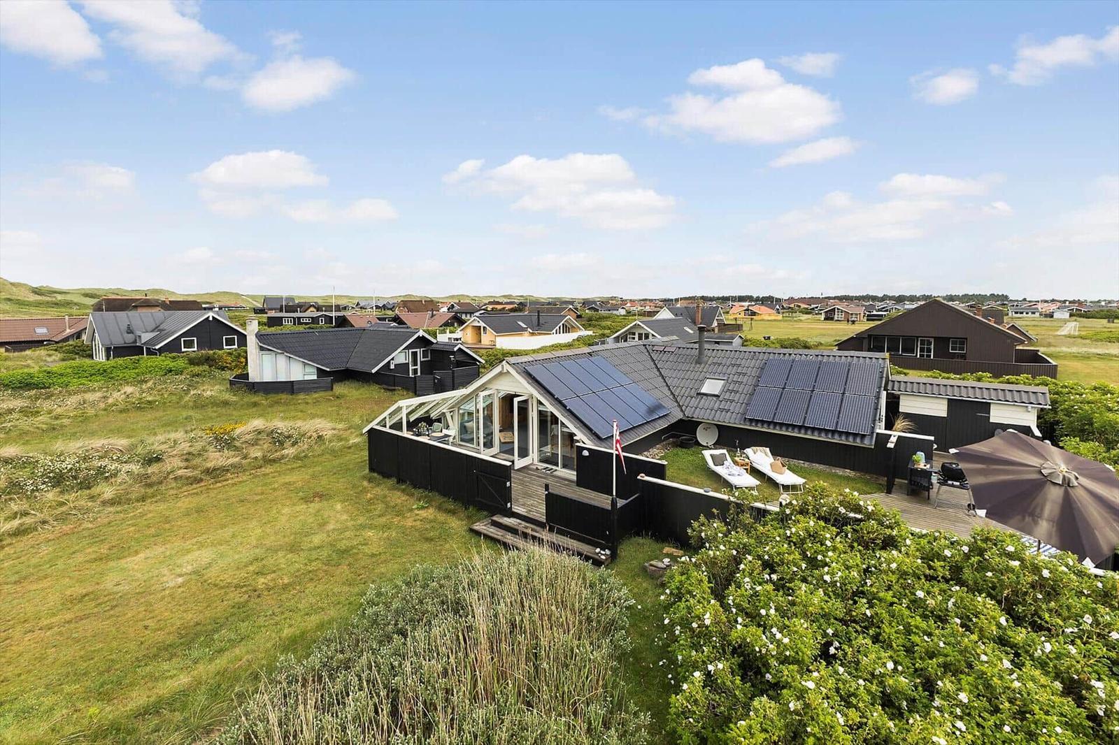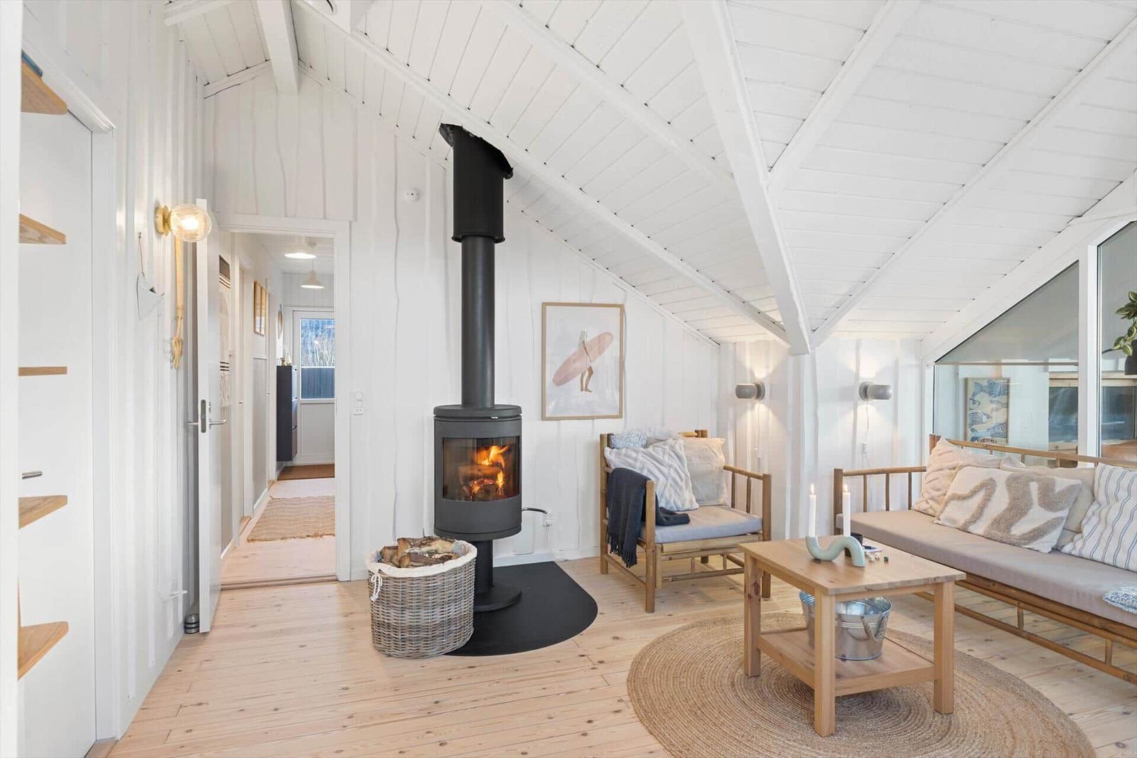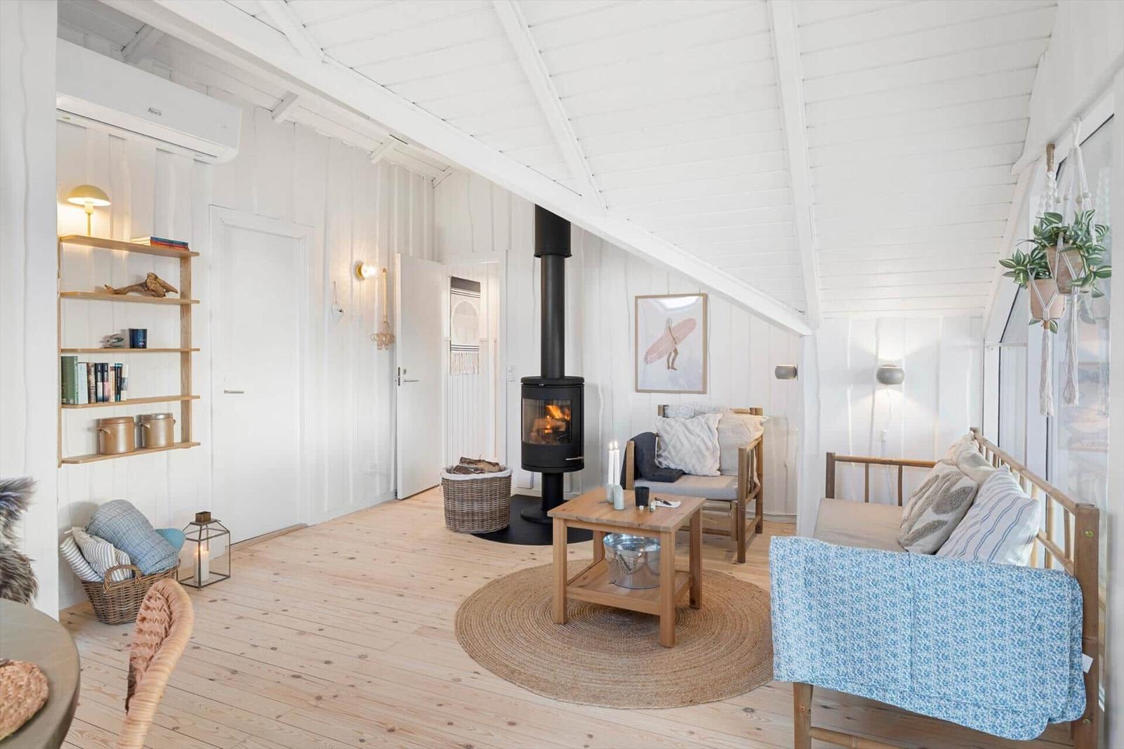 Die Ferienwohnung in Vejlby Klit Strand, Westjütland, bietet auf 90 m² Platz für bis zu 6 Erwachsene und 2 Haustiere. Die offene Küche ist mit modernen Annehmlichkeiten wie einem Geschirrspüler, Elektro- und Gasherd, Backofen, Mikrowelle, Kühlschrank und einer Kaffeemaschine ausgestattet, die das Kochen zum Vergnügen macht. Der Wohnbereich verfügt über einen gemütlichen Kamin sowie einen TV mit DVD-/Blu Ray-Player, ideal für entspannte Abende. Das Badezimmer ist mit einer Duschkabine ausgestattet, und eine Fußbodenheizung sorgt für zusätzlichen Komfort. Die Anlage ist nur 300 Meter vom Strand und 400 Meter von Einkaufsmöglichkeiten entfernt. In dieser Wohlfühloase sind Internet und WLAN selbstverständlich vorhanden. Die Schlafmöglichkeiten umfassen 1 Doppelbett und 5 Einzelbetten in 3 Schlafzimmern sowie einem Wohnschlafzimmer, das zusätzlichen Platz bietet.