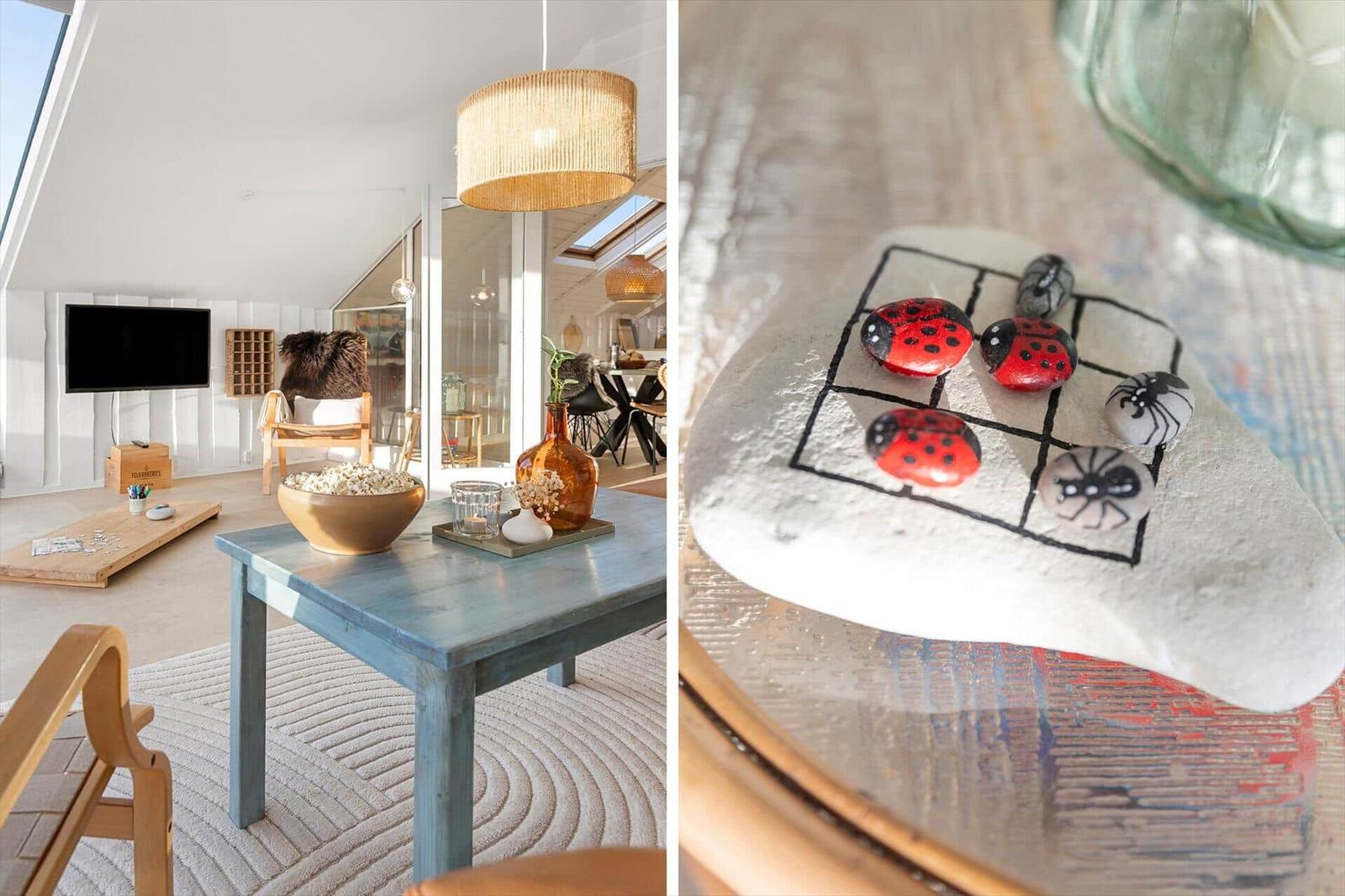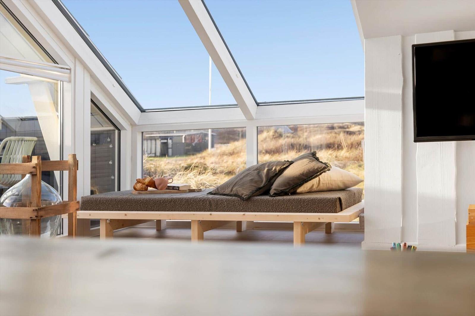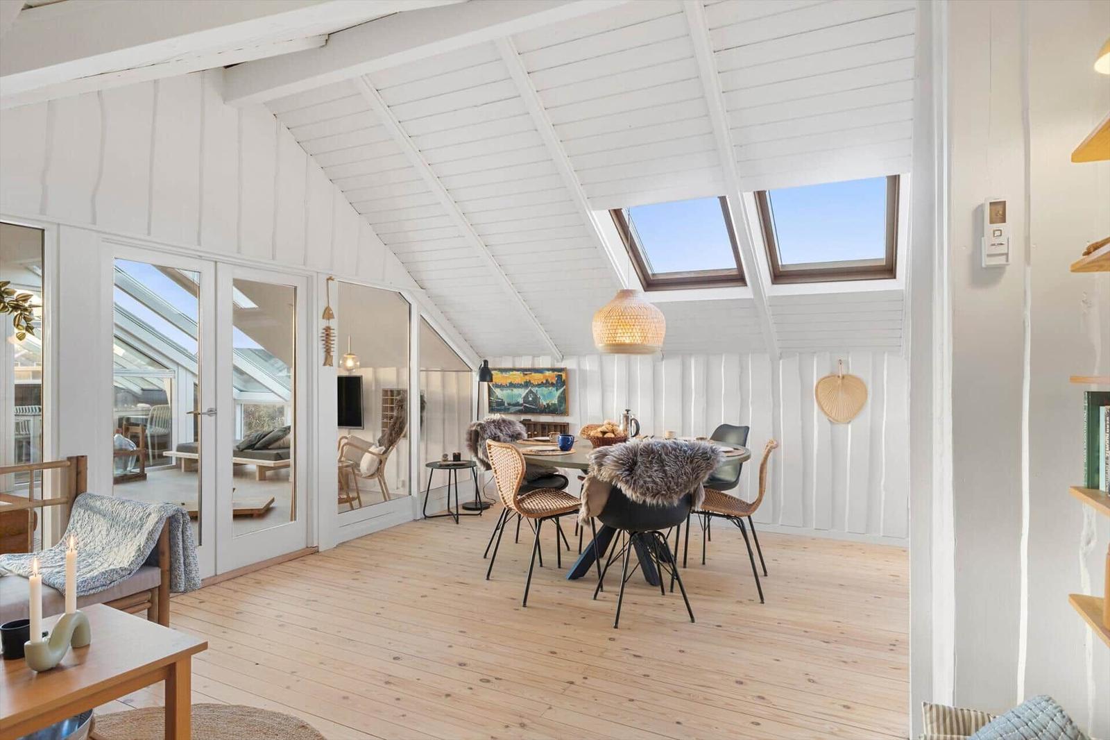 Die Ferienwohnung in Vejlby Klit Strand, Westjütland, bietet auf 90 m² Platz für bis zu 6 Erwachsene und 2 Haustiere. Die offene Küche ist mit modernen Annehmlichkeiten wie einem Geschirrspüler, Elektro- und Gasherd, Backofen, Mikrowelle, Kühlschrank und einer Kaffeemaschine ausgestattet, die das Kochen zum Vergnügen macht. Der Wohnbereich verfügt über einen gemütlichen Kamin sowie einen TV mit DVD-/Blu Ray-Player, ideal für entspannte Abende. Das Badezimmer ist mit einer Duschkabine ausgestattet, und eine Fußbodenheizung sorgt für zusätzlichen Komfort. Die Anlage ist nur 300 Meter vom Strand und 400 Meter von Einkaufsmöglichkeiten entfernt. In dieser Wohlfühloase sind Internet und WLAN selbstverständlich vorhanden. Die Schlafmöglichkeiten umfassen 1 Doppelbett und 5 Einzelbetten in 3 Schlafzimmern sowie einem Wohnschlafzimmer, das zusätzlichen Platz bietet.