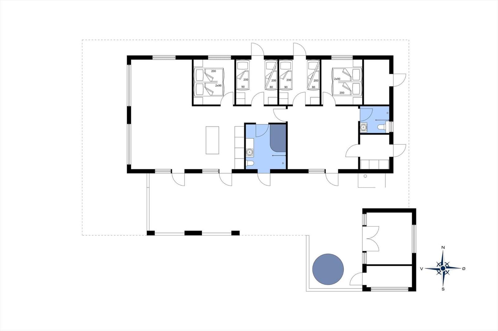 In Vejlby Klit, nur 150 Meter vom Strand entfernt, befindet sich diese moderne Ferienwohnung aus dem Jahr 2022. Mit großzügigen 4 Schlafzimmern, darunter 2 Doppelbetten und 6 Einzelbetten, bietet sie Platz für bis zu 10 Personen. Die offene Küche ist mit einem Geschirrspüler, Elektro-/Gasherd, Backofen, Mikrowelle, Kühlschrank, Wasserkocher und Kaffeemaschine ausgestattet und lädt zu gemeinschaftlichem Kochen ein. Entspannung findet man im stilvollen Wohnschlafzimmer mit Smart-TV oder im Aktivitätsraum mit Tischtennis und Billard. Zwei moderne Duschbäder, eine Waschmaschine und ein Wäschetrockner sorgen für Komfort. Die Fußbodenheizung gewährleistet wohlige Wärme. Internet mit WLAN ist ebenfalls verfügbar. Der Außenbereich bietet eine beeindruckende Terrasse mit Gartenmöbeln, Grill und einem Außen-Whirlpool, ideal für entspannte Stunden im Freien.