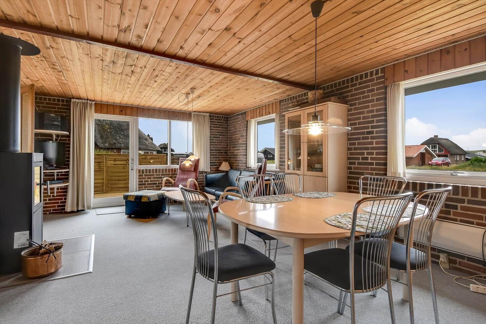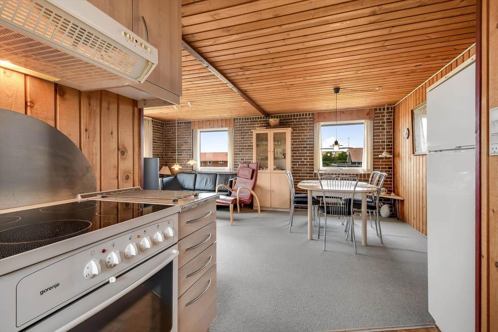 Die Ferienwohnung in Vrist, Westjütland, bietet eine beeindruckende Ausstattung auf 72 m². Es stehen drei Schlafzimmer zur Verfügung, darunter zwei Doppelbetten und ein Einzelbett, sowie ein Kinderbett für die kleinen Gäste. Die offenen Küchenbereiche sind mit modernen Geräten wie einem Elektro-/Gasherd, Backofen, Mikrowelle, Kühlschrank und Geschirrspüler ausgestattet und ermöglichen ein gemütliches Kochen. Für einen entspannenden Aufenthalt sorgen zwei Badezimmer mit Dusche. Der Wohnbereich ist mit einem Fernseher ausgestattet und verfügt über eine Fußbodenheizung, die für behagliche Temperaturen sorgt. Zusätzlich sind eine Waschmaschine, ein Wäschetrockner und eine Kaffeemaschine vorhanden. WLAN ist verfügbar, ebenso wie ein Kamin und eine Sauna für erholsame Stunden. Die Unterkunft liegt nur 350 Meter vom Strand und 800 Meter von Einkaufsmöglichkeiten entfernt und bietet Platz für bis zu 5 Erwachsene und 1 Haustier.