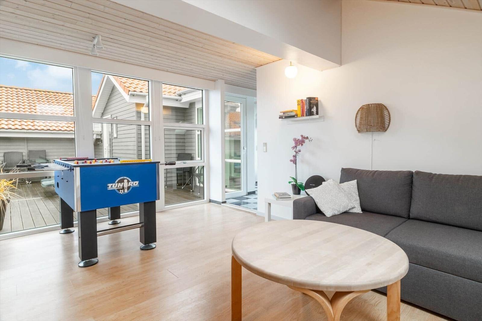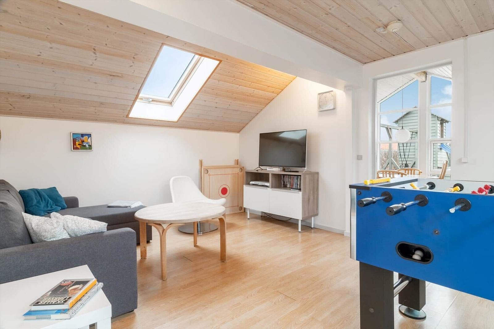 Die Ferienwohnung in Vejlby Klit Strand, Westjütland, bietet auf großzügigen 207 m² ausreichend Platz für 11 Erwachsene und 2 Haustiere. Sie überzeugt durch eine gemütliche Einrichtung, die mit einem Kamin und einer offenen Küche ausgestattet ist. Die Küche verfügt über moderne Geräte wie Geschirrspüler, Elektro-/Gasherd, Backofen, Mikrowelle und Kühlschrank sowie eine Kaffeemaschine und eine Gefriermöglichkeit. Für die kleinen Gäste stehen zwei Hochstühle bereit. Die Wohnung verfügt über 5 Schlafzimmer, 3 Badezimmer und ein Wohnschlafzimmer. Besonders hervorzuheben sind die Fußbodenheizung, die Spielekonsole für Indoor-Aktivitäten sowie das sichere WLAN. Entspannung bieten die Sauna und der nähegelegene Strand, der nur 400 Meter entfernt ist. Eine Schaukel und ein Spielhaus im Außenbereich erhöhen den Freizeitwert. Ideal für Familien und große Gruppen.