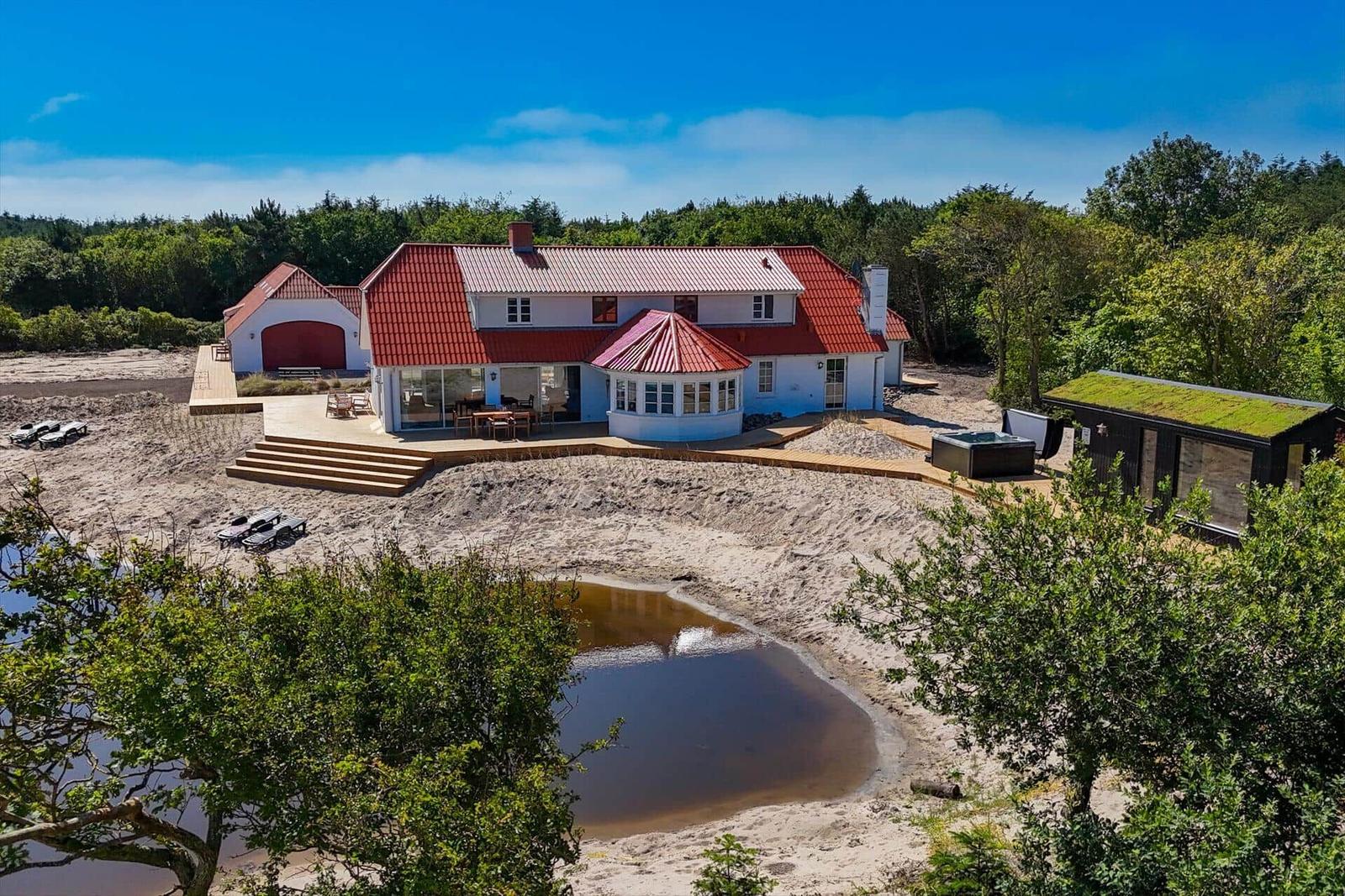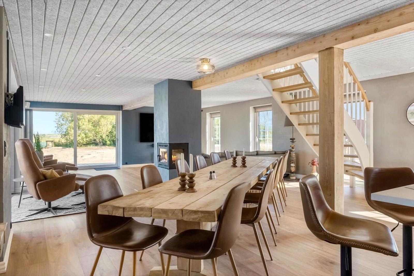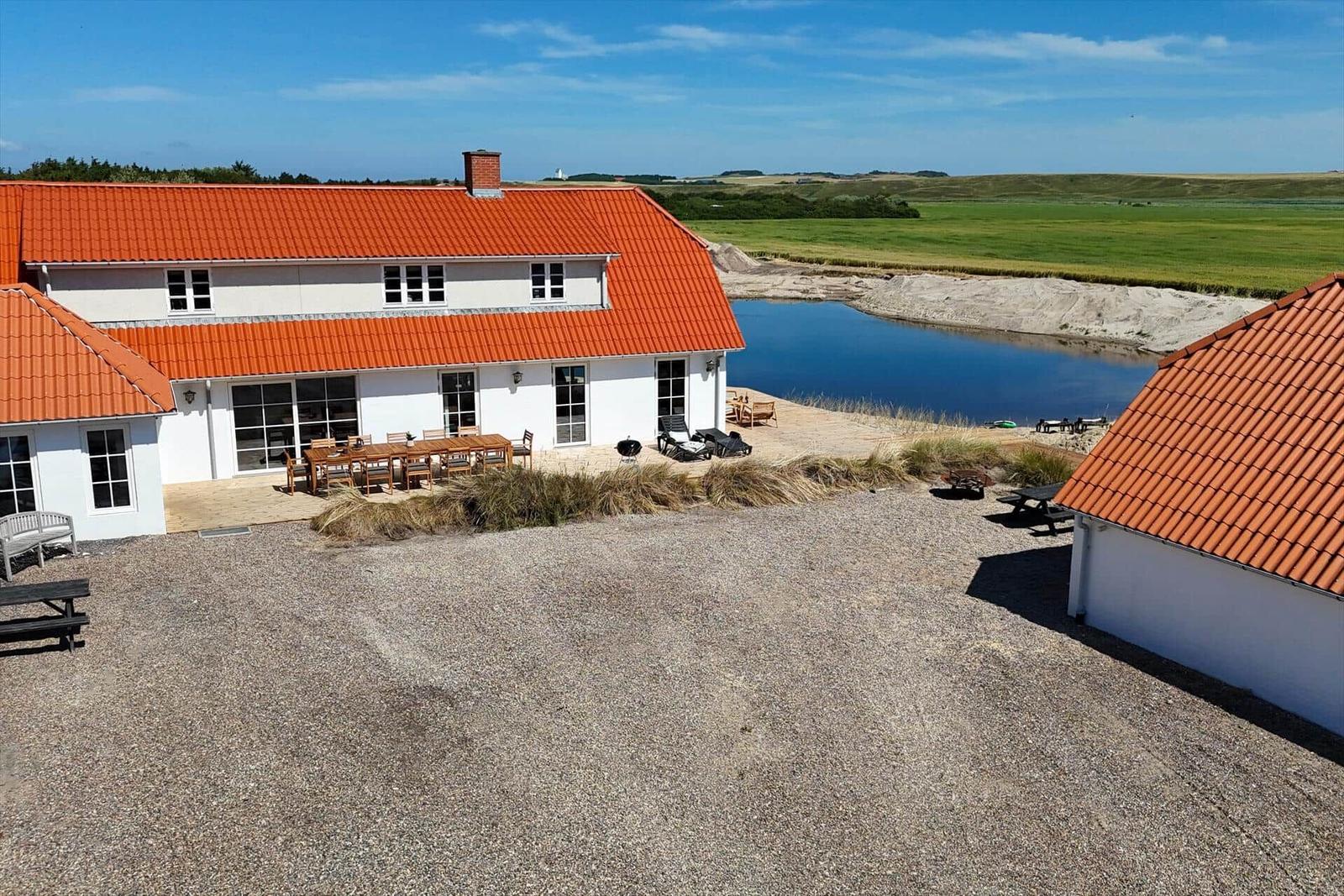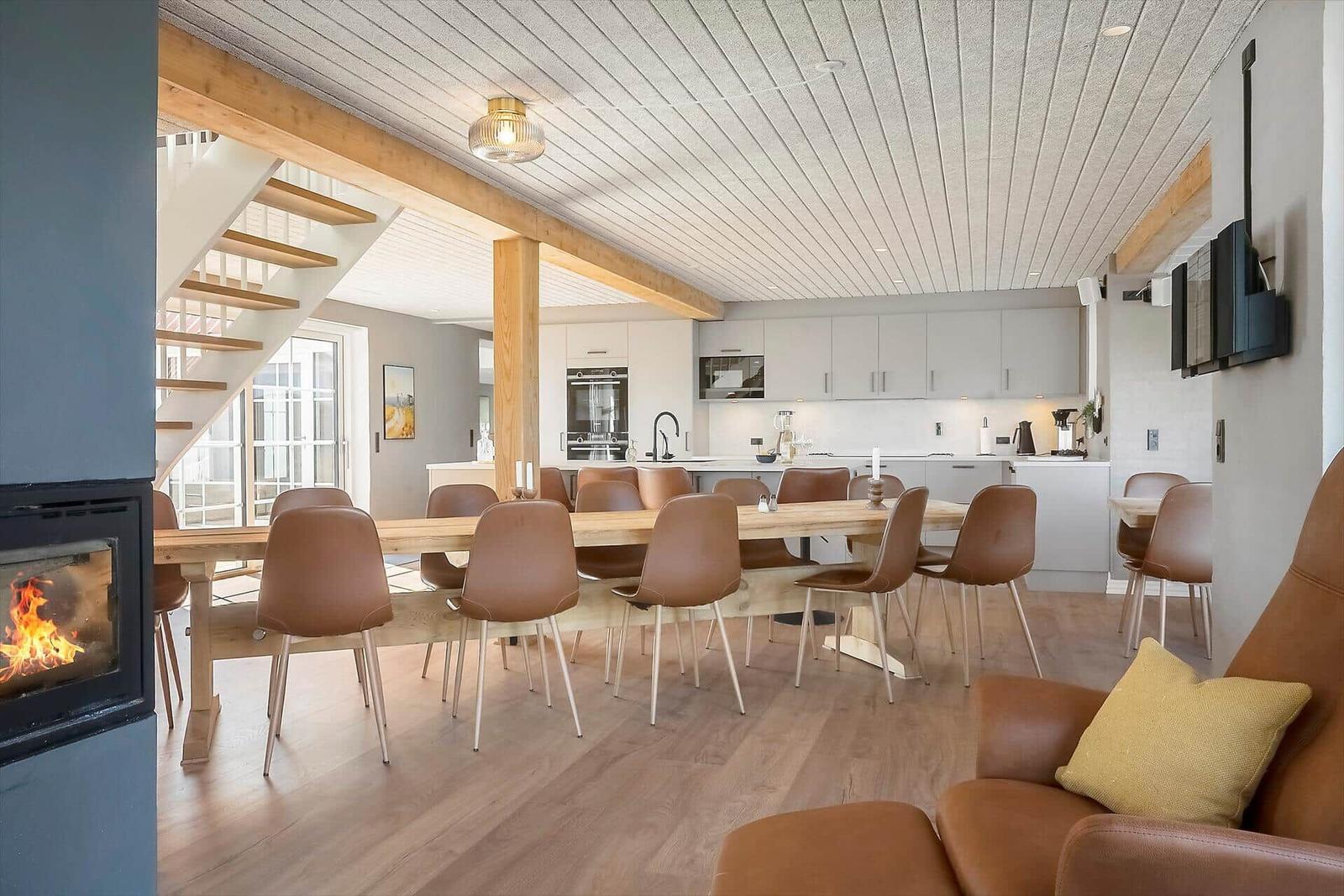 Diese Ferienwohnung in ländlicher Idylle nahe Vejlby Klit bietet einen großzügigen Raum für bis zu 17 Personen und 1 Kind. Mit 370 m² Wohnfläche und sieben Schlafräumen, darunter vier im Obergeschoss, wird genügend Platz für Entspannung und Geselligkeit geboten. Die moderne Küche ist mit einem Geschirrspüler, Elektro-/Gasherd, Backofen, Mikrowelle, Kühlschrank, Kaffeemaschine und Gefriermöglichkeit ausgestattet. Wohn- und Esszimmer verfügen über eine Fußbodenheizung und einen Kaminofen, während Highspeed-WLAN und ein Smart-TV für Unterhaltung sorgen. Drei Duschbäder, ein Hauswirtschaftsraum, Waschmaschine und Wäschetrockner erhöhen den Komfort. Außen sorgen ein weitläufiger Garten mit Teich und Terrassen für Erholung. Die Lage ermöglicht den schnellen Zugang zu den Stränden der Nordsee und zu Freizeitaktivitäten in der Umgebung.