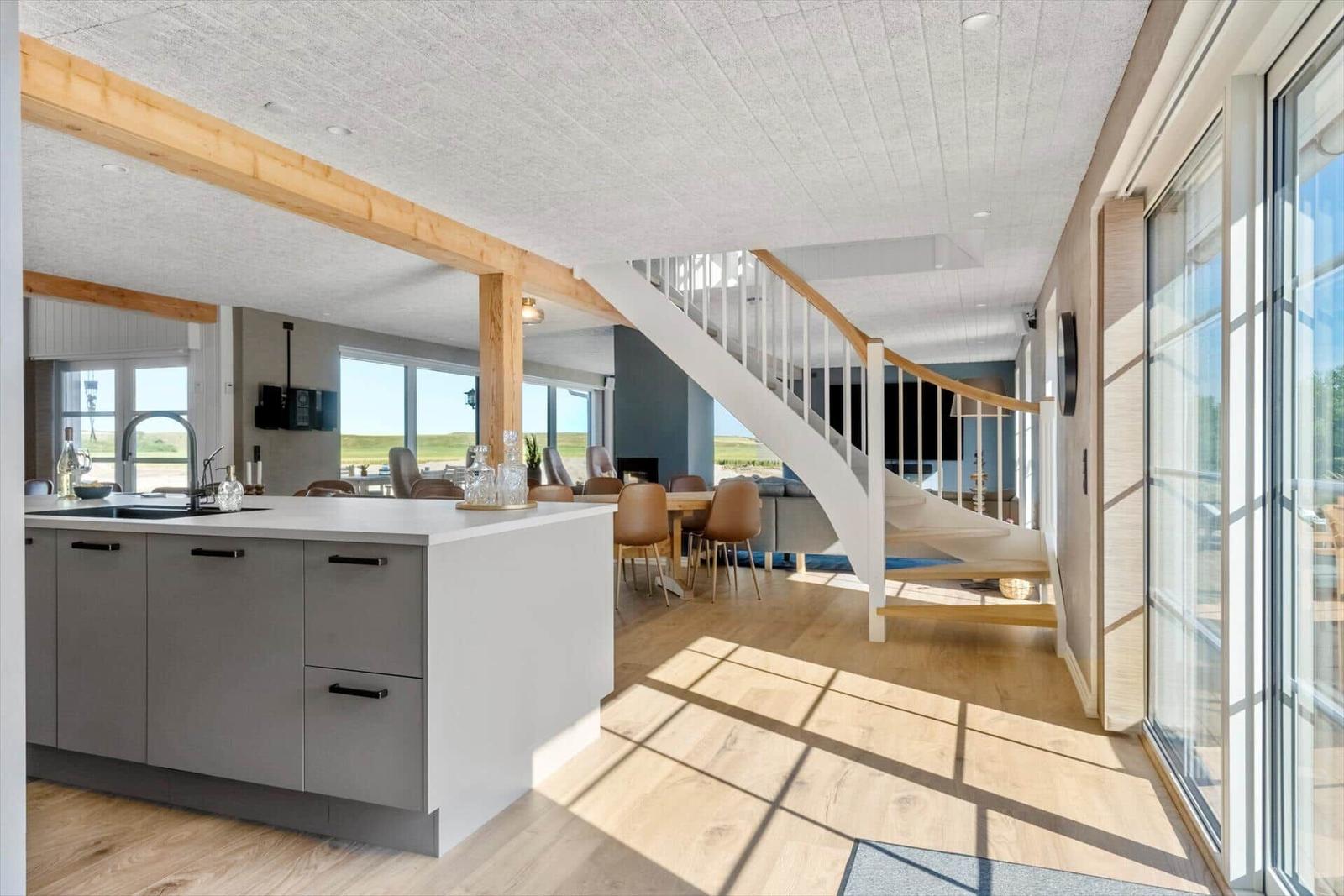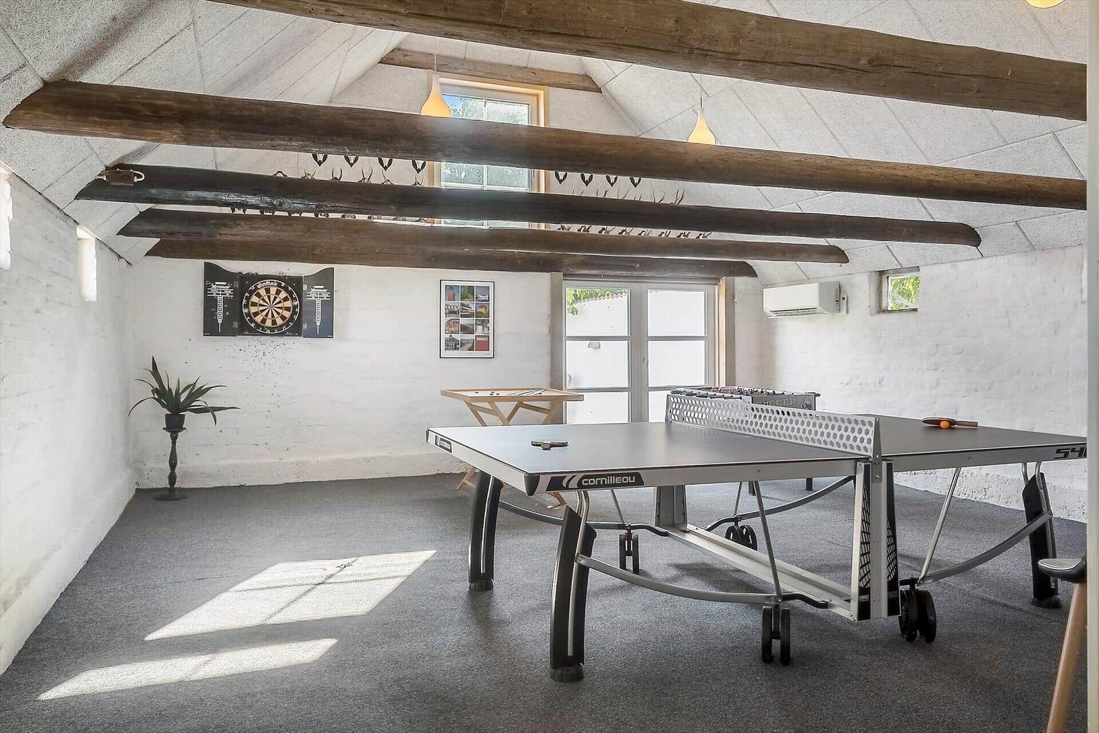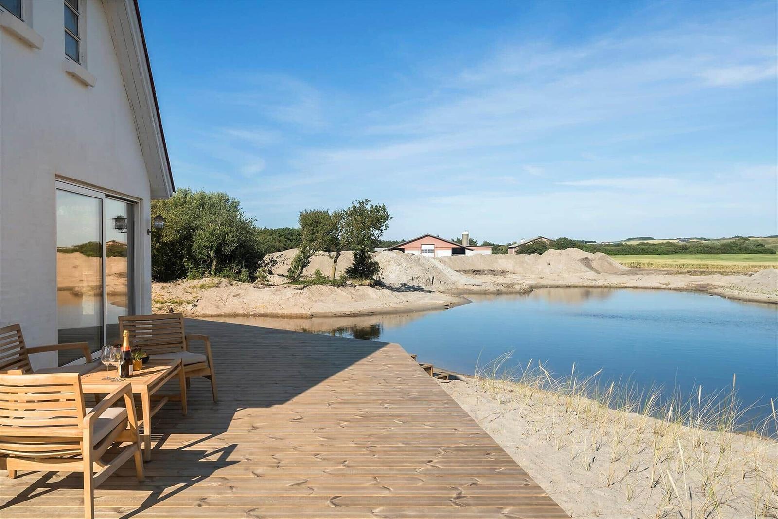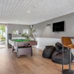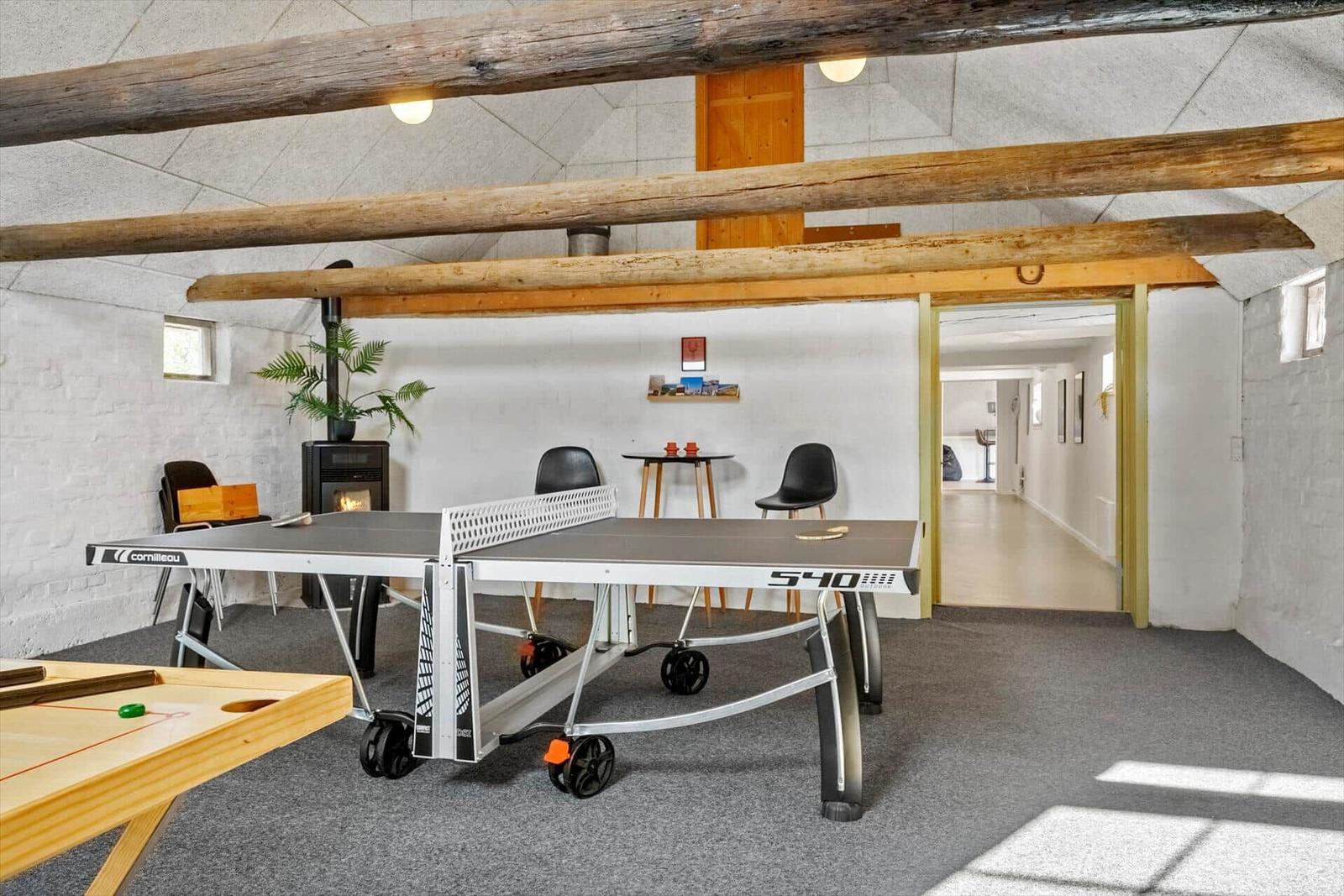 Diese Ferienwohnung in ländlicher Idylle nahe Vejlby Klit bietet einen großzügigen Raum für bis zu 17 Personen und 1 Kind. Mit 370 m² Wohnfläche und sieben Schlafräumen, darunter vier im Obergeschoss, wird genügend Platz für Entspannung und Geselligkeit geboten. Die moderne Küche ist mit einem Geschirrspüler, Elektro-/Gasherd, Backofen, Mikrowelle, Kühlschrank, Kaffeemaschine und Gefriermöglichkeit ausgestattet. Wohn- und Esszimmer verfügen über eine Fußbodenheizung und einen Kaminofen, während Highspeed-WLAN und ein Smart-TV für Unterhaltung sorgen. Drei Duschbäder, ein Hauswirtschaftsraum, Waschmaschine und Wäschetrockner erhöhen den Komfort. Außen sorgen ein weitläufiger Garten mit Teich und Terrassen für Erholung. Die Lage ermöglicht den schnellen Zugang zu den Stränden der Nordsee und zu Freizeitaktivitäten in der Umgebung.