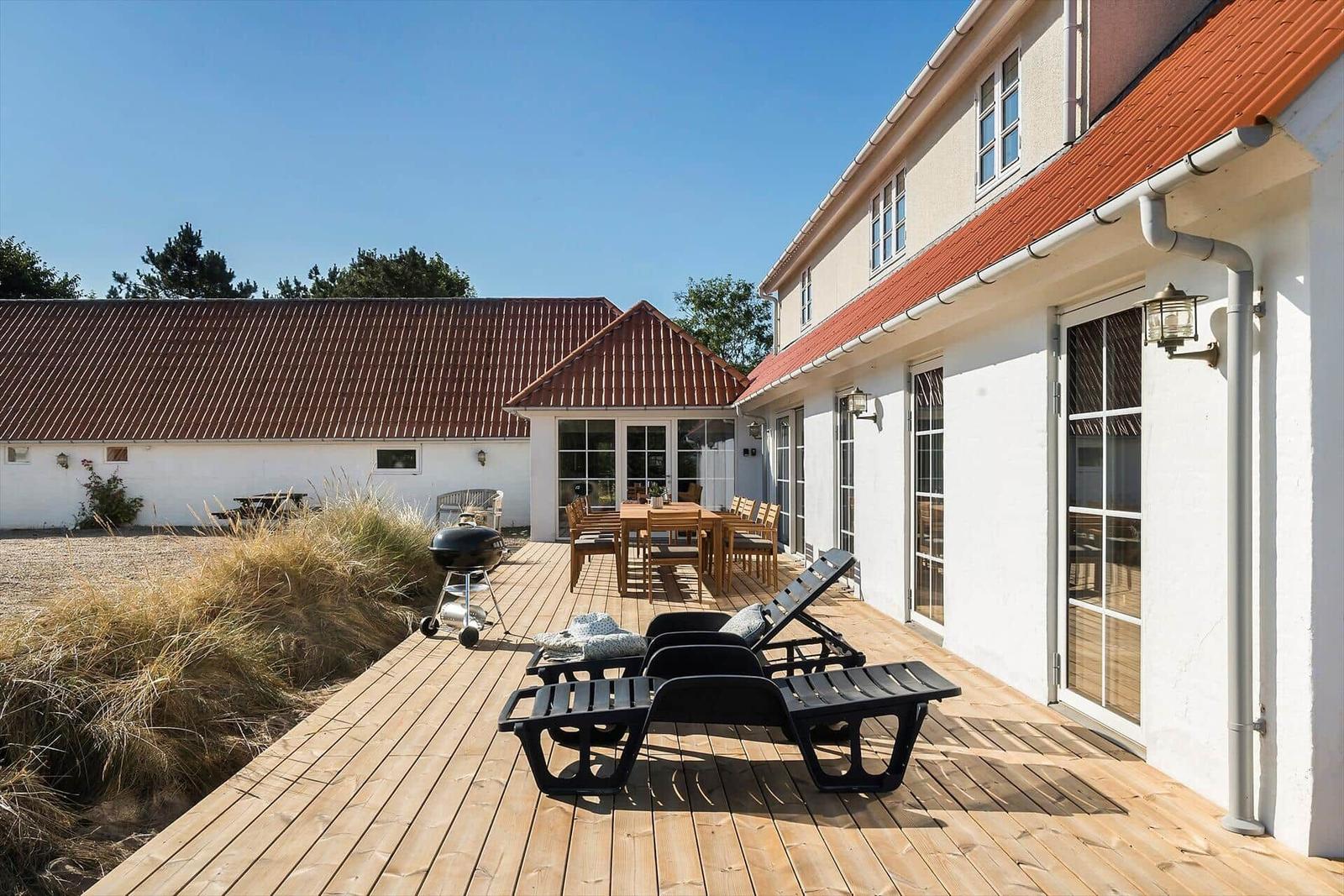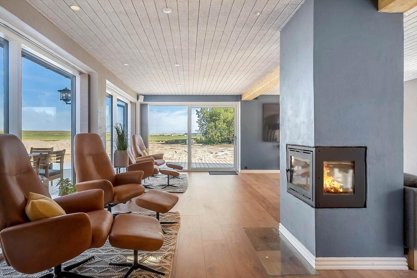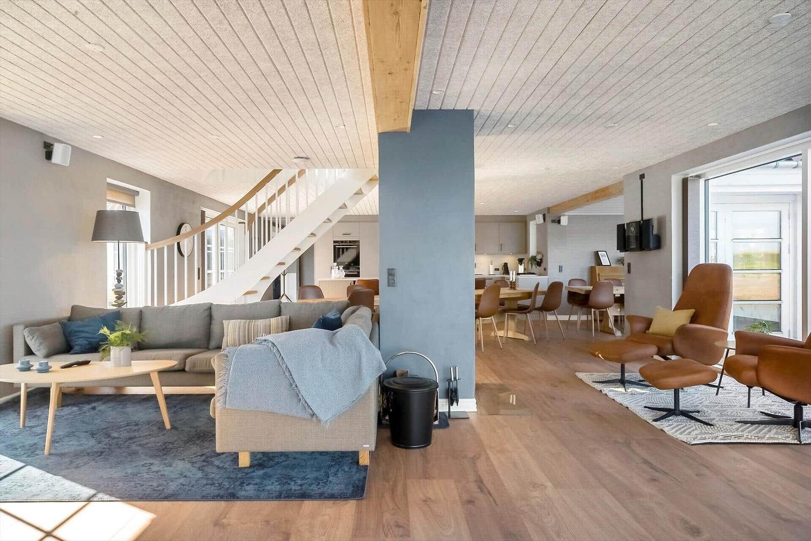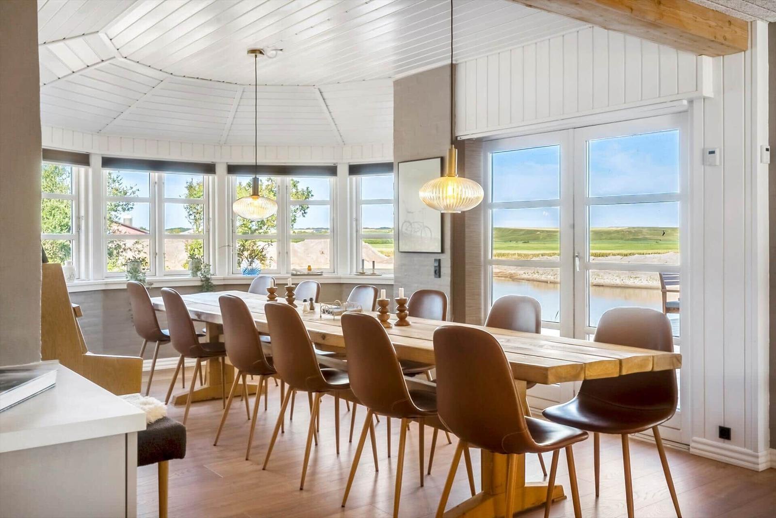 Diese Ferienwohnung in ländlicher Idylle nahe Vejlby Klit bietet einen großzügigen Raum für bis zu 17 Personen und 1 Kind. Mit 370 m² Wohnfläche und sieben Schlafräumen, darunter vier im Obergeschoss, wird genügend Platz für Entspannung und Geselligkeit geboten. Die moderne Küche ist mit einem Geschirrspüler, Elektro-/Gasherd, Backofen, Mikrowelle, Kühlschrank, Kaffeemaschine und Gefriermöglichkeit ausgestattet. Wohn- und Esszimmer verfügen über eine Fußbodenheizung und einen Kaminofen, während Highspeed-WLAN und ein Smart-TV für Unterhaltung sorgen. Drei Duschbäder, ein Hauswirtschaftsraum, Waschmaschine und Wäschetrockner erhöhen den Komfort. Außen sorgen ein weitläufiger Garten mit Teich und Terrassen für Erholung. Die Lage ermöglicht den schnellen Zugang zu den Stränden der Nordsee und zu Freizeitaktivitäten in der Umgebung.