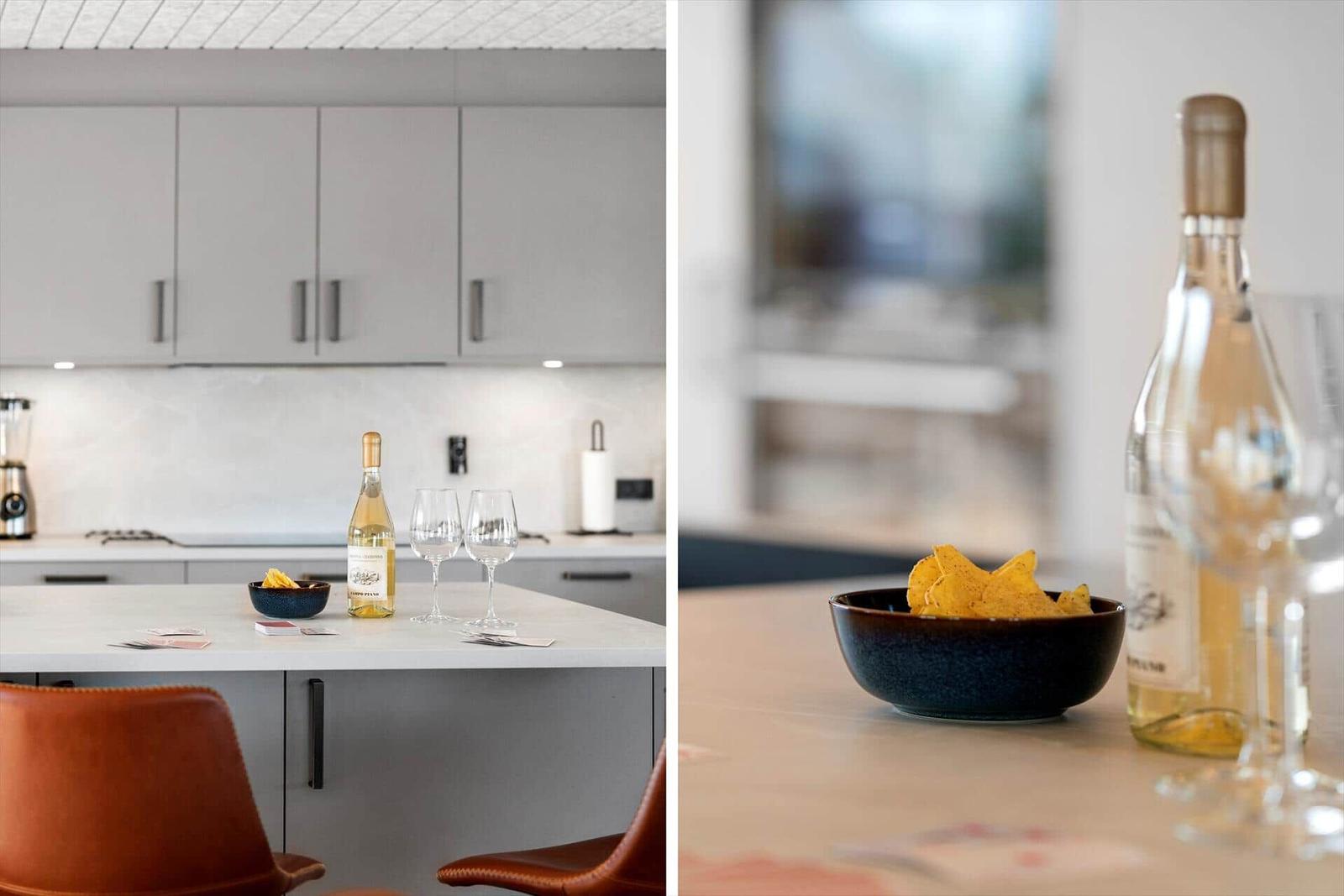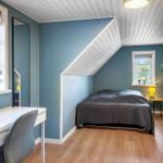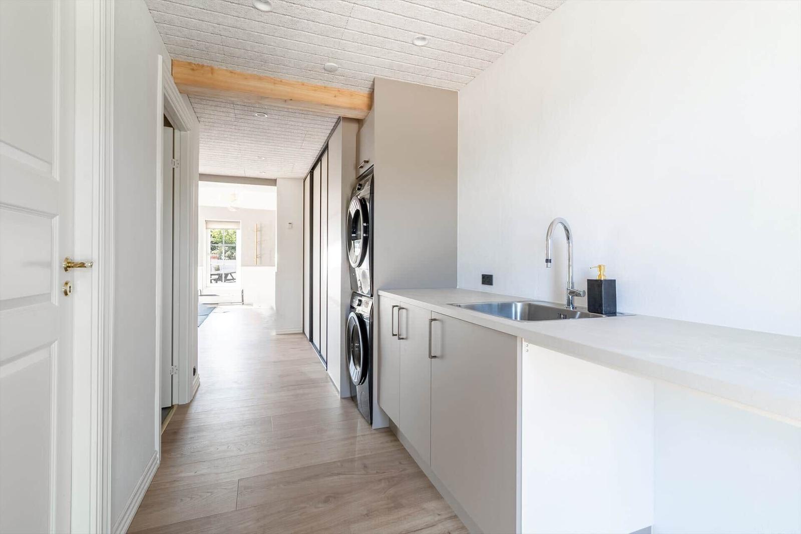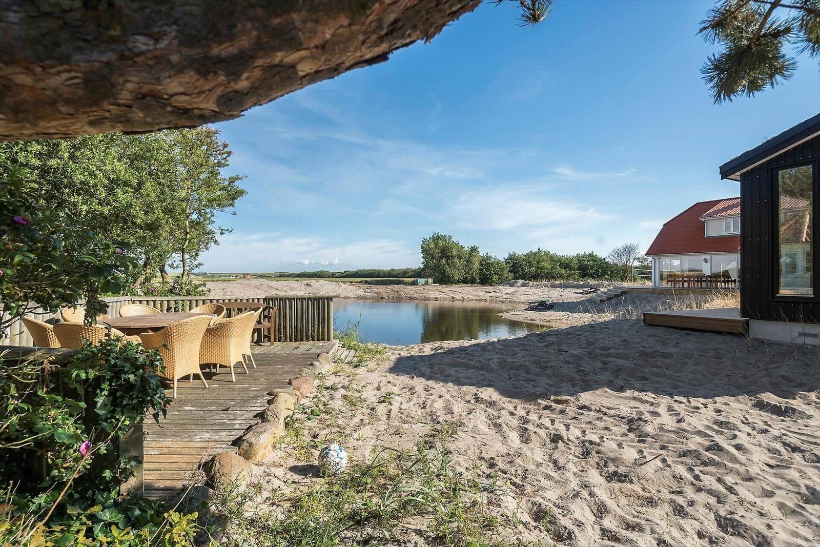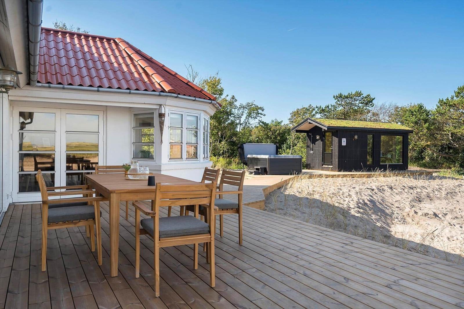 Diese Ferienwohnung in ländlicher Idylle nahe Vejlby Klit bietet einen großzügigen Raum für bis zu 17 Personen und 1 Kind. Mit 370 m² Wohnfläche und sieben Schlafräumen, darunter vier im Obergeschoss, wird genügend Platz für Entspannung und Geselligkeit geboten. Die moderne Küche ist mit einem Geschirrspüler, Elektro-/Gasherd, Backofen, Mikrowelle, Kühlschrank, Kaffeemaschine und Gefriermöglichkeit ausgestattet. Wohn- und Esszimmer verfügen über eine Fußbodenheizung und einen Kaminofen, während Highspeed-WLAN und ein Smart-TV für Unterhaltung sorgen. Drei Duschbäder, ein Hauswirtschaftsraum, Waschmaschine und Wäschetrockner erhöhen den Komfort. Außen sorgen ein weitläufiger Garten mit Teich und Terrassen für Erholung. Die Lage ermöglicht den schnellen Zugang zu den Stränden der Nordsee und zu Freizeitaktivitäten in der Umgebung.