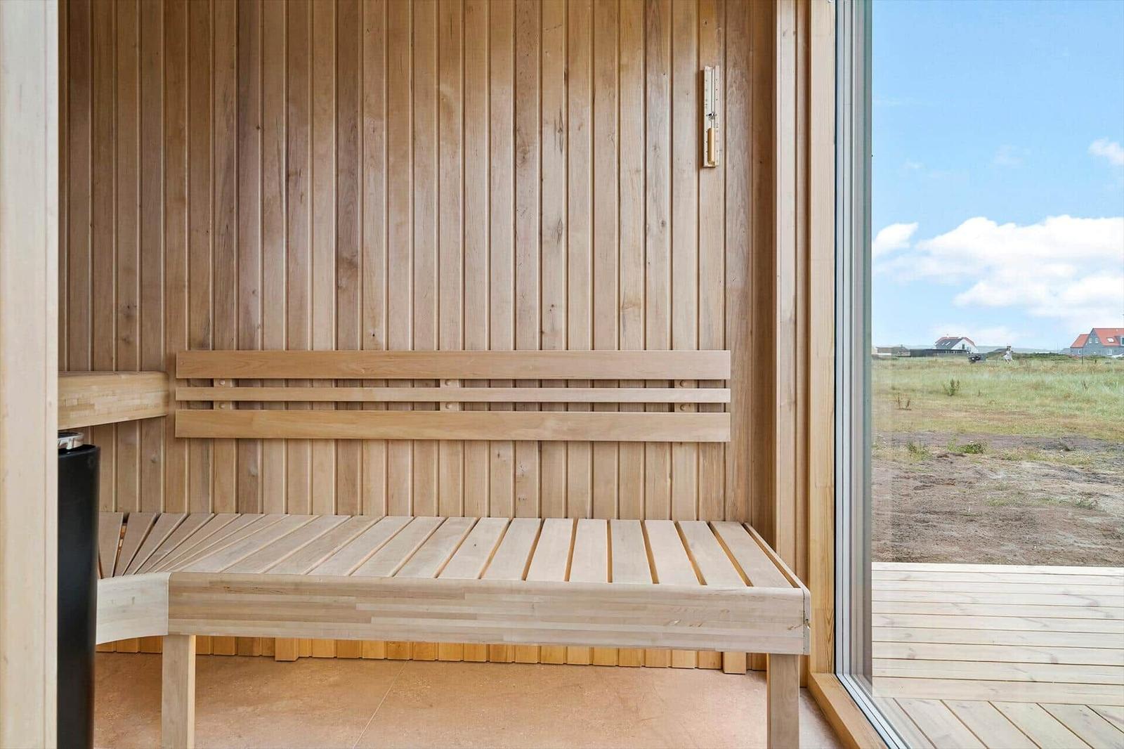 Das lichtdurchflutete Wohnzimmer mit Smart-TV und Fußbodenheizung sorgt für behagliche Stunden. Beide Badezimmer sind funktional gestaltet und eines verfügt über eine entspannende Badewanne. Zur weiteren Ausstattung gehören Waschmaschine, Wäschetrockner und ein energieeffizientes Heizsystem. WLAN steht zur Verfügung, während es nur 80 Meter bis zum nächsten Strand und 600 Meter bis zur nächsten Einkaufsmöglichkeit sind. Auf dem 1.600 m² großen Grundstück findet sich zudem ein Trampolin für zusätzlichen Spaß.