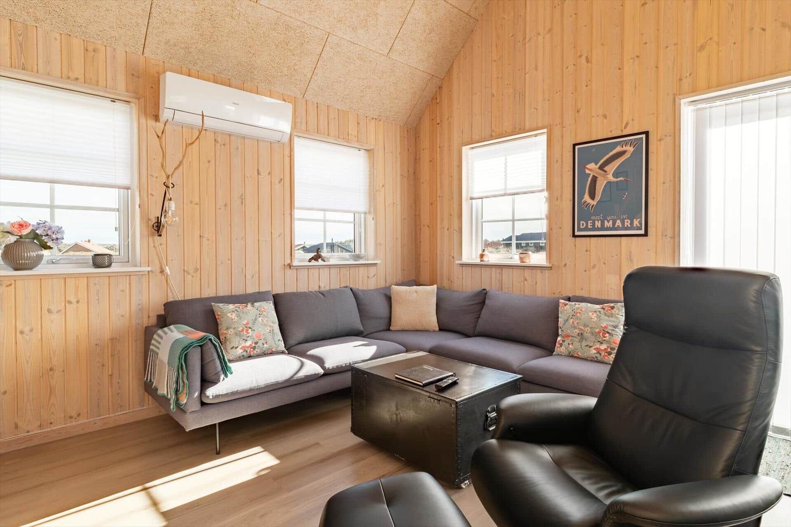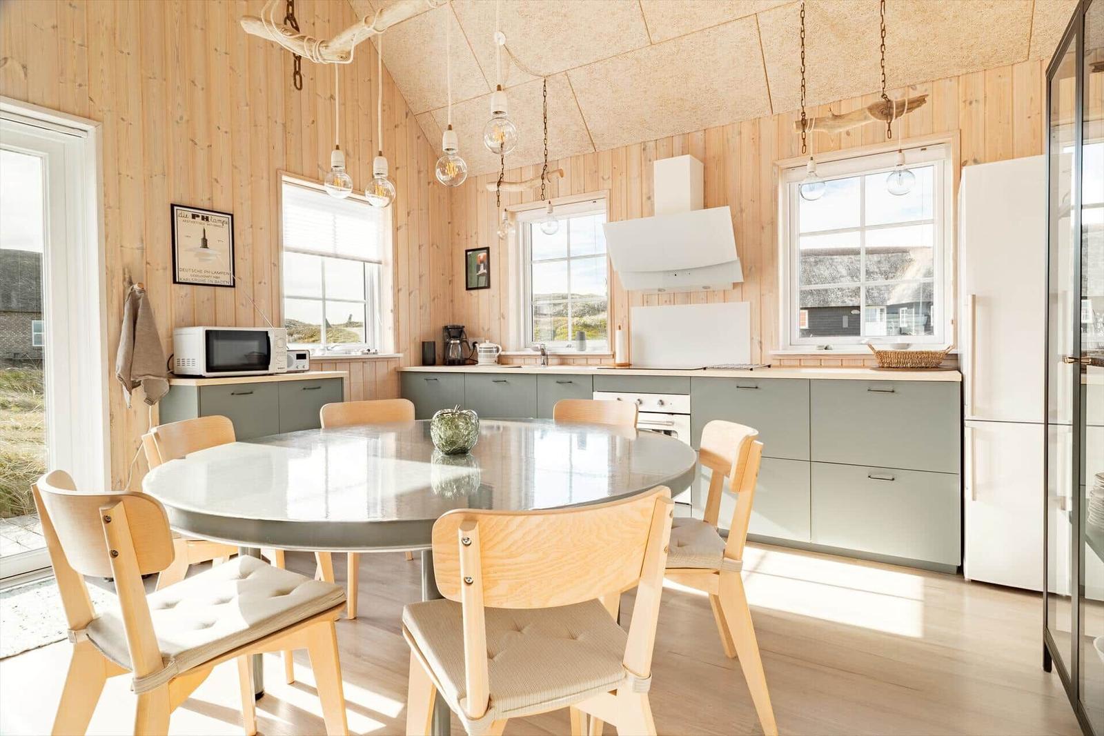 In der Ferienwohnung in Vejlby Klit Strand, Westjütland, finden bis zu 6 Erwachsene und 2 Kinder einen idealen Rückzugsort. Die 96 m² große Unterkunft präsentiert sich mit einer gemütlichen Einrichtung und vier komfortablen Schlafzimmern, die mit Doppelbetten ausgestattet sind. Ein offenes Wohnschlafzimmer lädt zum Verweilen ein. Die moderne offene Küche bietet eine vollumfängliche Ausstattung, einschließlich Geschirrspüler, Elektro-/Gasherd, Backofen, Mikrowelle, Kühlschrank und Kaffeemaschine. Zudem stehen ein Wäschetrockner und eine Waschmaschine zur Verfügung. Das Duschbad sorgt für zusätzlichen Komfort. Zur technischen Ausstattung gehören WLAN-Internetzugang und ein Smart-TV mit einer Vielzahl an Sendern, darunter nationale und internationale Programme. Fußbodenheizung und energieeffizientes Heizen sorgen für angenehme Temperaturen. Der Strand ist nur 150 Meter entfernt, während Einkaufsmöglichkeiten in nur 950 Metern erreicht werden.