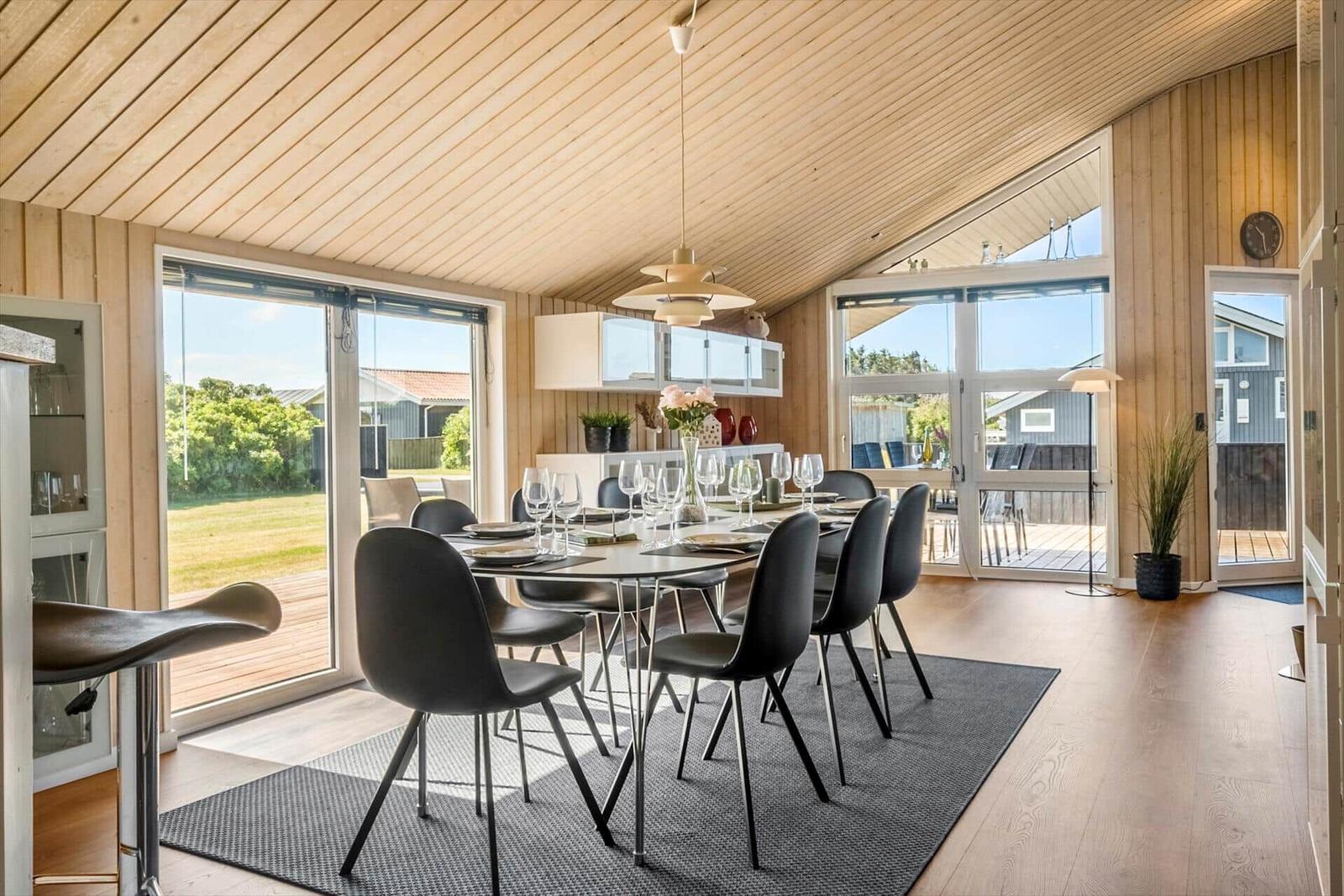 Die Ferienwohnung in Vejlby Klit Strand, Westjütland, bietet Platz für bis zu 10 Erwachsene und 2 Haustiere. Mit einer großzügigen Fläche von 109 m² und einem 812 m² großen Grundstück überzeugt sie durch eine gemütliche Einrichtung, die einen einladenden Rahmen für entspannte Tage schafft. Die offene Küche ist mit modernen Geräten wie einem Geschirrspüler, Elektro-/Gasherd, Backofen, Mikrowelle und Kühlschrank ausgestattet. Für die Kaffeeliebhaber steht eine Kaffeemaschine bereit. In den 4 Schlafzimmern, die 2 Doppel- und 8 Einzelbetten bieten, finden Gäste komfortable Rückzugsorte. Die beiden Badezimmer verfügen über ein praktisches Duschbad. Weitere Annehmlichkeiten umfassen WLAN, TV mit einer Vielzahl deutscher Sender, Fußbodenheizung sowie einen Wäschebereich mit Waschmaschine und Wäschetrockner. Die Nähe zum Strand (650 m) und Einkaufsmöglichkeiten (250 m) rundet das Angebot ab.