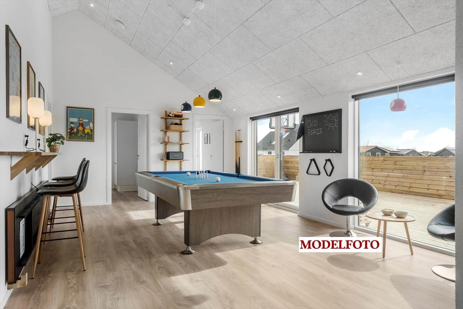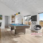Die Ferienwohnung in Vejlby Klit Strand, Westjütland, bietet Platz für bis zu 12 Erwachsene und 2 Haustiere. Auf 179 m² erstrecken sich 6 gemütliche Schlafzimmer, ausgestattet mit 6 Doppelbetten, sowie 3 moderne Badezimmer. Der offene Wohn- und Essbereich lädt mit seiner charmanten Einrichtung und einem Kamin zum Entspannen ein. Die gut ausgestattete offene Küche verfügt über einen Geschirrspüler, Elektro- und Gasherd, Backofen, Mikrowelle, Kühlschrank, Kaffeemaschine und Gefriermöglichkeit. Zudem sorgen WLAN und Smart-TV für Unterhaltung. Eine Fußbodenheizung garantiert auch an kalten Tagen ein behagliches Wohnklima. Für zusätzlichen Komfort stehen Waschmaschine, Wäschetrockner und eine Spielekonsole zur Verfügung. Im Außenbereich befinden sich ein großer Garten mit Schaukel und Trampolin, nur 200 Meter von der Küste entfernt, sowie Einkaufsmöglichkeiten in unmittelbarer Nähe. Entspannung bietet die hauseigene Sauna.