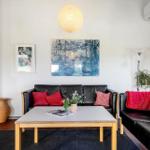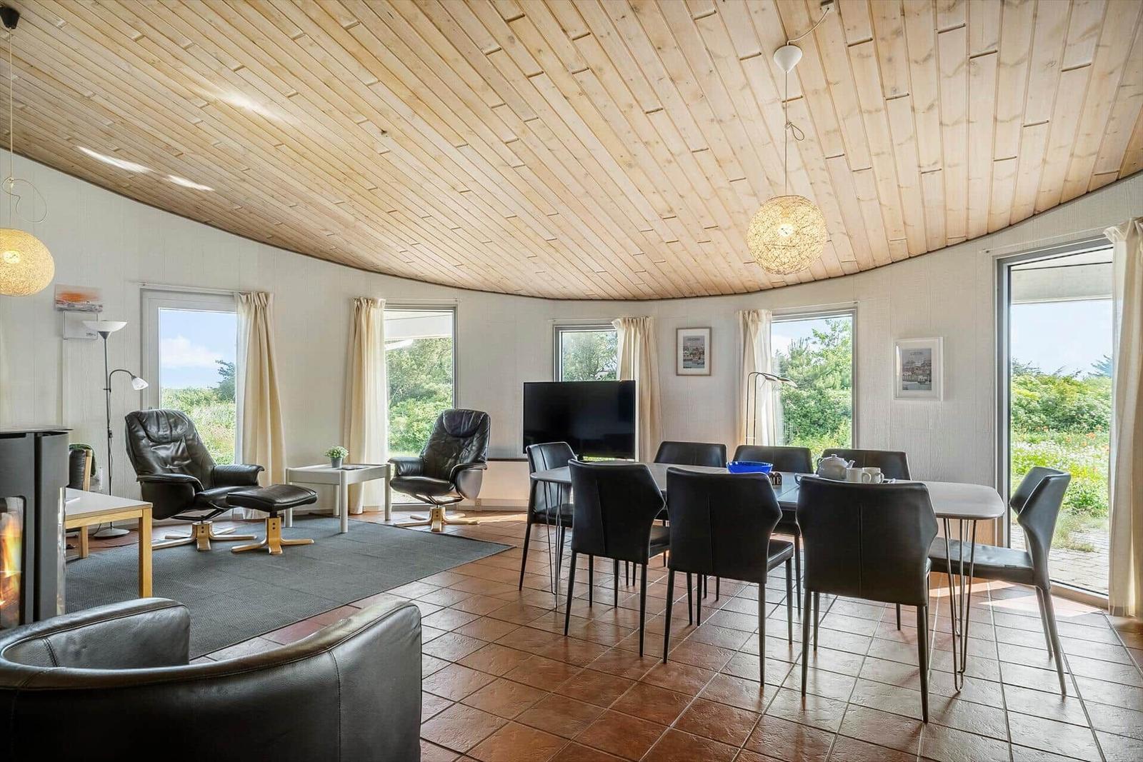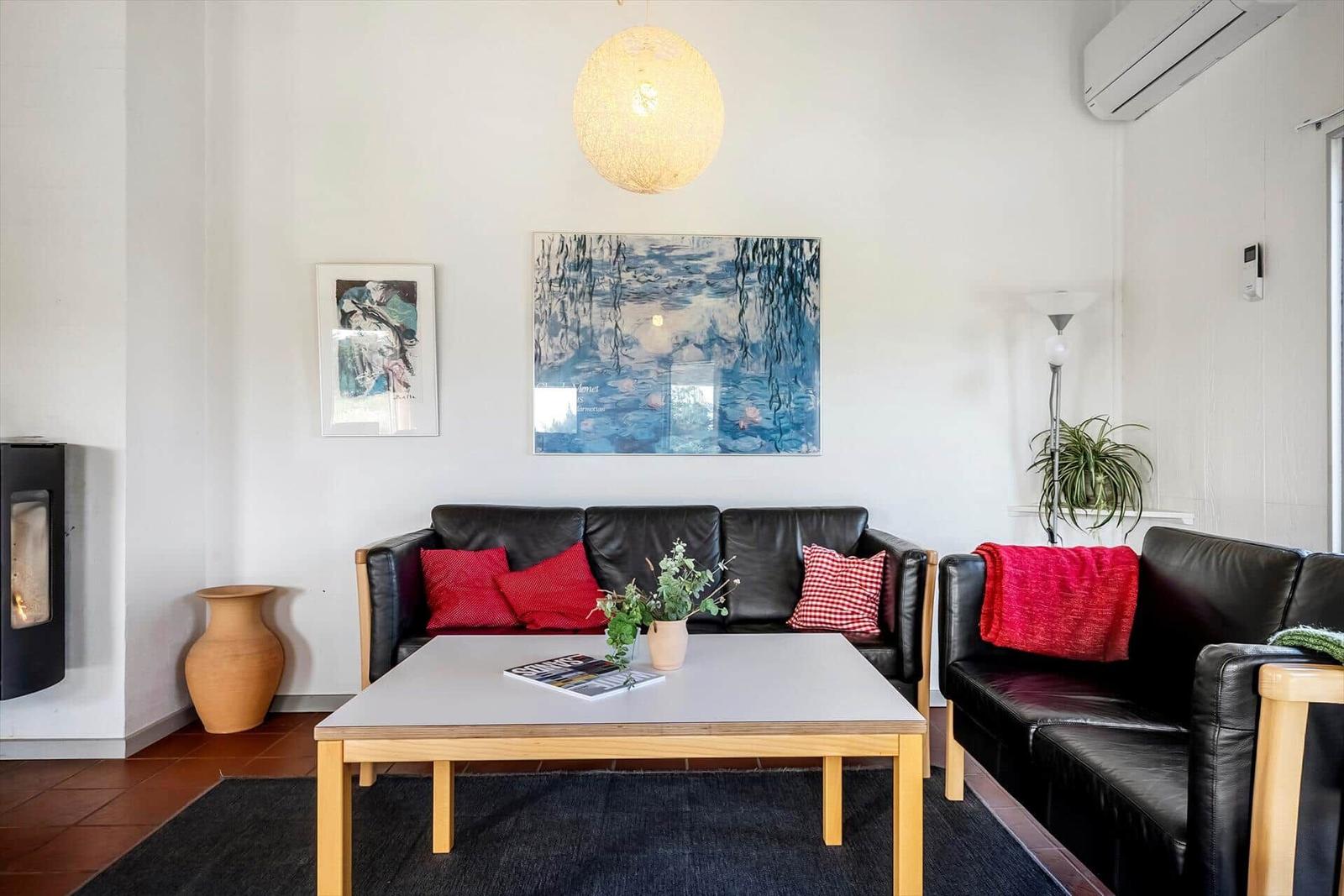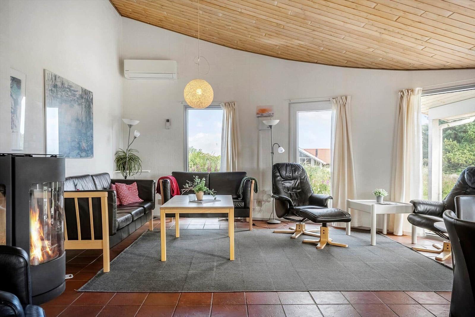 Die Ferienwohnung, entworfen von einem Architekten, bietet ein modernes und komfortables Ambiente für bis zu acht Urlauber. Der großzügige offene Wohnbereich überzeugt durch zahlreiche Fenster, die viel Tageslicht einlassen, sowie eine elegante Polstersitzgarnitur und einen Smart-TV mit kostenlosen DR-Kanälen. Die gut ausgestattete offene Küche verfügt über einen Elektro-/Gasherd mit vier glaskeramischen Kochfeldern, Geschirrspüler, Kühlschrank, Mikrowelle, Kaffeemaschine und Wasserkocher, sodass die Zubereitung gemeinsamer Mahlzeiten mühelos gelingt. Zudem sorgt Fußbodenheizung für angenehme Temperaturen. Die Ferienwohnung bietet außerdem vier geräumige Schlafzimmer, ein Duschbad mit Sauna und Whirlpool, sowie praktische Annehmlichkeiten wie Waschmaschine und Wäschetrockner. Eine große Südterrasse lädt zu entspannten Stunden im Freien ein. Kostenfreies WLAN rundet das Angebot ab und ermöglicht jederzeit den Kontakt zur Außenwelt.