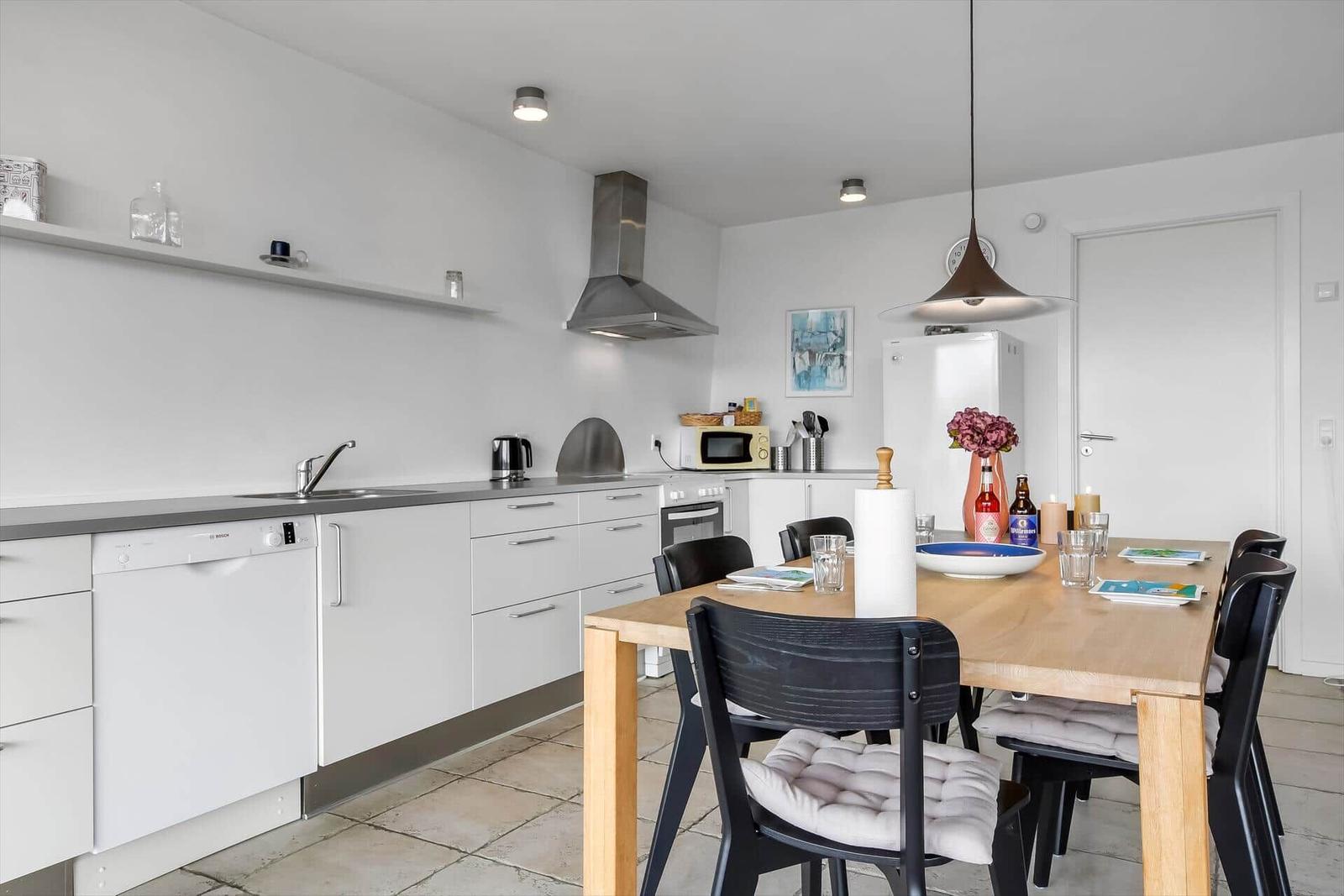 Die Ferienwohnung in Bork Havn, Westjütland, bietet Platz für bis zu 6 Erwachsene und überzeugt durch ihre großzügige Raumaufteilung. Auf 105 m² stehen drei Schlafzimmer zur Verfügung, ausgestattet mit zwei Doppelbetten und zwei Einzelbetten sowie zwei Kinderbetten. Die beiden modernen Duschbäder garantieren Komfort für die gesamte Familie.