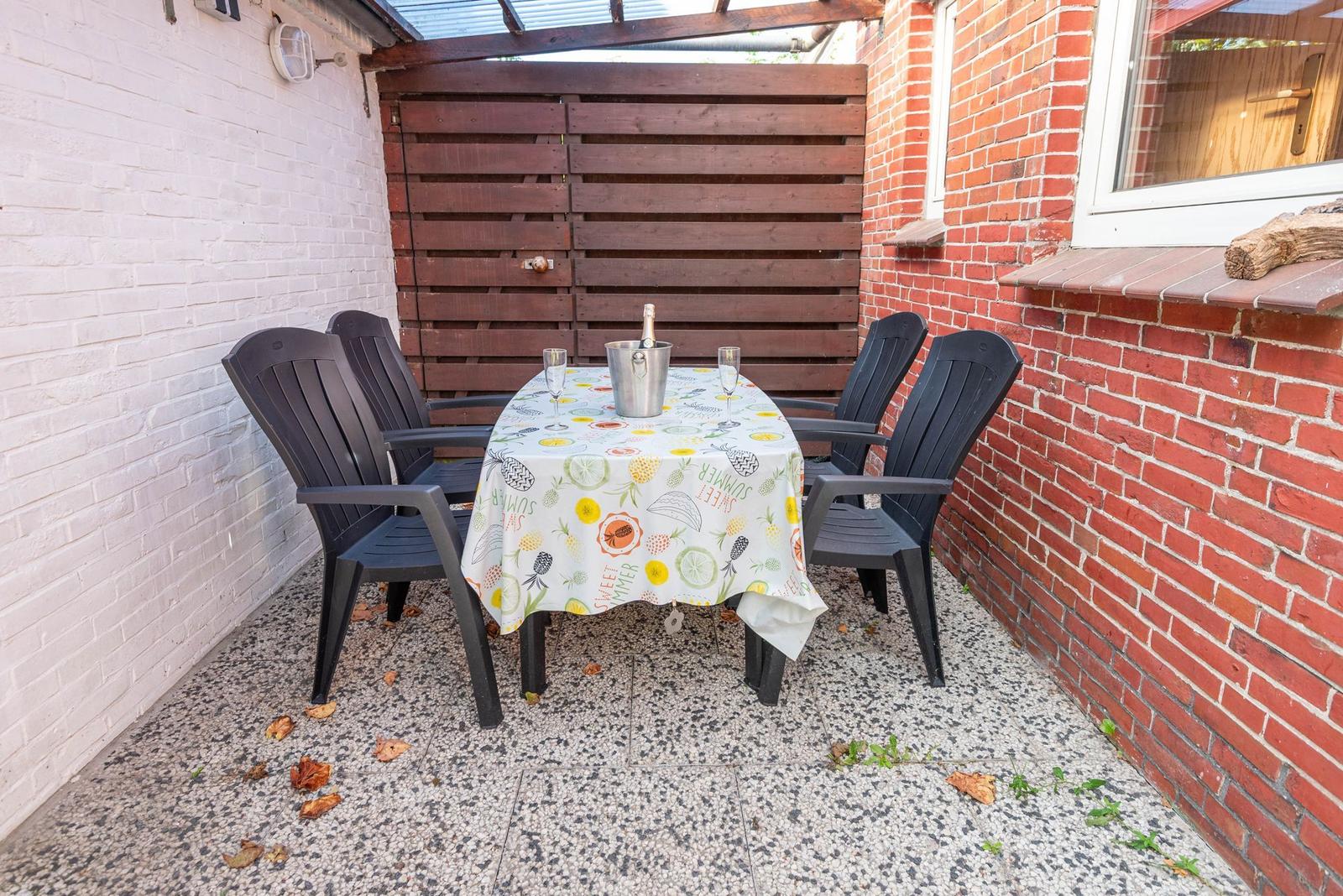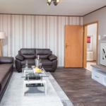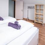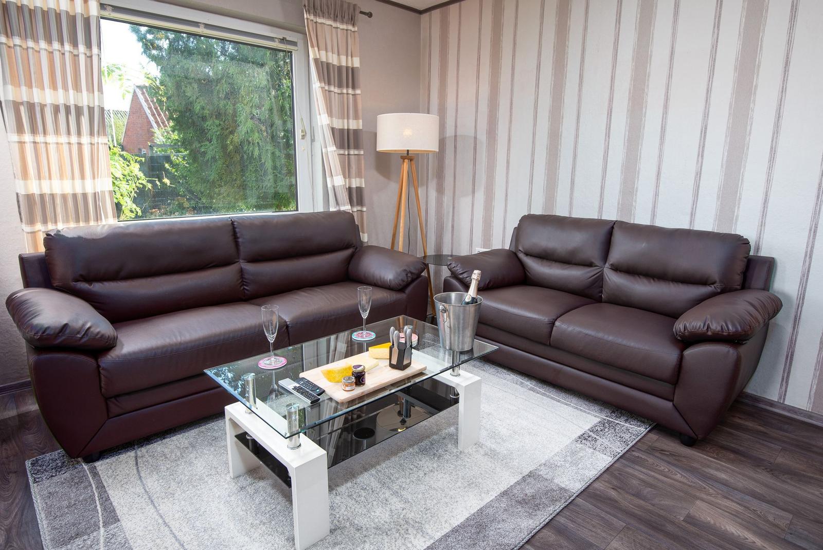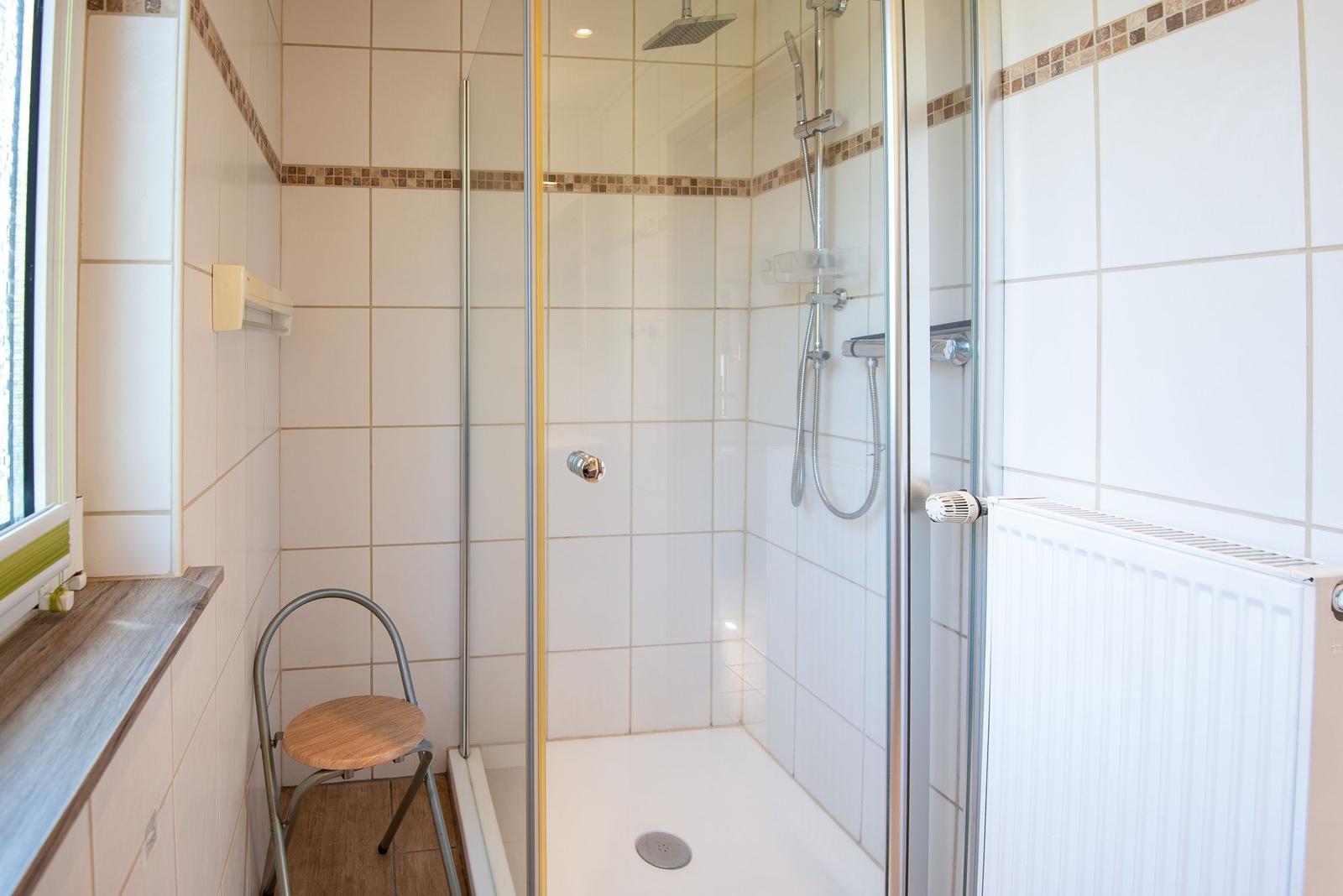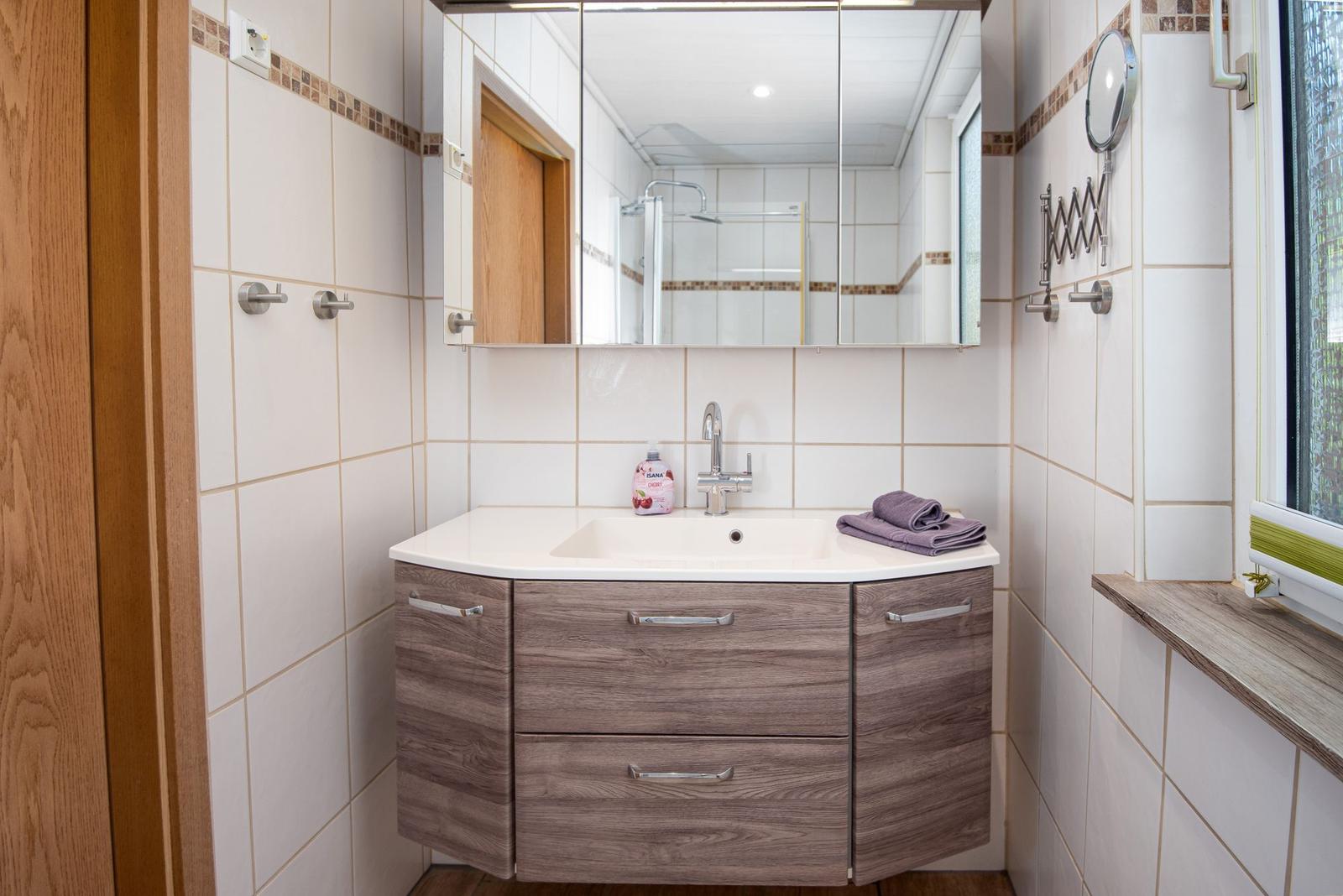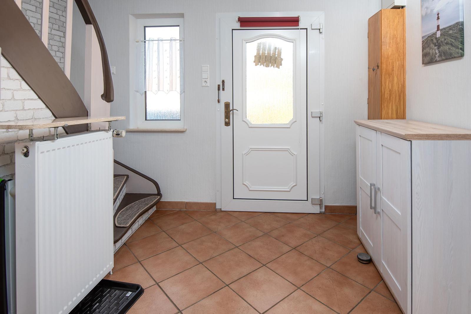 Die Ferienwohnung bietet eine moderne und komfortable Ausstattung, ideal für entspannte Urlaube. Sie verfügt über zwei lichtdurchflutete Schlafzimmer, die jeweils mit einem Doppelbett ausgestattet sind. Ein helles Badezimmer mit Fenster sorgt für frische Luft und ist mit einer Dusche sowie einem Gäste-WC ausgestattet.