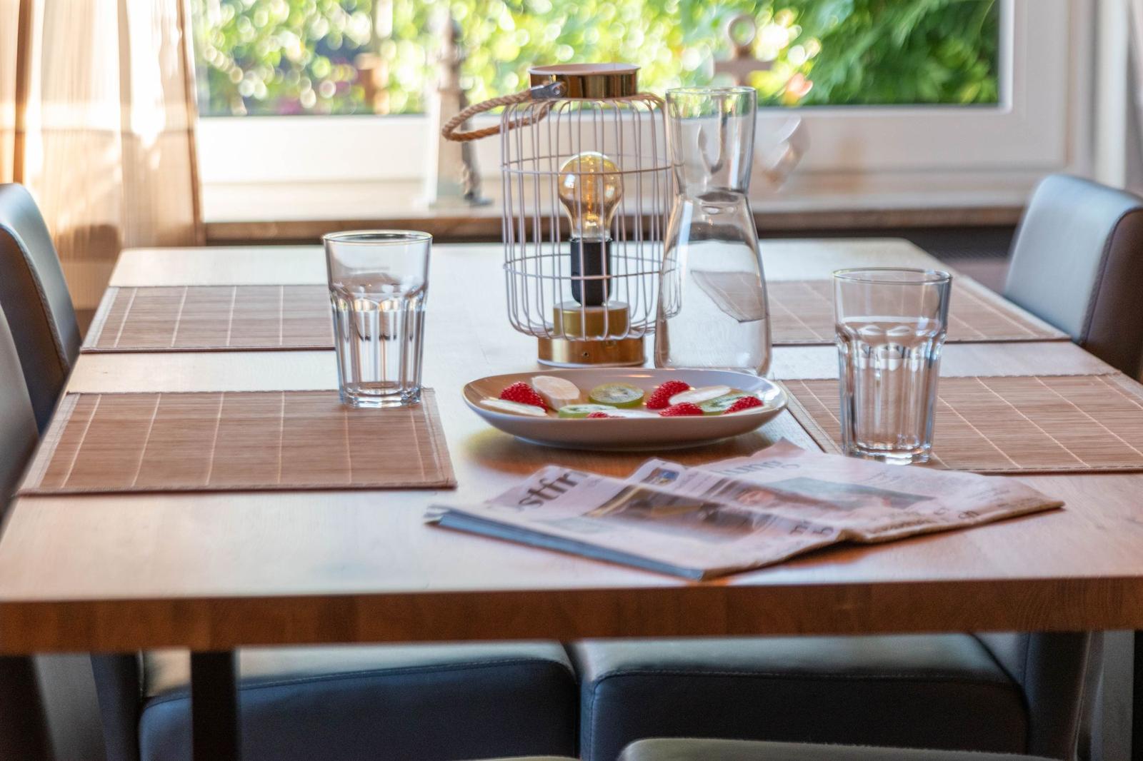 Die Wohnung ist allergikergeeignet und verfügt zusätzlich über Kindersicherungen für Steckdosen. Ein Parkplatz ist ebenfalls vorhanden. Küchenutensilien wie Geschirr, Besteck, Gewürze (Starterset) und Geschirrtücher sind inklusive, sodass sofort losgelegt werden kann.