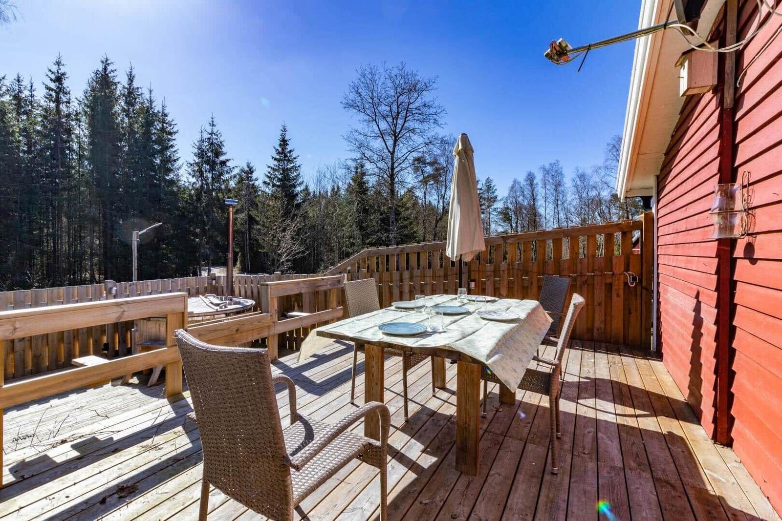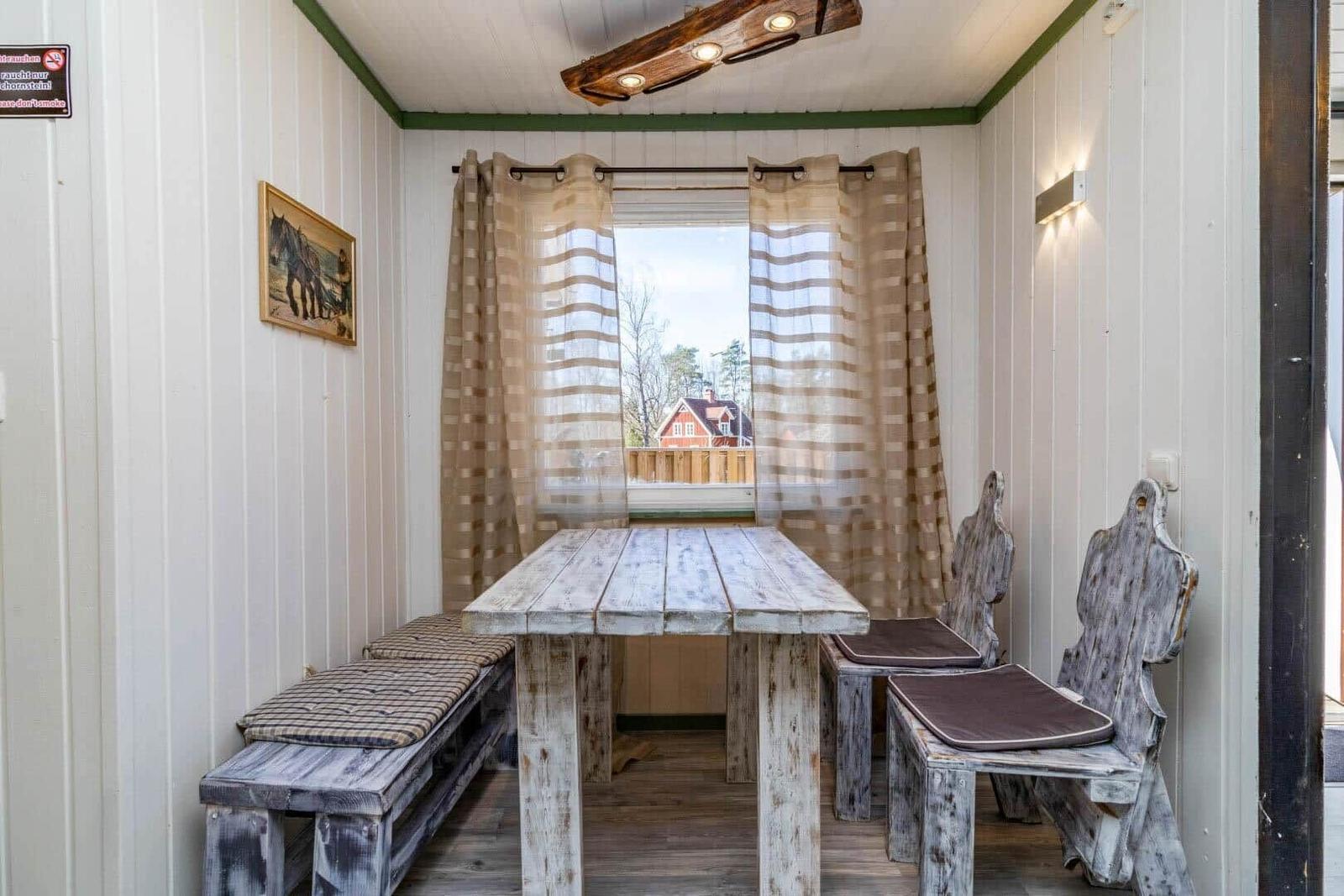Das Ferienhaus in Karlskrona, Süd-Schweden, bietet einen ansprechenden Außenbereich, der ideal für Erholung und Entspannung ist. Umgeben von einem großzügigen Grundstück von 3.716 m², haben Gäste Zugang zu einem gemeinschaftlich nutzbaren Bereich, der genügend Raum für Aktivitäten im Freien bietet. Die Unterkunft liegt lediglich 900 Meter vom nächsten Strand entfernt, was perfekten Zugang zu erholsamen Strandtagen ermöglicht. Zudem sind Einkaufsmöglichkeiten in nur 7.000 Metern Entfernung erreichbar, wodurch die Lage sowohl ruhig als auch praktisch ist. Der Außenbereich lädt dazu ein, die Natur Schwedens zu genießen und Platz für Aktivitäten im Freien zu bieten, ideal geeignet für bis zu 3 Erwachsene und ihre Haustiere. Die gemütliche Einrichtung des Hauses und der Außenbereich schaffen eine harmonische und einladende Atmosphäre für einen unvergesslichen Aufenthalt.