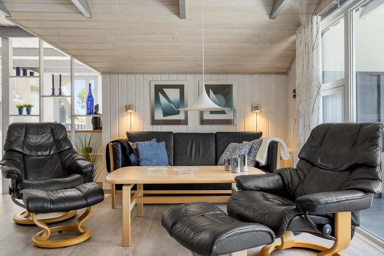 Für Unterhaltung sorgt ein Smart-TV mit YouSee TV Pakke. Das Zuhause ist optimal isoliert und verfügt über eine Fußbodenheizung sowie energieeffizientes Heizen. Zum Entspannen lädt die eigene Sauna ein. WLAN-Internet steht ebenfalls zur Verfügung. Der feinsandige Strand liegt nur 250 Meter entfernt und Einkaufsmöglichkeiten sind in kurzer Distanz von 3.100 Metern zu erreichen.
