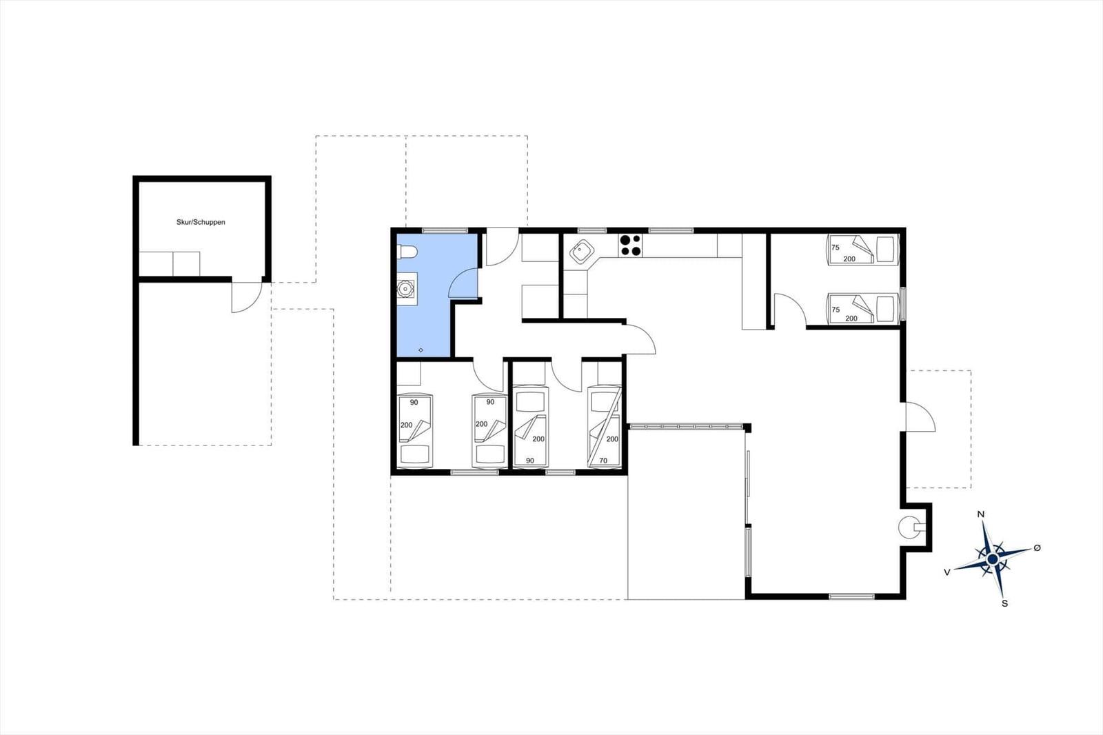 Dieses charmante Ferienhaus in Fyrmarken 10 vereint traditionelle Sommerhausatmosphäre mit modernem Komfort. Die offenen Räume laden zum Entspannen ein, während das Wohnzimmer mit Blick auf den Leuchtturm Lyngvig und einem gemütlichen Kaminofen für behagliche Stunden sorgt. Die offene Küche ist ausgestattet mit einem Geschirrspüler, Elektro-/Gasherd, Mikrowelle, Kühlschrank, Gefriermöglichkeit und einer Kaffeemaschine – ideal für gesellige Kochabende. Die Fußbodenheizung sorgt für wohlige Wärme, während der Smart-TV für Unterhaltung sorgt. Mit drei Schlafzimmern und sieben Einzelbetten bietet das Haus ausreichend Platz für bis zu sieben Personen und drei Hunde. Das Duschbad ist modern gestaltet. Auf dem großen Naturgrundstück lässt sich die Natur genießen, beim Frühstück oder abendlichen Familienessen auf der Terrasse. E-Auto-Ladung ist möglich. Dieses Ferienhaus ist der perfekte Rückzugsort für einen unvergesslichen Urlaub.