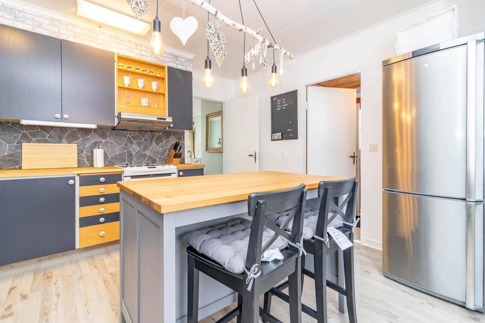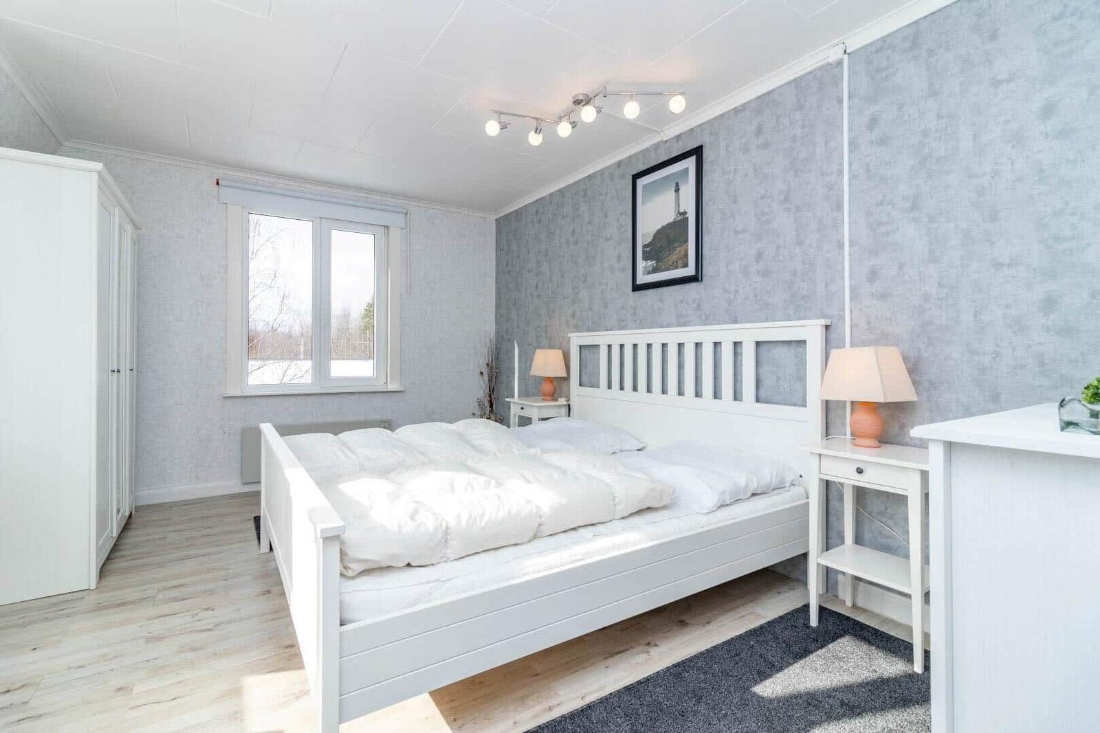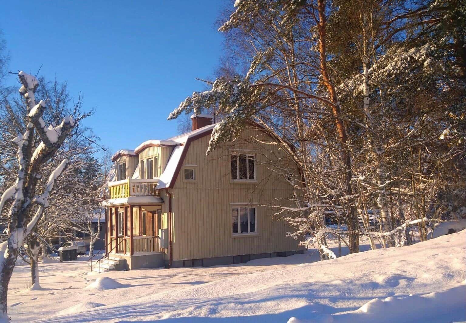 Das Ferienhaus in Järnforsen bietet auf etwa 120 m² Platz für bis zu 6 Personen. Es verfügt über drei gemütliche Schlafzimmer, jedes mit einem Doppelbett. Im Erdgeschoss befindet sich ein einladendes Wohnzimmer mit Eckcouch, TV mit deutschen Programmen und Kamin, sowie ein Esszimmer mit Esstisch und Pelletofen. Die voll ausgestattete Küche bietet einen Herd mit 4 Ceranplatten, Backofen, Spülmaschine und Kaffeemaschine. Zwei Bäder sind vorhanden: eines mit Dusche im Erdgeschoss und eines mit Badewanne im Obergeschoss. Ein Kellerraum mit Waschmaschine sowie Elektroheizungen sorgen für zusätzlichen Komfort. Das Internet umfasst 5 GB, weitere 5 GB sind gegen Aufpreis erhältlich. Haustiere und Rauchen sind nicht erlaubt. Optionale Handtücher und Bettwäsche können dazu gebucht werden.