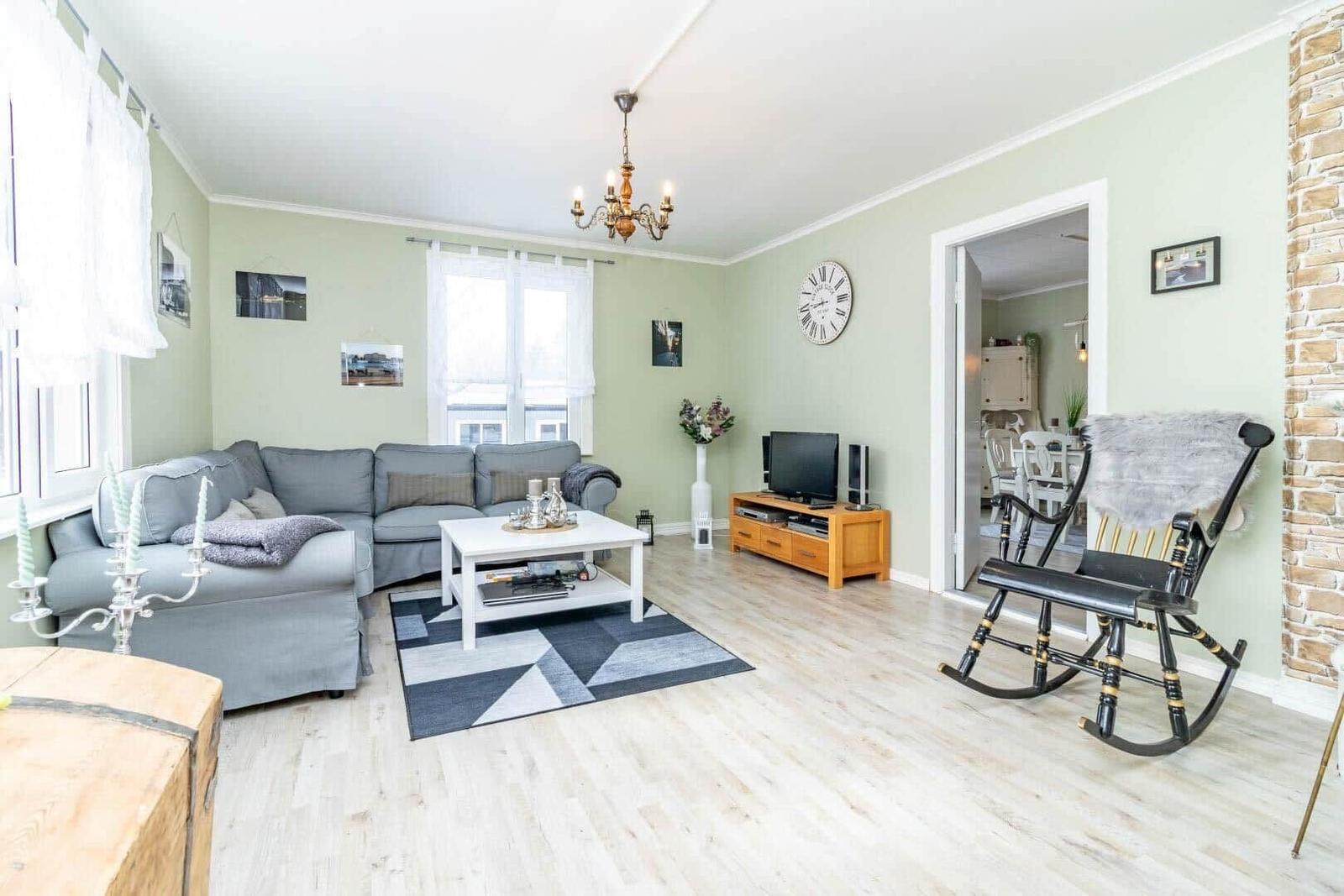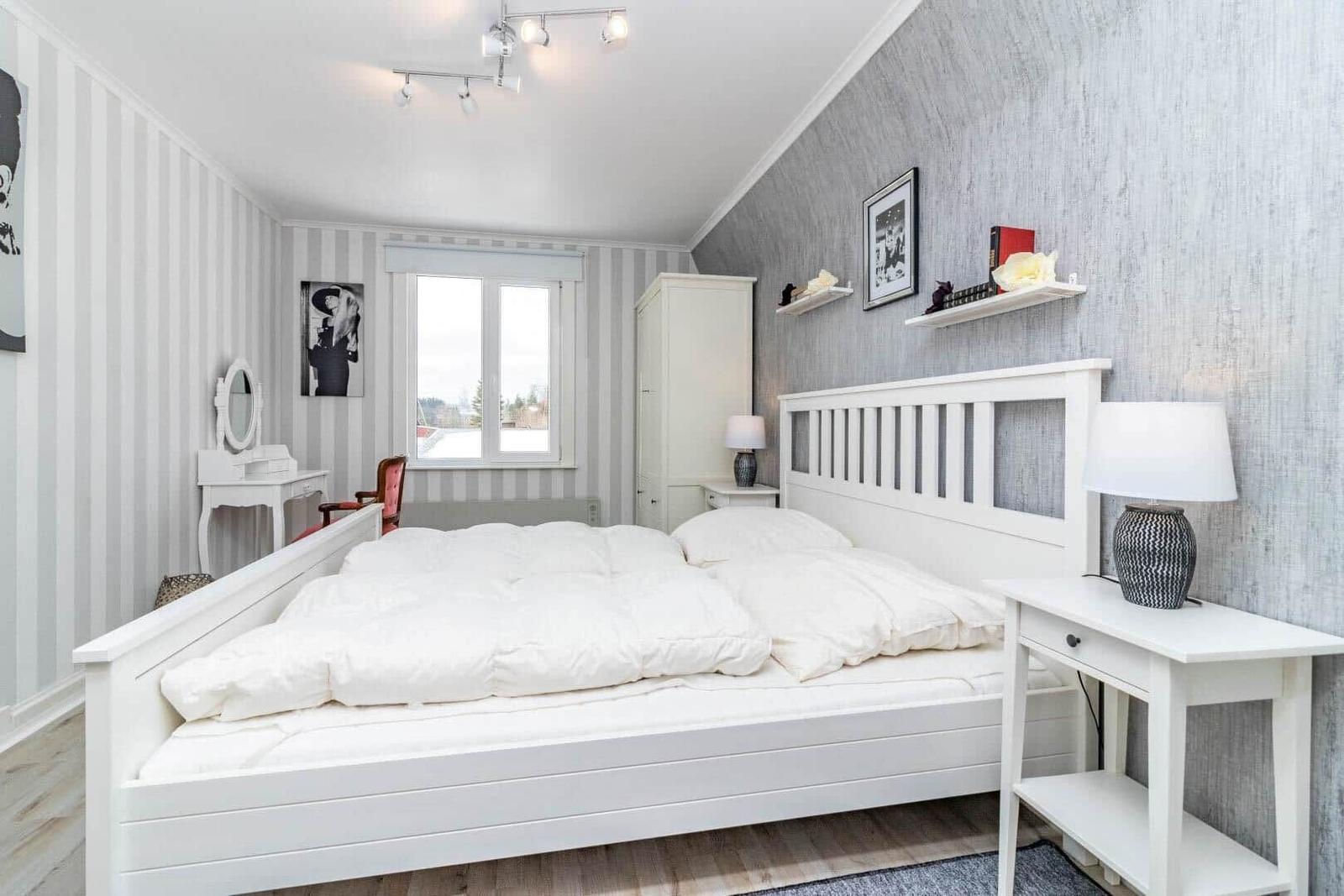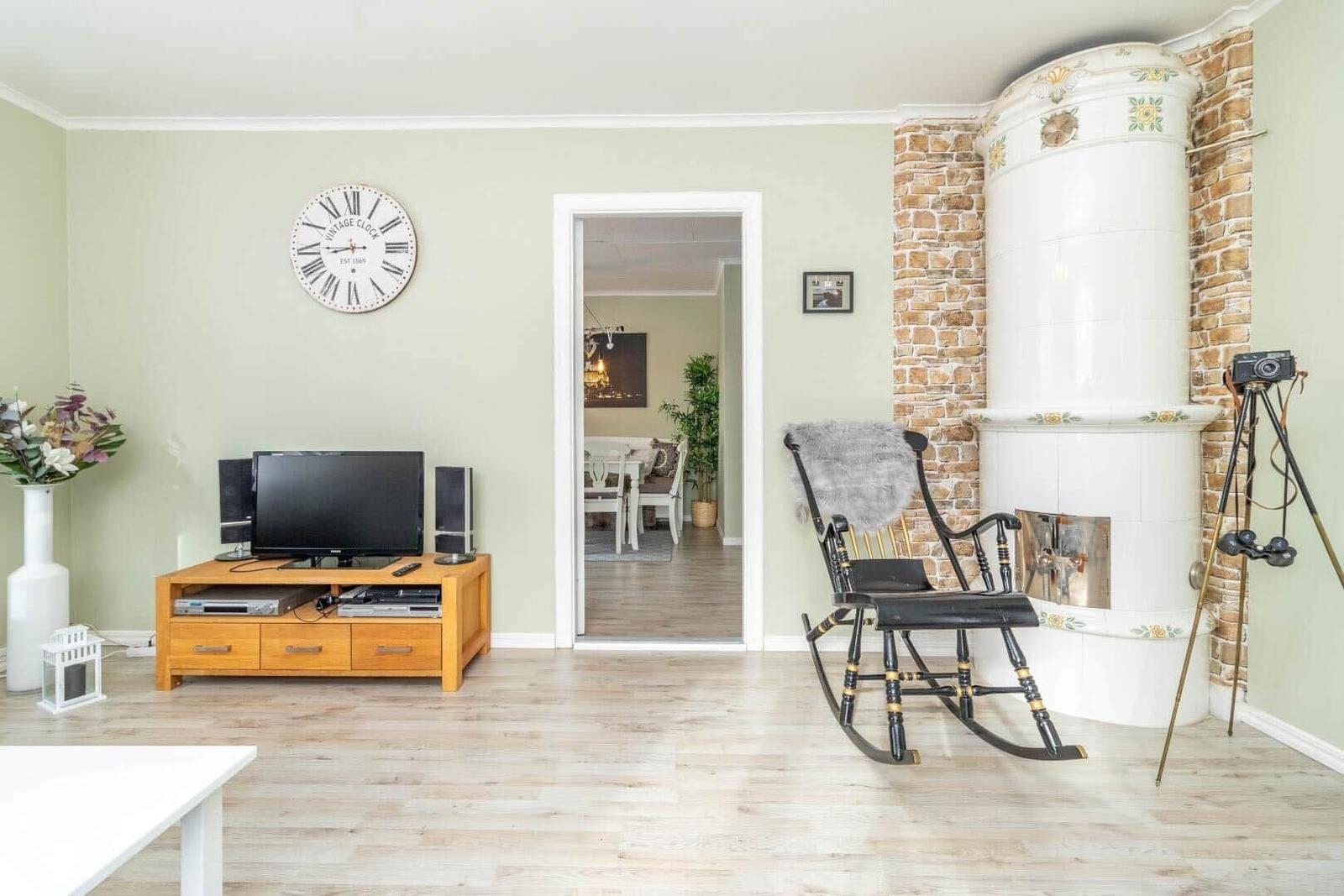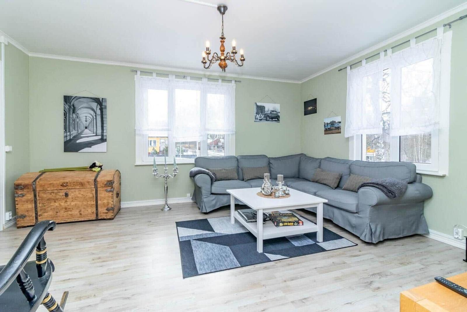 Das Ferienhaus in Järnforsen bietet auf etwa 120 m² Platz für bis zu 6 Personen. Es verfügt über drei gemütliche Schlafzimmer, jedes mit einem Doppelbett. Im Erdgeschoss befindet sich ein einladendes Wohnzimmer mit Eckcouch, TV mit deutschen Programmen und Kamin, sowie ein Esszimmer mit Esstisch und Pelletofen. Die voll ausgestattete Küche bietet einen Herd mit 4 Ceranplatten, Backofen, Spülmaschine und Kaffeemaschine. Zwei Bäder sind vorhanden: eines mit Dusche im Erdgeschoss und eines mit Badewanne im Obergeschoss. Ein Kellerraum mit Waschmaschine sowie Elektroheizungen sorgen für zusätzlichen Komfort. Das Internet umfasst 5 GB, weitere 5 GB sind gegen Aufpreis erhältlich. Haustiere und Rauchen sind nicht erlaubt. Optionale Handtücher und Bettwäsche können dazu gebucht werden.