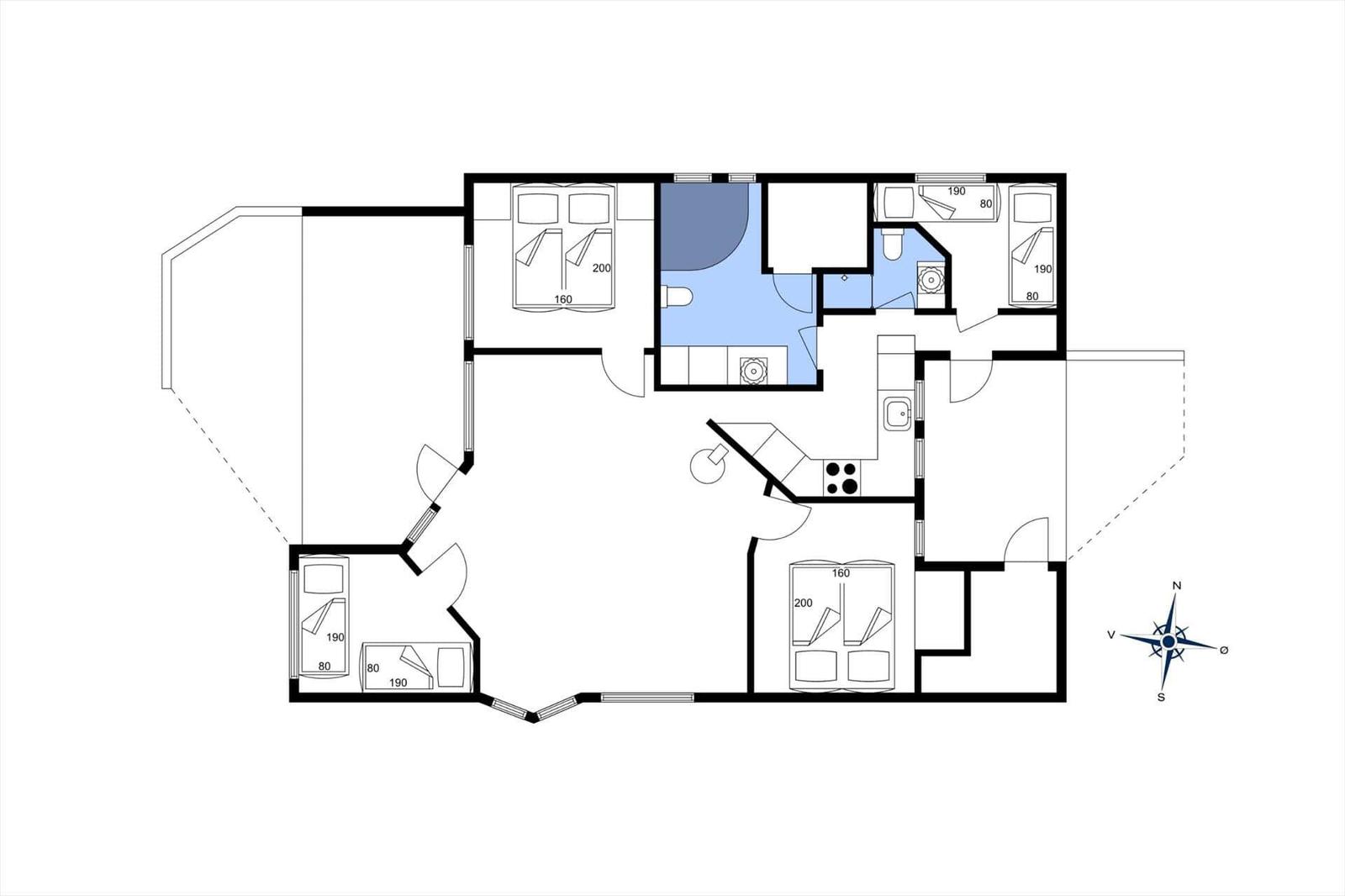 Die Ferienwohnung in Juelsminde, Ostjütland, bietet auf 87 m² Platz für bis zu 6 Erwachsene. Die Einrichtung besticht durch ihre Gemütlichkeit und umfasst eine komfortable Wohnlandschaft mit TV und einem Kamin. In den vier Schlafzimmern stehen zwei Doppelbetten und vier Einzelbetten zur Verfügung, ideal für Familien oder Gruppen.