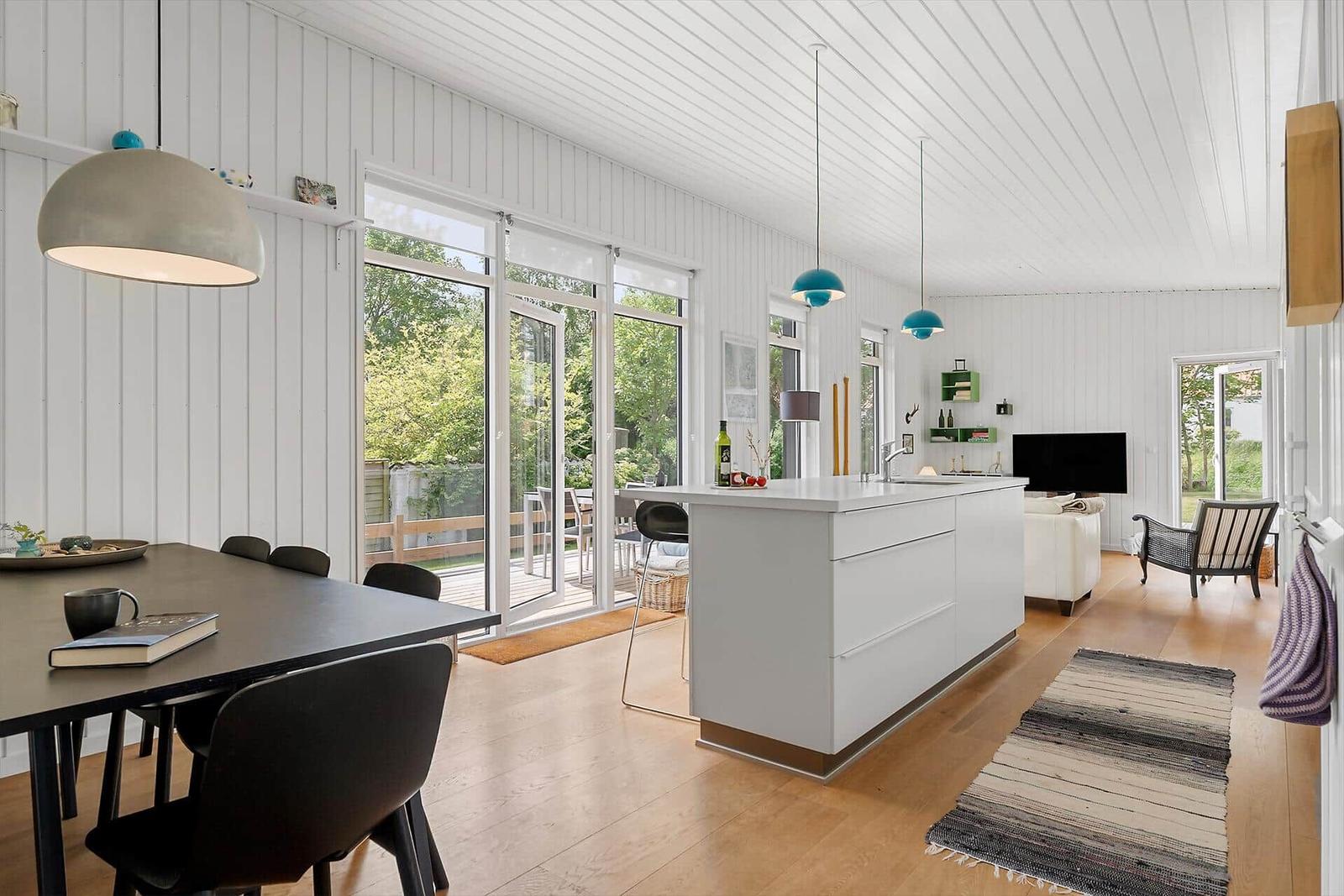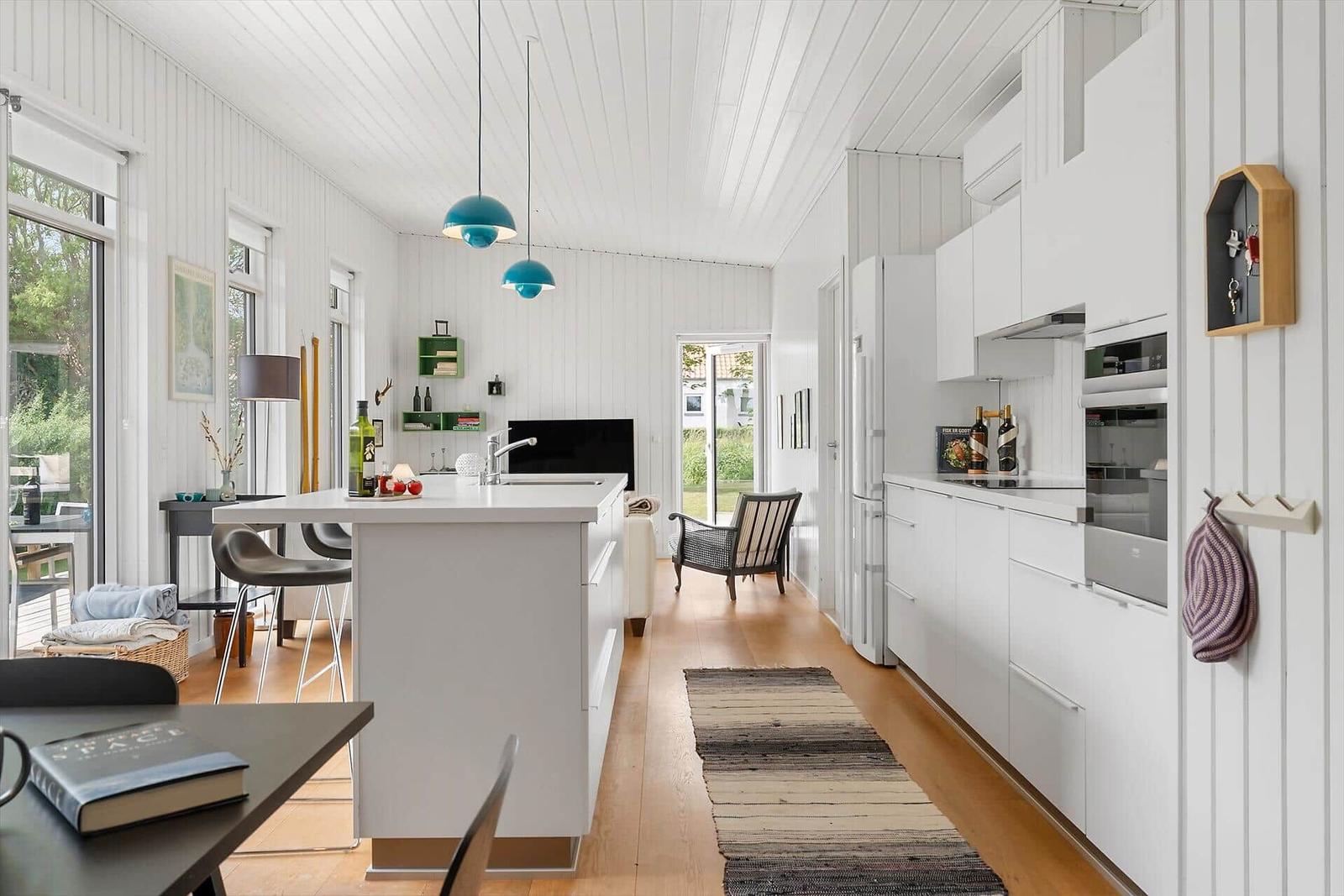 Die Ferienwohnung in Juelsminde, Østjylland, bietet auf 97 m² Platz für bis zu 6 Personen. Sie verfügt über drei gemütliche Schlafzimmer, jedes mit einem Doppelbett, sowie ein Wohnschlafzimmer, das zum Entspannen einlädt. Die offene Küche ist komplett ausgestattet mit einem Elektro-/Gasherd, Backofen, Geschirrspüler, Mikrowelle, Kühlschrank und einer Kaffeemaschine, was die Zubereitung von Mahlzeiten zum Vergnügen macht. Ein modernes Duschbad sorgt für zusätzlichen Komfort. Zu den Annehmlichkeiten zählen Internet mit WLAN, ein Smart-TV für unterhaltsame Abende, sowie eine Waschmaschine, ein Wäschetrockner und ein Wasserkocher. Die Fußbodenheizung garantiert behagliche Wärme. Nur 200 Meter trennen die Gäste von der nächsten Strandlage und 500 Meter von Einkaufsmöglichkeiten. Diese Ferienwohnung vereint gemütliches Ambiente mit praktischer Ausstattung auf einer großzügigen 800 m² großen Grundstück.