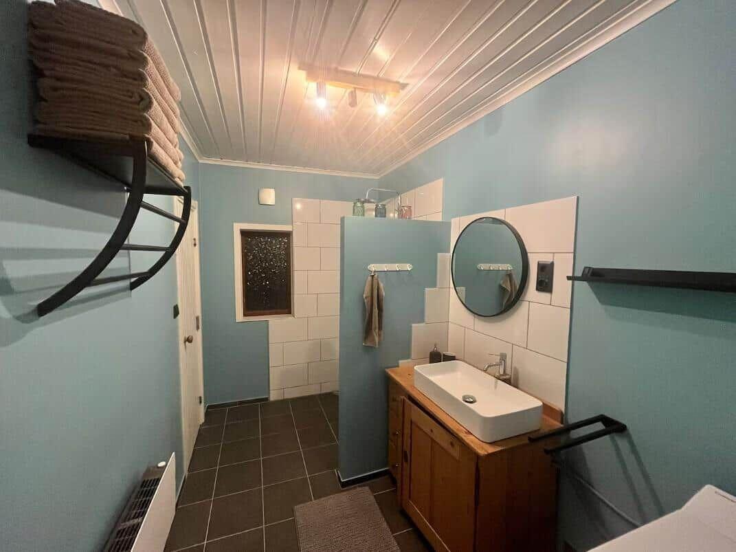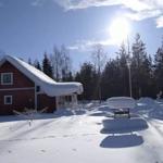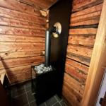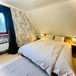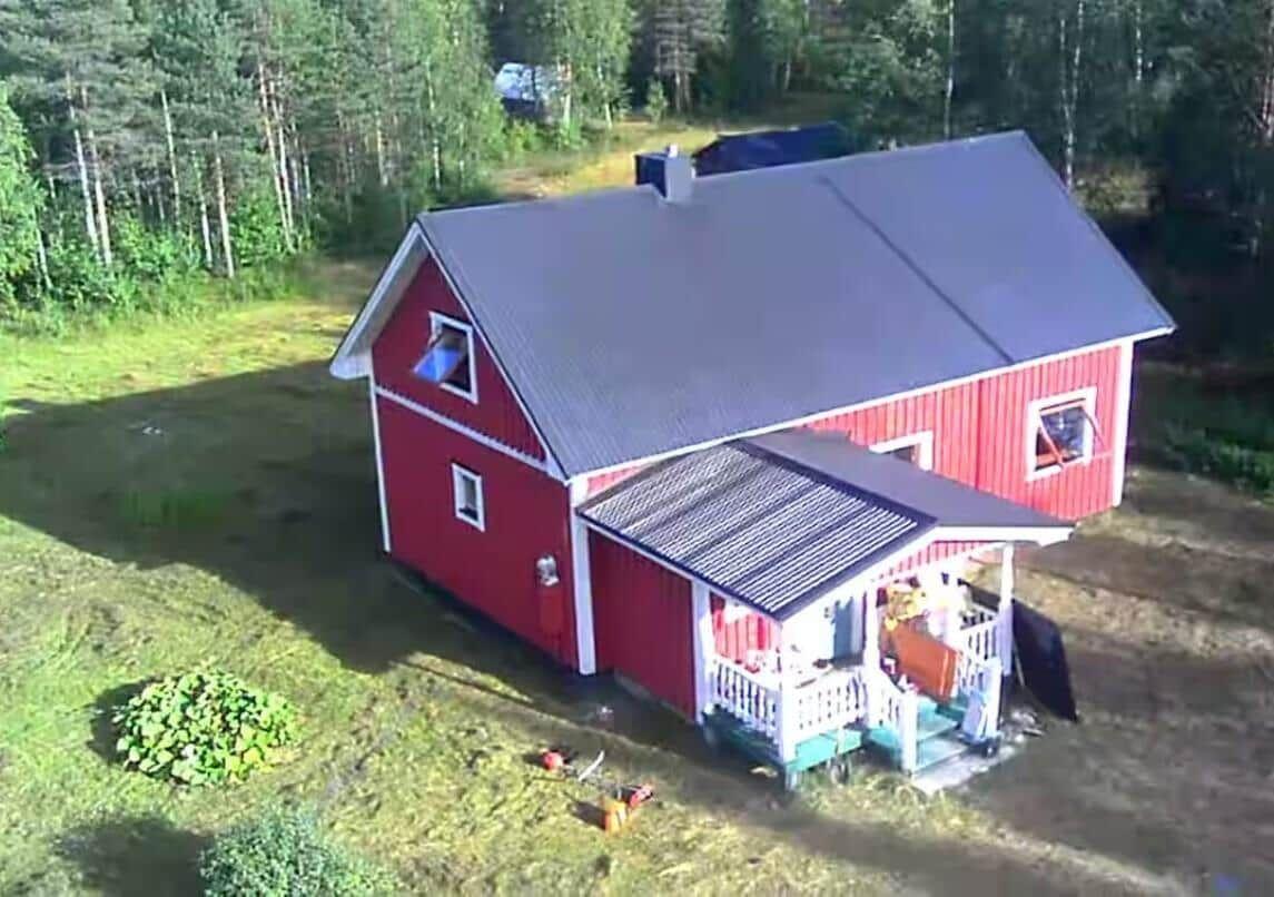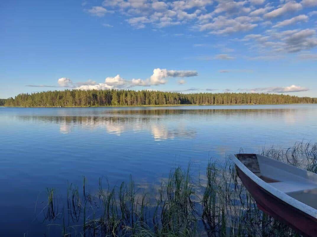 Das klassische rote Holzhaus aus dem Jahr 1940 bietet auf zwei Stockwerken eine Wohnfläche von 110 m², die Platz für bis zu 6 Gäste und 4 Haustiere bietet. Der Eingangsbereich führt in einen großzügigen Wohnraum mit offener Küche, ausgestattet mit einem E-Herd, Ofen, Kühlschrank, Geschirrspüler und weiteren Gerätschaften zur Zubereitung von Mahlzeiten. Ein Kaminofen sorgt für wohlige Wärme. Im Obergeschoss befinden sich zwei Schlafzimmer, eines mit einem Doppelbett und das andere mit zwei Doppelbetten. Das Badezimmer ist vollständig renoviert und verfügt über eine Dusche; das WC befindet sich separat. Eine Sauna mit Fenster zur Landschaft lädt zum Entspannen ein. Für anglerfreundliche Aktivitäten bieten sich ein Gefrierschrank, ein Ruderboot sowie ein Fischreinigungstisch an. Ein WLAN-Zugang ist ebenfalls vorhanden. Bettwäsche und Handtücher können gegen Aufpreis gemietet werden.