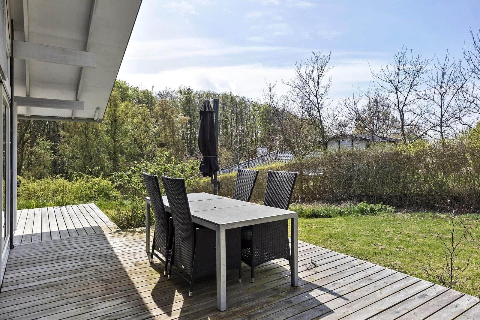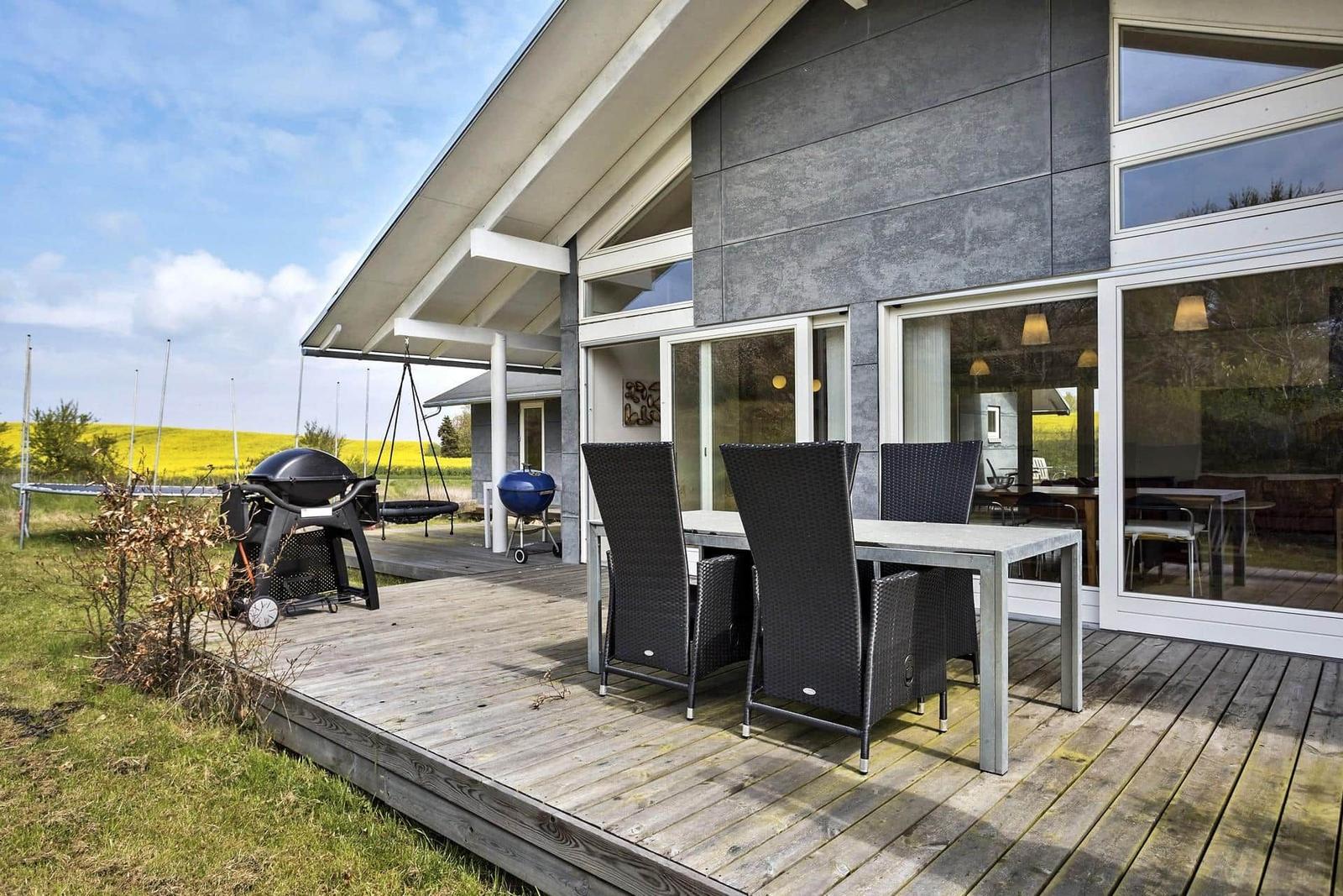Die Unterkunft bietet zwei Badezimmer, eines mit Dusche und eines mit Badewanne, sowie eine Fußbodenheizung für ein behagliches Ambiente. Für Unterhaltung stehen ein Smart-TV und eine Spielekonsole zur Verfügung. Wäschewaschen wird durch die Waschmaschine und den Wäschetrockner zum Kinderspiel. Ein Kinderhochstuhl sowie vier Kinderbetten machen die Unterkunft auch für Familien ideal. Der 1.416 m² große Garten mit Schaukel, Sandkasten und Trampolin lädt zum Spielen und Entspannen ein. Der Strand ist nur 300 Meter entfernt. Kostenloses WLAN ist ebenfalls vorhanden.