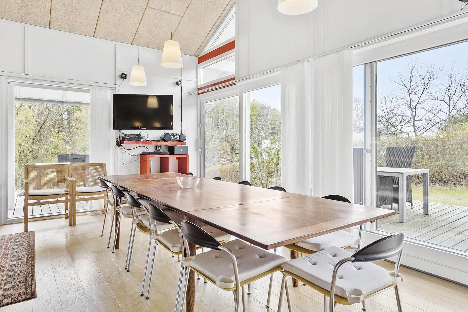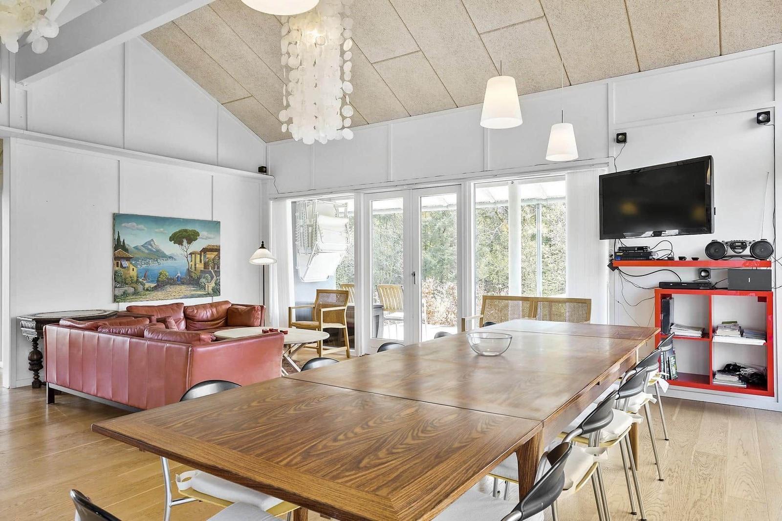 Die Ferienwohnung in Røsnæs, Südwestseeland, bietet auf 124 m² Platz für bis zu 8 Erwachsene. Die stilvolle Einrichtung mit einem gemütlichen Kamin schafft eine einladende Atmosphäre. Die gut ausgestattete Küche verfügt über einen Elektro-/Gasherd, einen Backofen, eine Mikrowelle, einen Kühlschrank und eine Geschirrspülmaschine, während eine Kaffeemaschine und ein Wasserkocher für zusätzlichen Komfort sorgen.