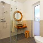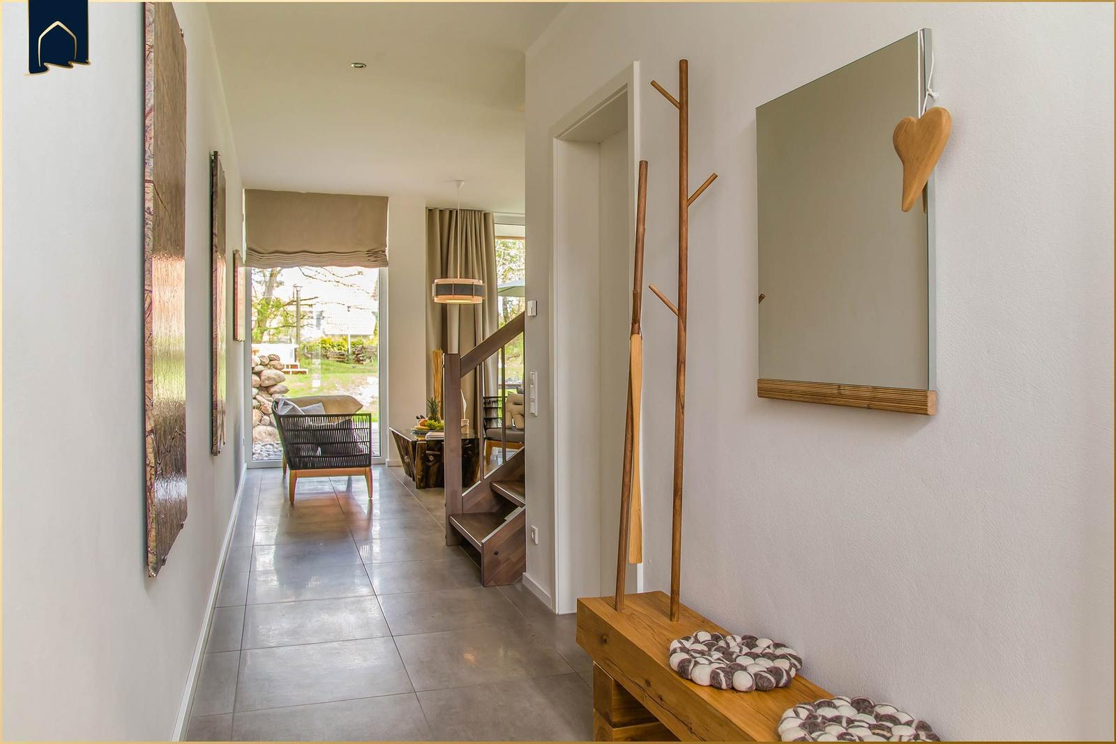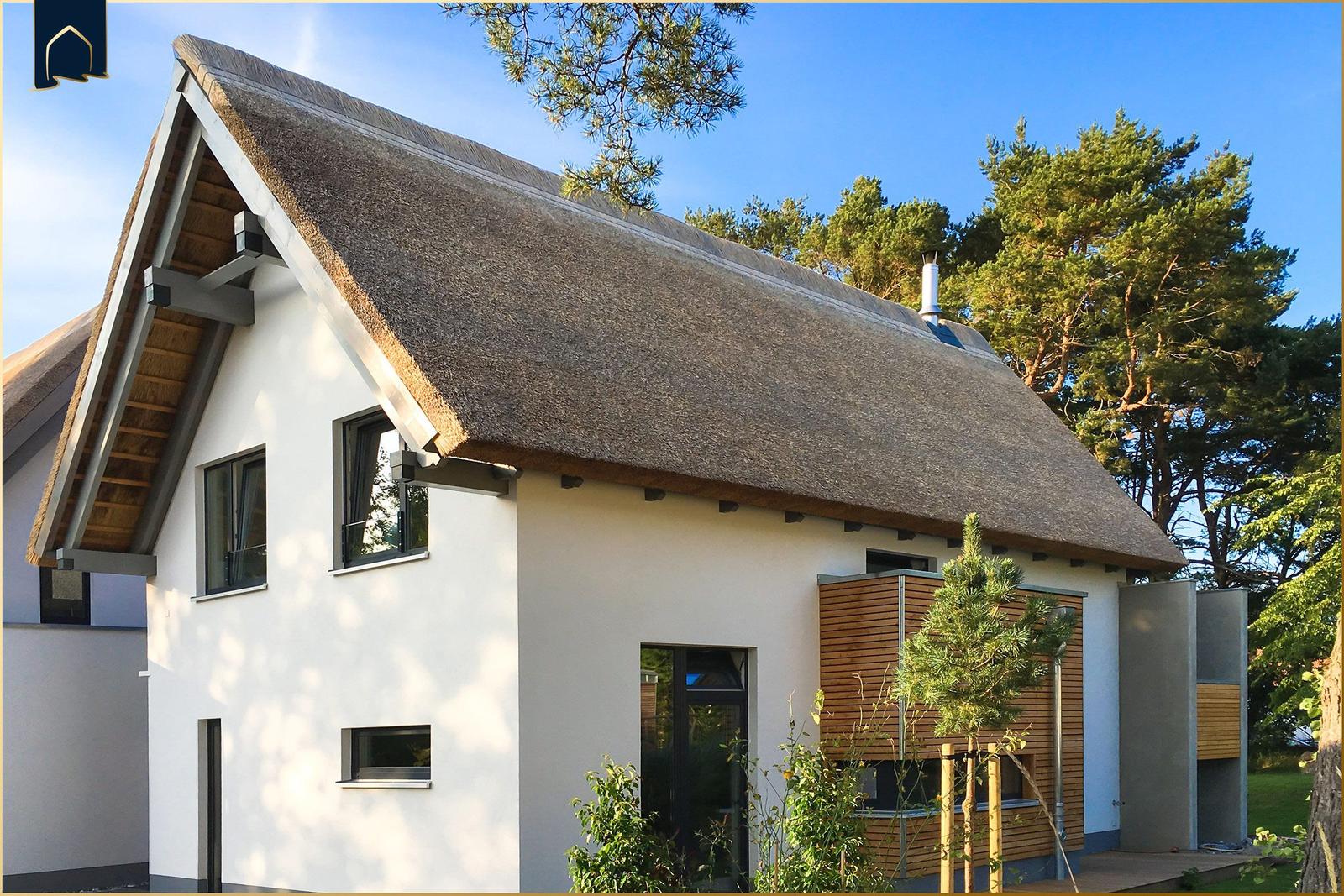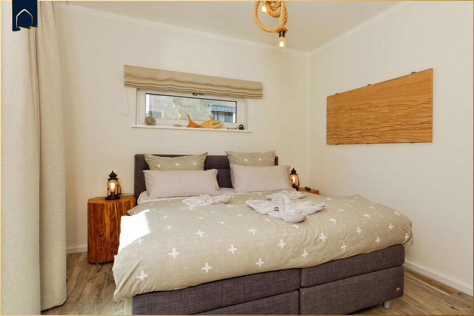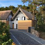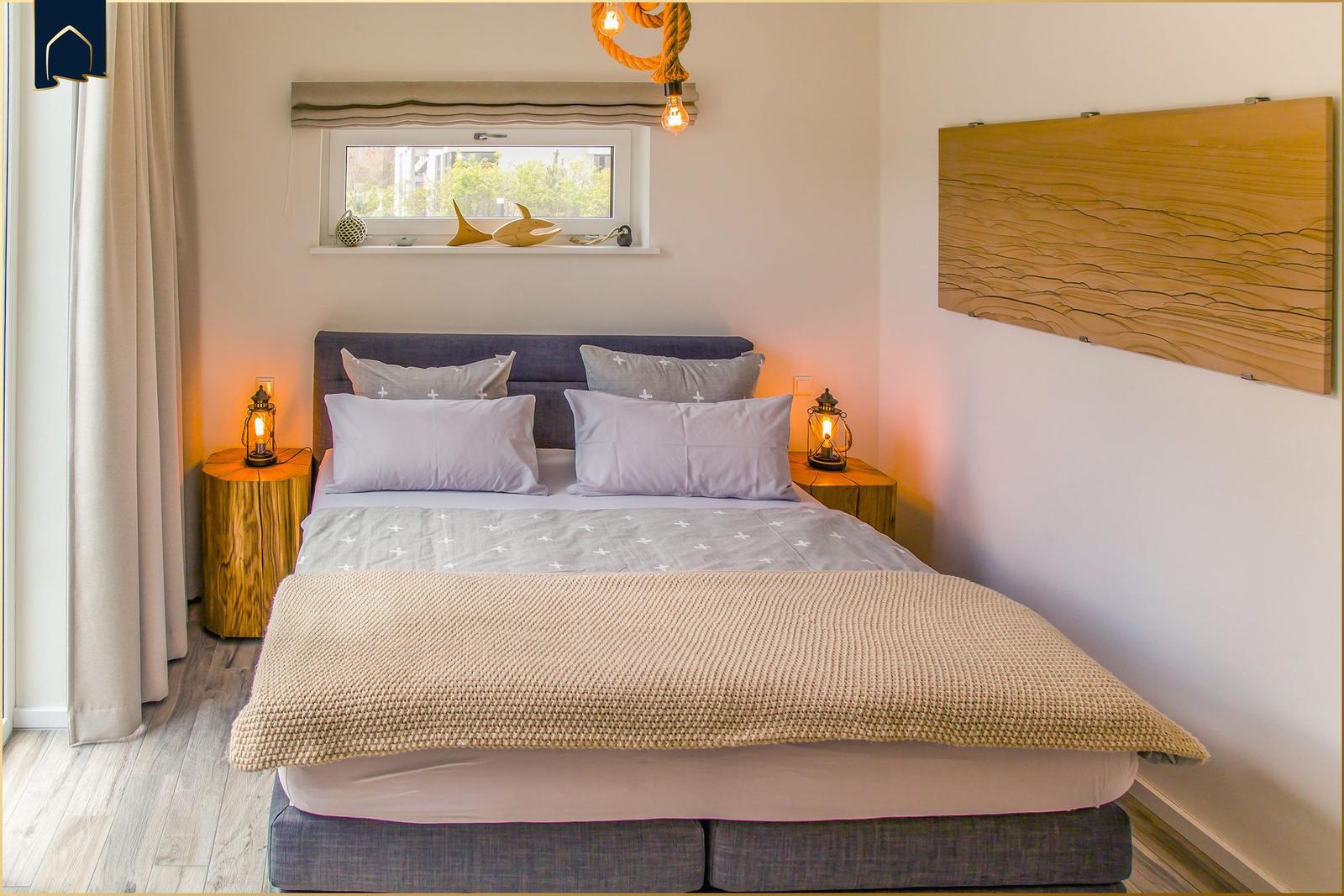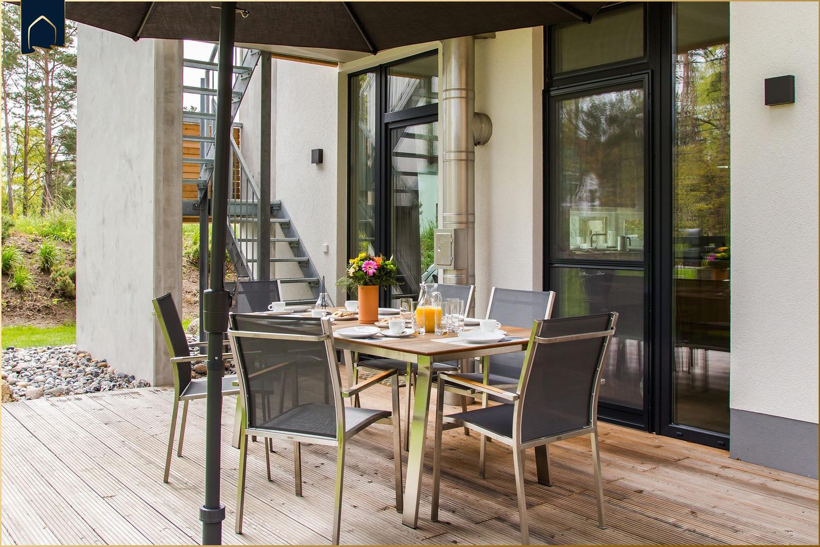 Das exklusive 5-Sterne-Ferienhaus Reethäus`l in Karlshagen bietet einen weitläufigen Außenbereich, der ideal zum Entspannen einlädt. Auf dem 1.632 m² großen Naturgrundstück stehen mehrere Terrassen zur Verfügung, die je nach Tageszeit Sonne oder Schatten bieten. Ein holzbefeuerter Hot Tub, eingebettet zwischen hohen Kiefern, sorgt für einzigartige Wellnessmomente unter freiem Himmel. Der Garten ist kinderfreundlich gestaltet und bietet ein kleines Holzhaus mit Strandutensilien und Spielzeug. Der Strand ist nur 300 Meter entfernt, wodurch Familien und Erholungssuchende bequem nach einem Tag in der Natur zurückkehren können. Die allgemeine Gestaltung des Außenbereichs, inklusive der Terrassen und des Hot Tubs, schafft eine harmonische Atmosphäre für entspannte Stunden im Freien.