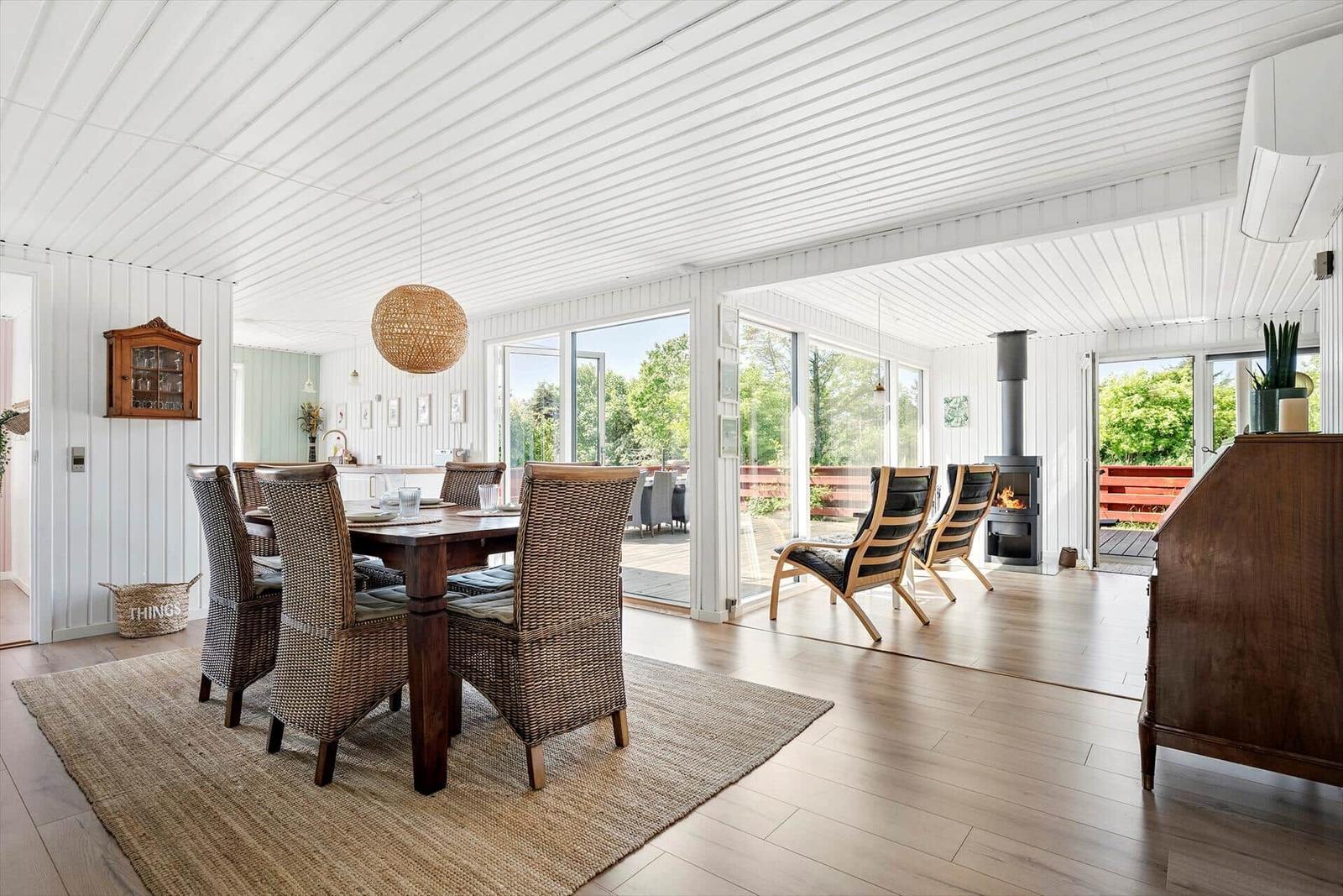 Die Ferienwohnung in Kettrup Bjerge, Nordjütland, bietet Platz für bis zu 6 Erwachsene und überzeugt mit einer gemütlichen Einrichtung auf 80 m². Drei Schlafzimmer, ausgestattet mit zwei Doppelbetten und zwei Einzelbetten, sowie zwei Kinderbetten, garantieren komfortablen Schlaf für die ganze Familie. Das moderne Duschbad sorgt für Erfrischung, während die vollausgestattete Küche mit Geschirrspüler, Elektro-/Gasherd, Backofen, Kühlschrank, Kaffee- und Wasserkocher das Kochen zum Vergnügen macht. Der offene Wohnbereich mit Smart-TV und Kamin lädt zum Entspannen ein. Fußbodenheizung sorgt für wohlige Wärme. Internet mit WLAN ist ebenfalls verfügbar. Auf dem großzügigen Grundstück von 4.275 m² sind Ruhe und Erholung garantiert. Der nächste Strand ist nur 1.500 Meter entfernt, die nächste Einkaufsmöglichkeit liegt 1.200 Meter entfernt.