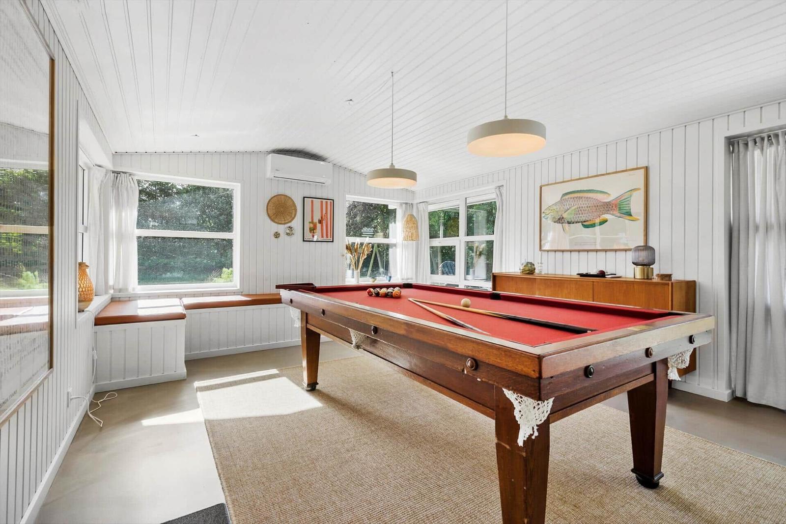 Die Ferienwohnung in Mols, Ostjütland, bietet auf 110 m² Platz für bis zu 6 Erwachsene, 2 Kinder und ein Haustier. Die gemütliche Einrichtung umfasst einen Kamin, der für wohlige Wärme sorgt. Zur Ausstattung gehören eine Waschmaschine, eine Spülmaschine und ein Wäschetrockner, die den Aufenthalt komfortabel gestalten. Die Gäste können ebenfalls die Sauna nutzen, die sich in den Gemeinschaftsbereichen der Unterkunft befindet. Internetzugang ist ebenfalls vorhanden. Die Ferienwohnung liegt nur 200 Meter vom nächsten Strand entfernt, während die nächste Einkaufsmöglichkeit in 5.000 Metern zu erreichen ist. Die Unterkunft befindet sich auf einem großzügigen Grundstück von 1.500 m², das zusätzlichen Raum zum Entspannen bietet.