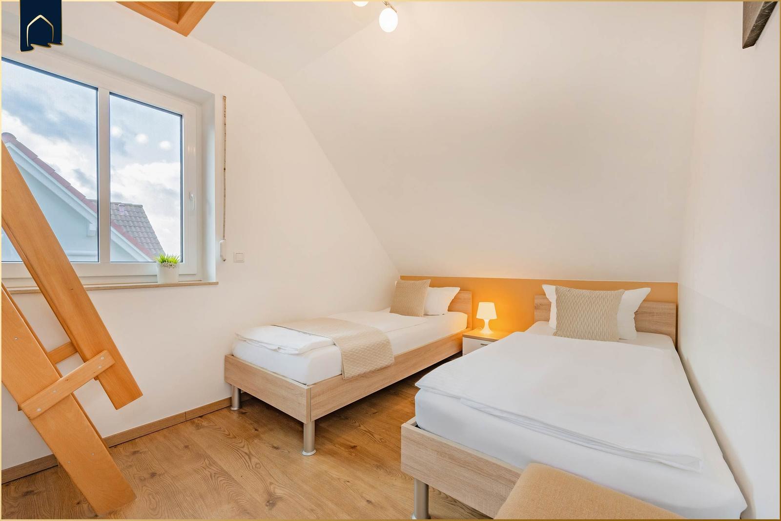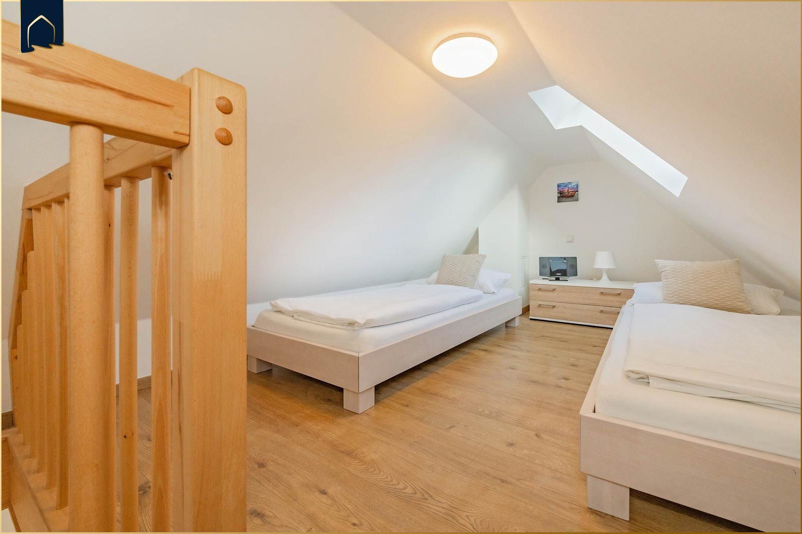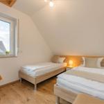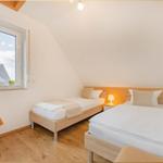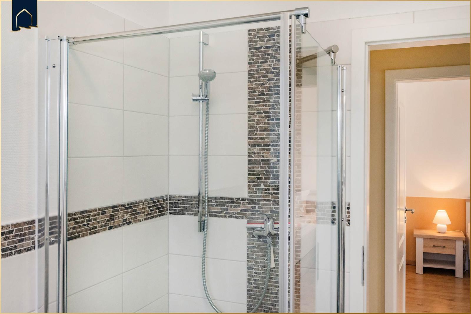 Diese attraktive Ferienwohnung bietet eine gelungene Kombination aus Komfort und modernen Annehmlichkeiten. In drei geschmackvoll eingerichteten Schlafzimmern, darunter ein Doppelbett und vier Einzelbetten, finden Gäste eine erholsame Nachtruhe. Zwei Badezimmer, darunter ein Duschbad mit bodenebener Dusche und ein Gäste-WC, sorgen für zusätzlichen Komfort.