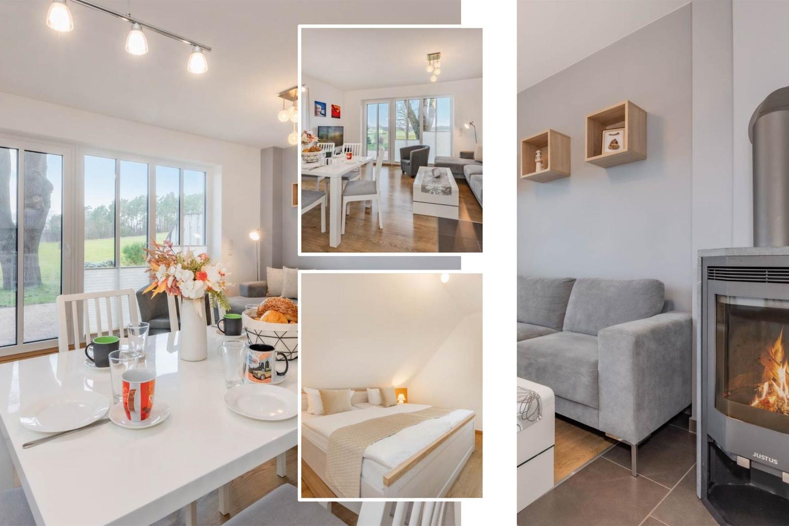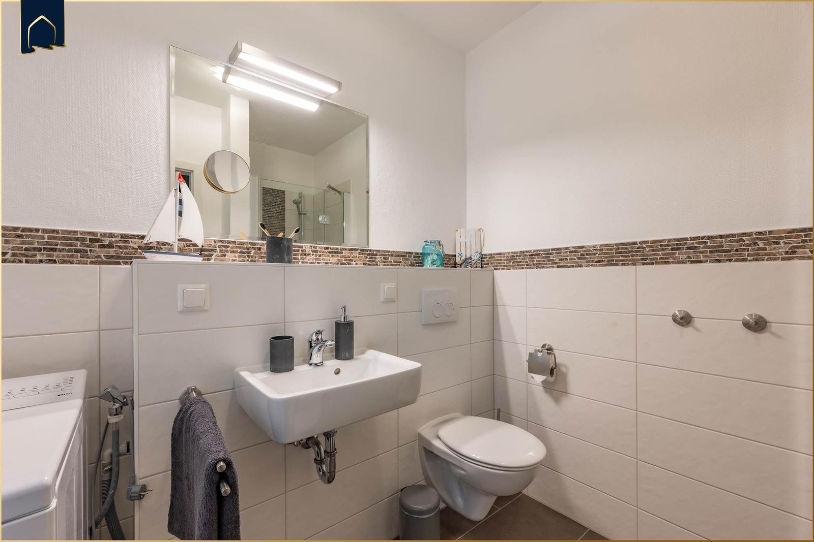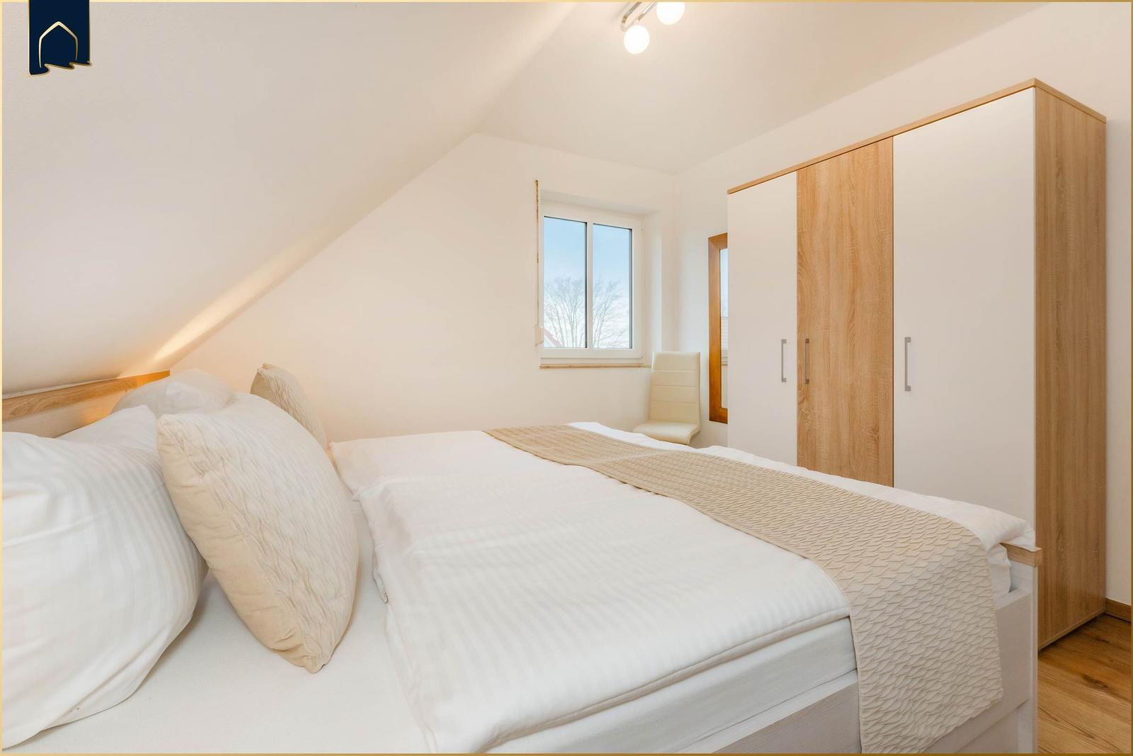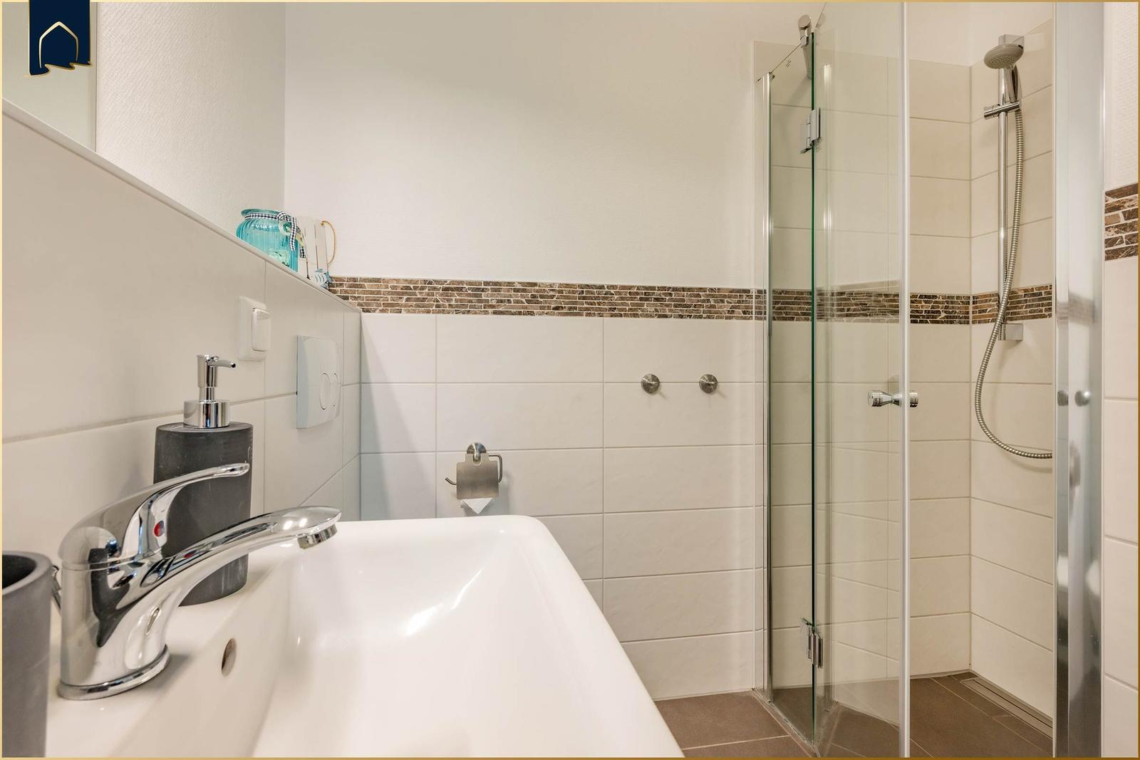 Diese attraktive Ferienwohnung bietet eine gelungene Kombination aus Komfort und modernen Annehmlichkeiten. In drei geschmackvoll eingerichteten Schlafzimmern, darunter ein Doppelbett und vier Einzelbetten, finden Gäste eine erholsame Nachtruhe. Zwei Badezimmer, darunter ein Duschbad mit bodenebener Dusche und ein Gäste-WC, sorgen für zusätzlichen Komfort.
