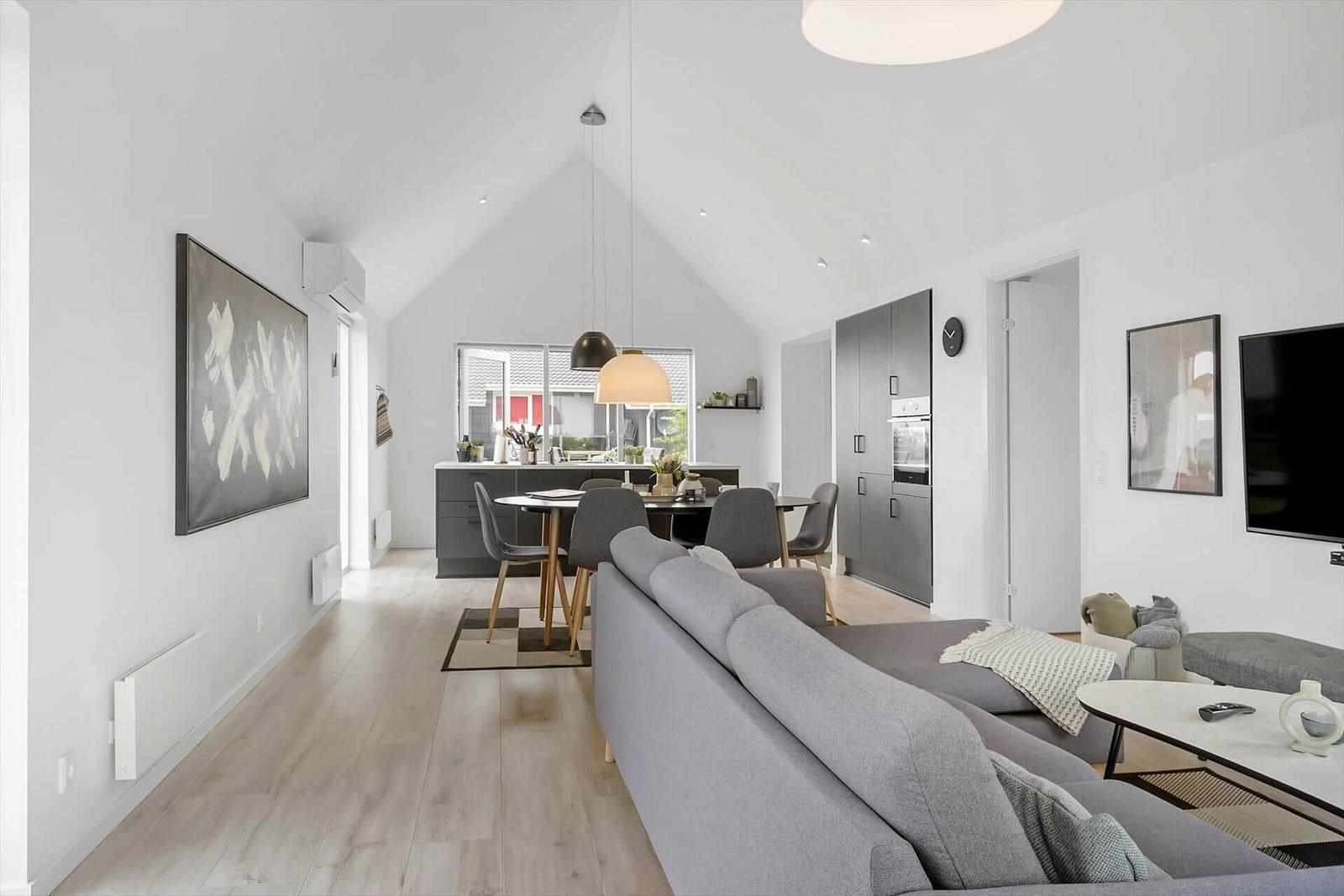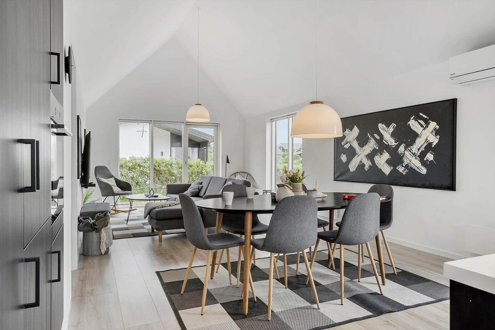 Diese charmante Ferienwohnung in Gjellerodde am Limfjord bietet Platz für bis zu 6 Erwachsene und ein Haustier. Auf großzügigen 81 m² erwartet sie eine gemütliche Einrichtung. Die offene Küche ist modern ausgestattet mit einem Elektro-/Gasherd, Backofen, Geschirrspüler, Mikrowelle sowie Kühlschrank und Gefriermöglichkeit. Für die Kaffeeliebhaber steht eine Kaffeemaschine bereit. Das komfortable Duschbad sorgt für Entspannung nach einem Tag am nahegelegenen Strand, der nur 350 Meter entfernt ist. Ein Wohnschlafzimmer und zwei Schlafzimmer mit jeweils einem Doppelbett bieten ausreichend Platz für alle Gäste. Zudem ist die Wohnung mit einer Waschmaschine, TV und Fußbodenheizung ausgestattet, was den Aufenthalt besonders angenehm gestaltet. Es steht auch Internet mit WLAN zur Verfügung, und die energieeffiziente Heizung sorgt für ein gemütliches Raumklima. Einkaufsmöglichkeiten befinden sich lediglich 300 Meter entfernt.