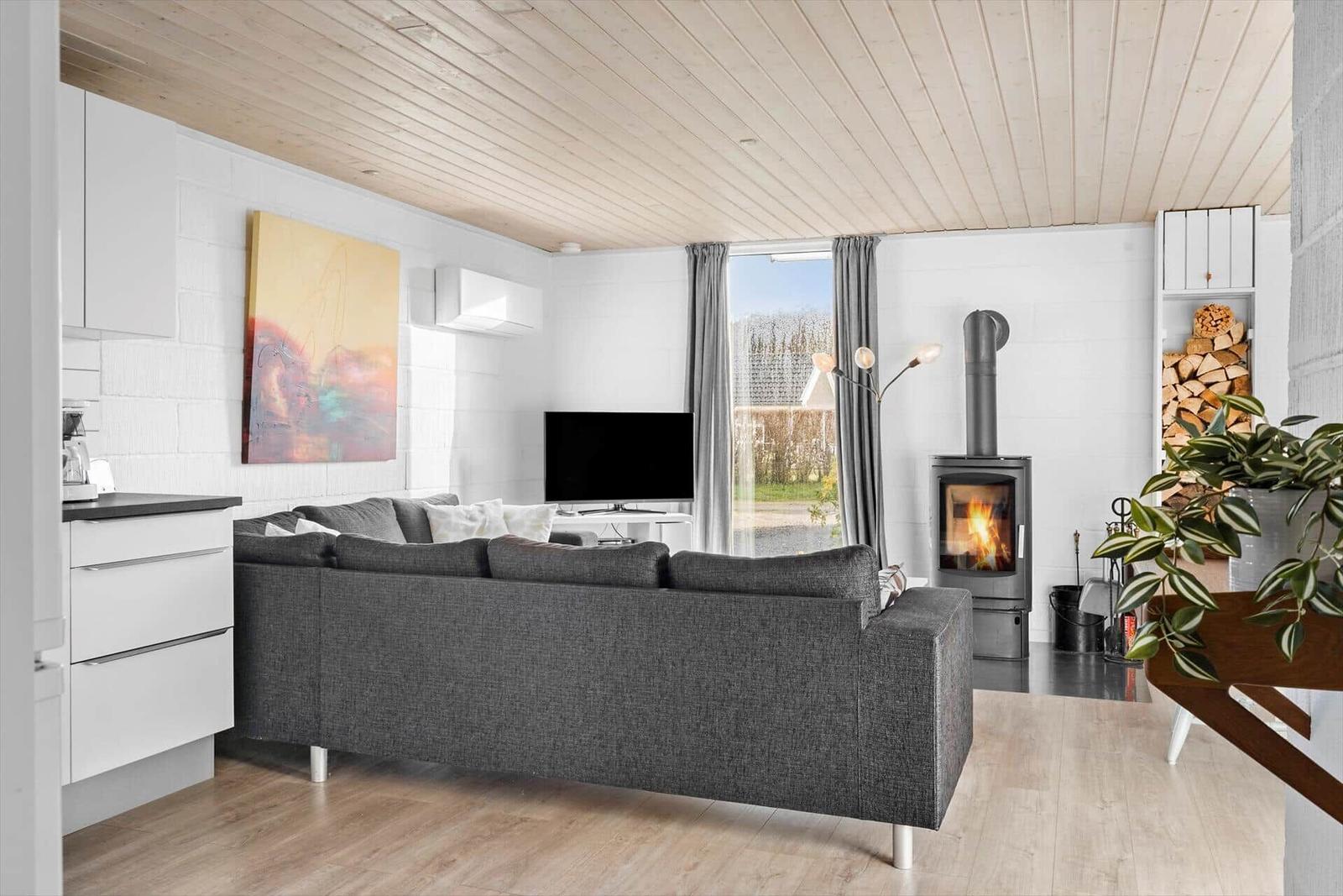 Die Ferienwohnung bietet großzügige 90m² in ruhiger, naturschöner Lage, nur 200 Meter vom Gjellerodde Strand entfernt. Die lichtdurchflutete, offene Küche ist modern ausgestattet und beinhaltet einen Geschirrspüler, Elektro-/Gasherd, Backofen, Mikrowelle, Kühlschrank und eine Kaffeemaschine. Das gemütliche Wohnschlafzimmer verfügt über einen Smart-TV und einen Kaminofen für angenehme Abende. Die Einheit umfasst drei Schlafzimmer mit insgesamt zwei Doppelbetten und vier Einzelbetten. Ein stilvolles Duschbad sorgt für zusätzlichen Komfort. Zur weiteren Ausstattung zählen Internet mit WLAN, eine Waschmaschine, ein Wäschetrockner sowie ein Wasserkocher. Energieeffizientes Heizen sorgt das ganze Jahr über für Wohlfühltemperaturen. Auf der Südterrasse lässt sich der Urlaub in vollen Zügen genießen, ideal zum Grillen und Entspannen.