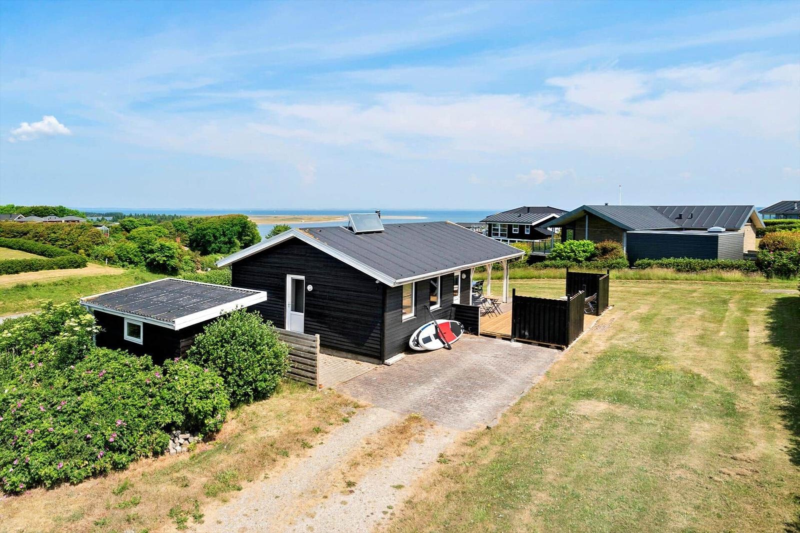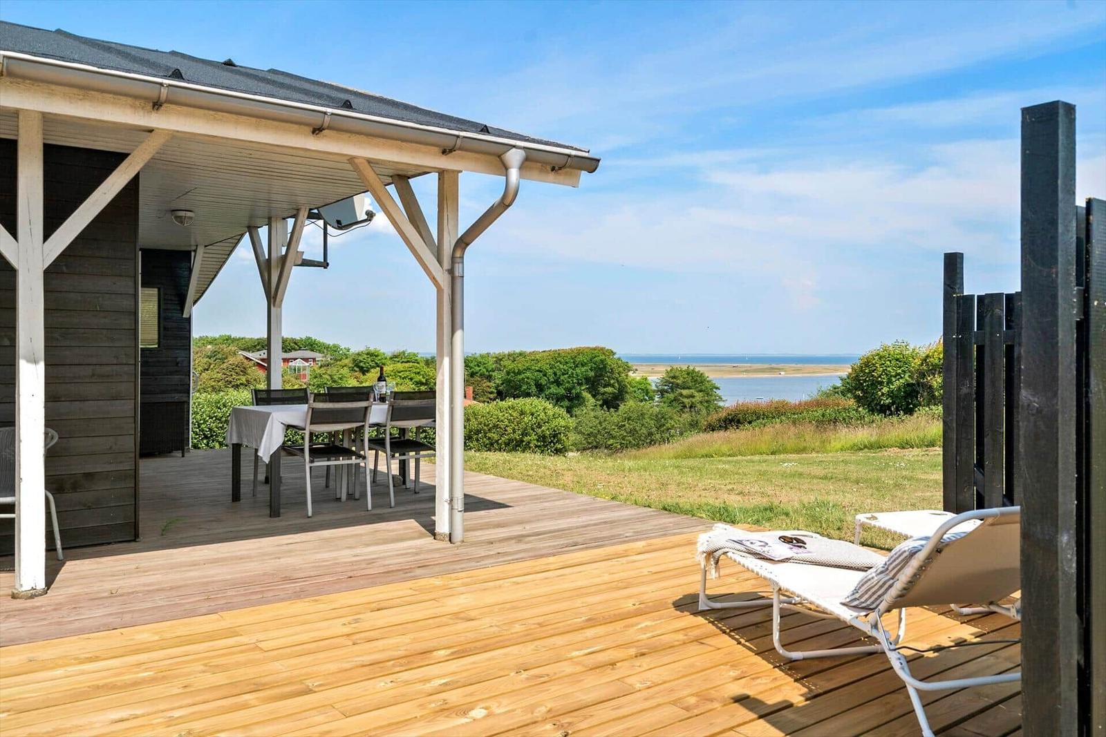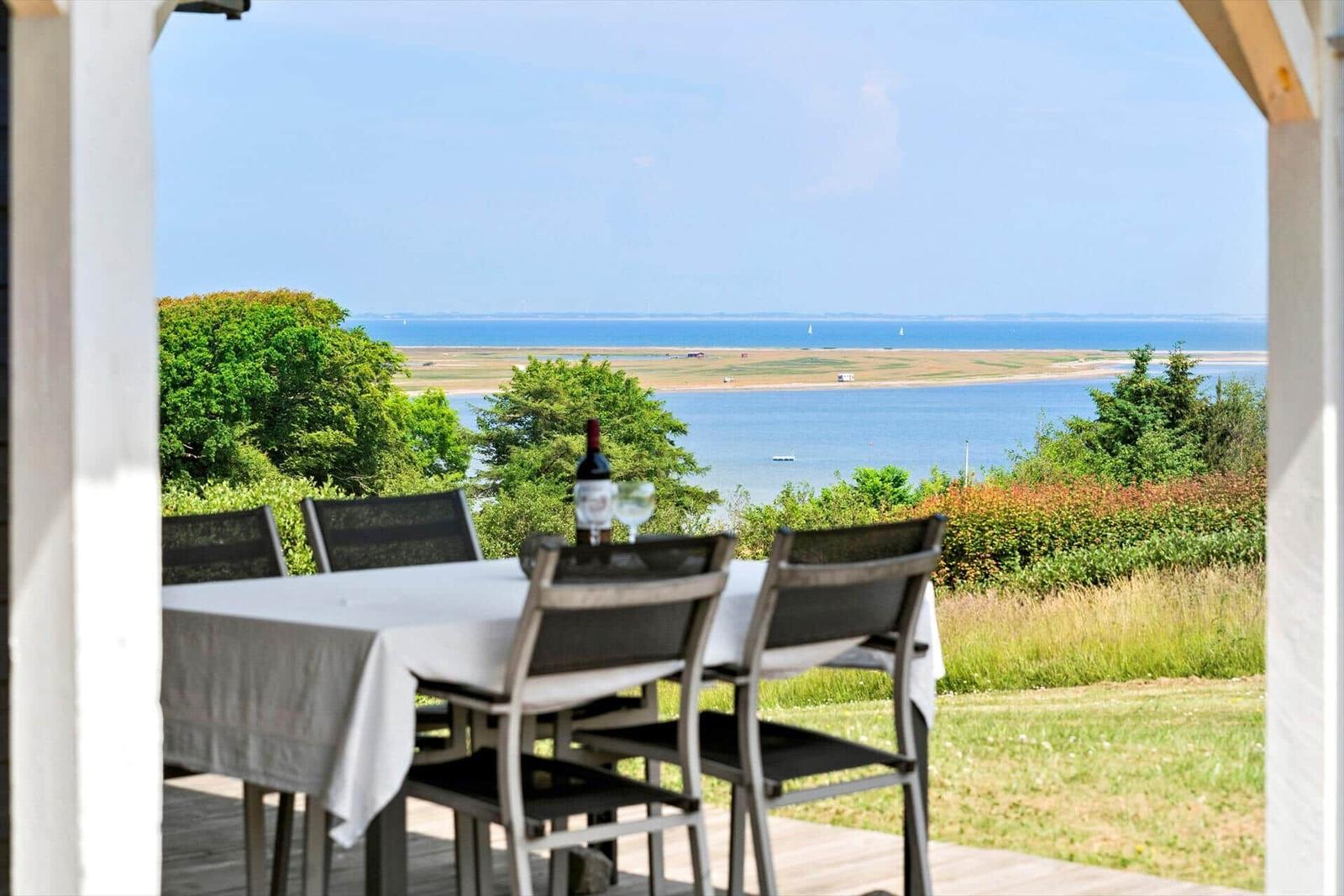 Diese charmante Ferienwohnung bietet eine ideale Kombination aus modernem Komfort und ansprechendem Design. Der offene Wohnbereich vereint Küche, Ess- und Wohnzonen, wo große Fenster den Blick auf die hügelige Küstenlandschaft und den Limfjord freigeben. Die voll ausgestattete Küche, die mit einem Elektro-/Gasherd, Backofen und Geschirrspüler ausgestattet ist, ermöglicht entspanntes Kochen. Das Duschbad und die Fußbodenheizung sorgen für zusätzlichen Komfort. Der Wohnbereich lädt mit einem gemütlichen Kaminofen und einem TV zum Entspannen ein. Mit zwei Schlafzimmern, die jeweils mit einem Doppelbett ausgestattet sind, bietet die Wohnung ausreichend Platz für bis zu vier Personen. Kostenloses WLAN steht ebenfalls zur Verfügung. Außenbereich und große Terrasse laden zum Verweilen in der Natur ein. Ideal für einen erholsamen Urlaub in schöner Umgebung.