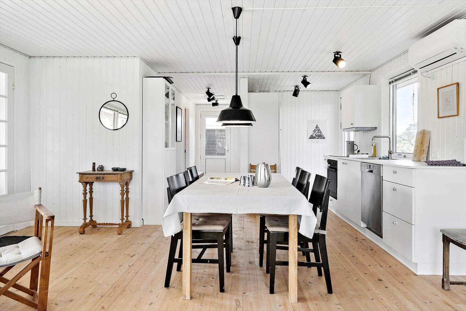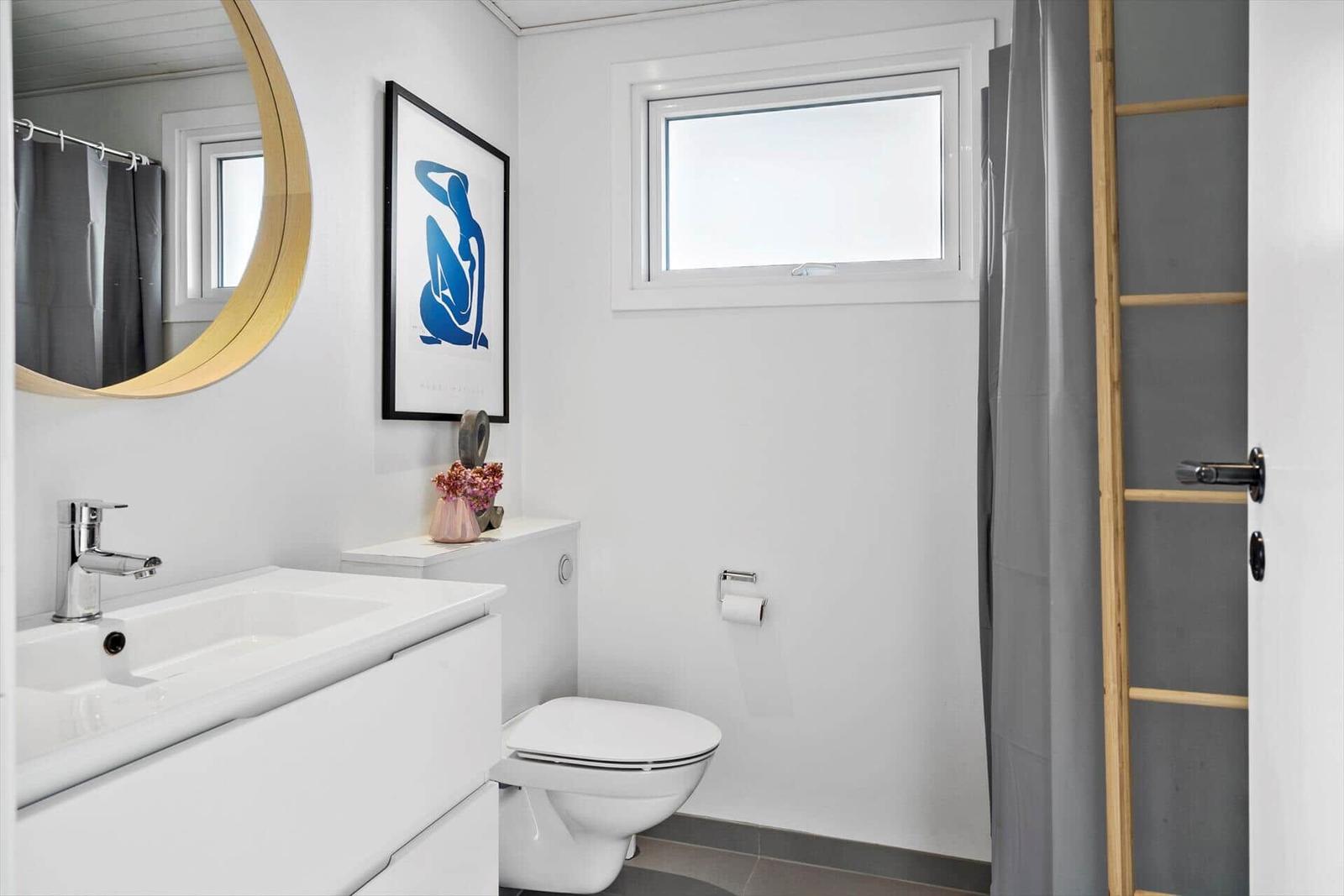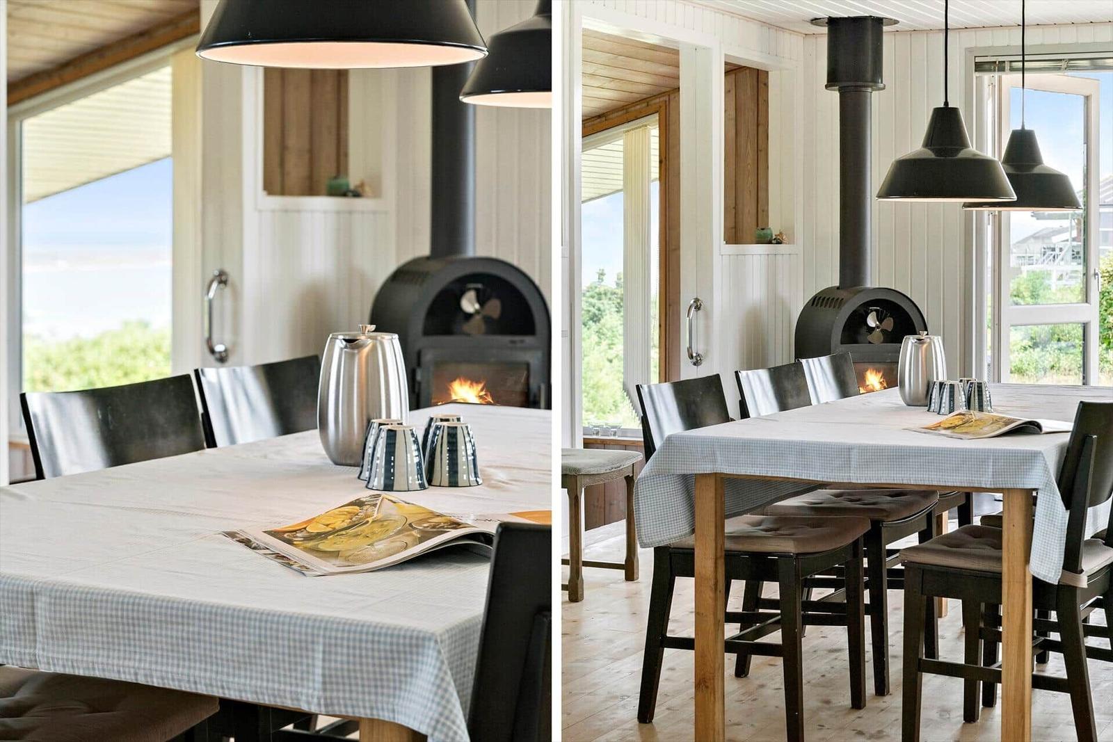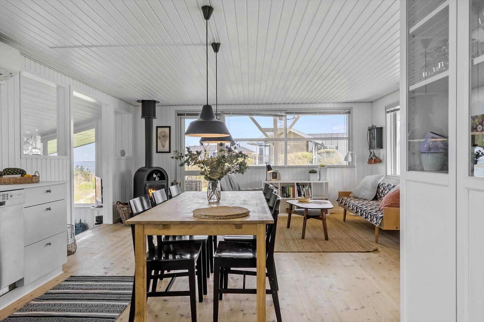 Diese charmante Ferienwohnung bietet eine ideale Kombination aus modernem Komfort und ansprechendem Design. Der offene Wohnbereich vereint Küche, Ess- und Wohnzonen, wo große Fenster den Blick auf die hügelige Küstenlandschaft und den Limfjord freigeben. Die voll ausgestattete Küche, die mit einem Elektro-/Gasherd, Backofen und Geschirrspüler ausgestattet ist, ermöglicht entspanntes Kochen. Das Duschbad und die Fußbodenheizung sorgen für zusätzlichen Komfort. Der Wohnbereich lädt mit einem gemütlichen Kaminofen und einem TV zum Entspannen ein. Mit zwei Schlafzimmern, die jeweils mit einem Doppelbett ausgestattet sind, bietet die Wohnung ausreichend Platz für bis zu vier Personen. Kostenloses WLAN steht ebenfalls zur Verfügung. Außenbereich und große Terrasse laden zum Verweilen in der Natur ein. Ideal für einen erholsamen Urlaub in schöner Umgebung.